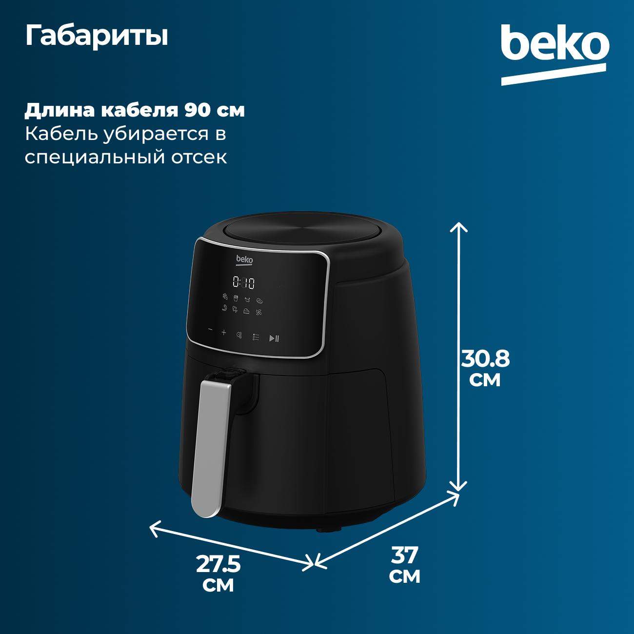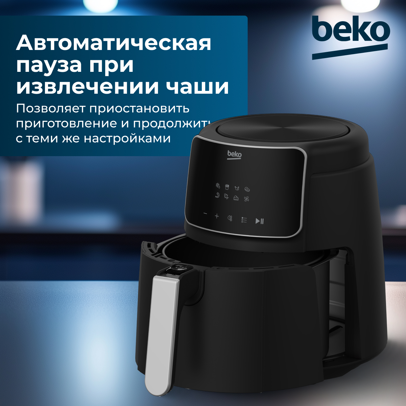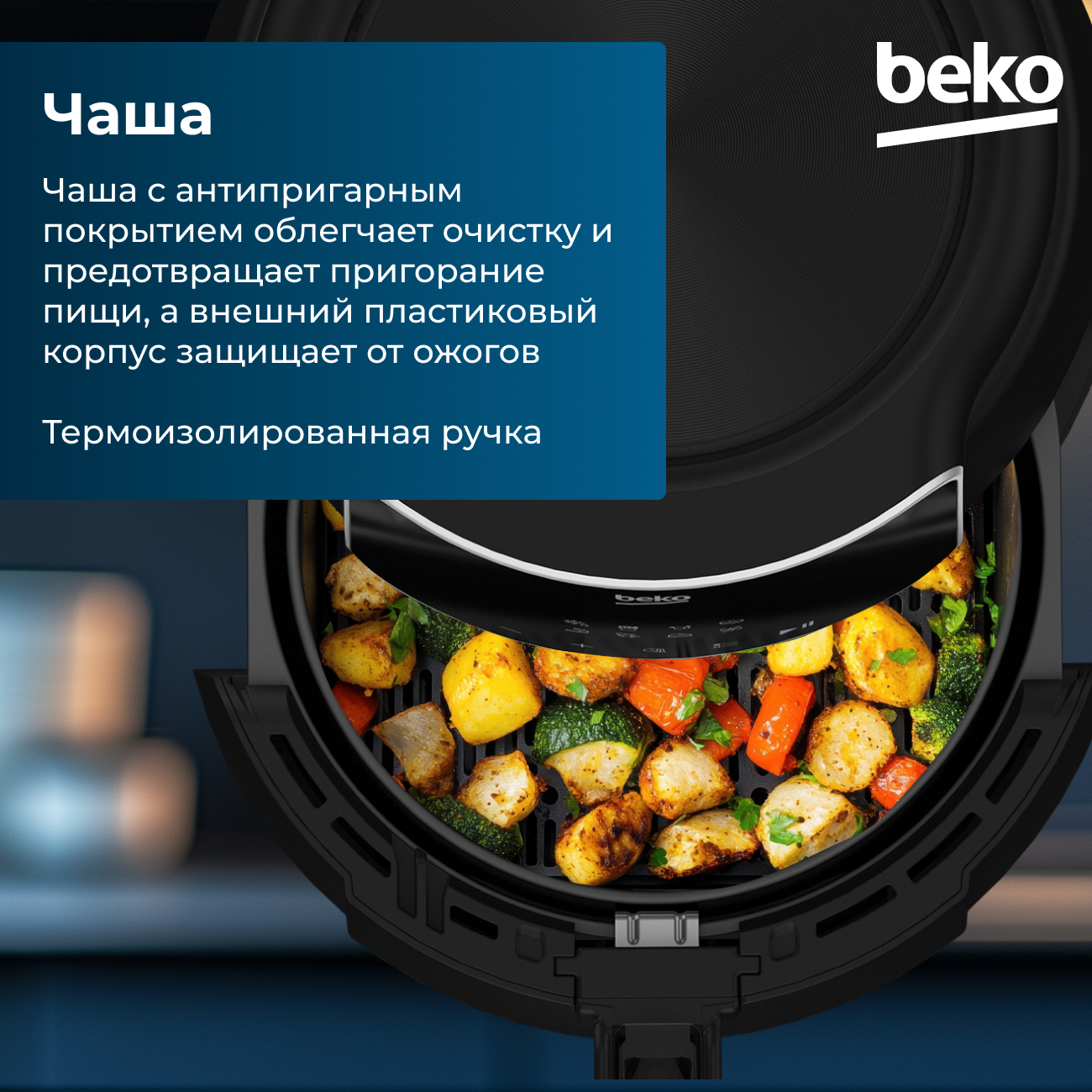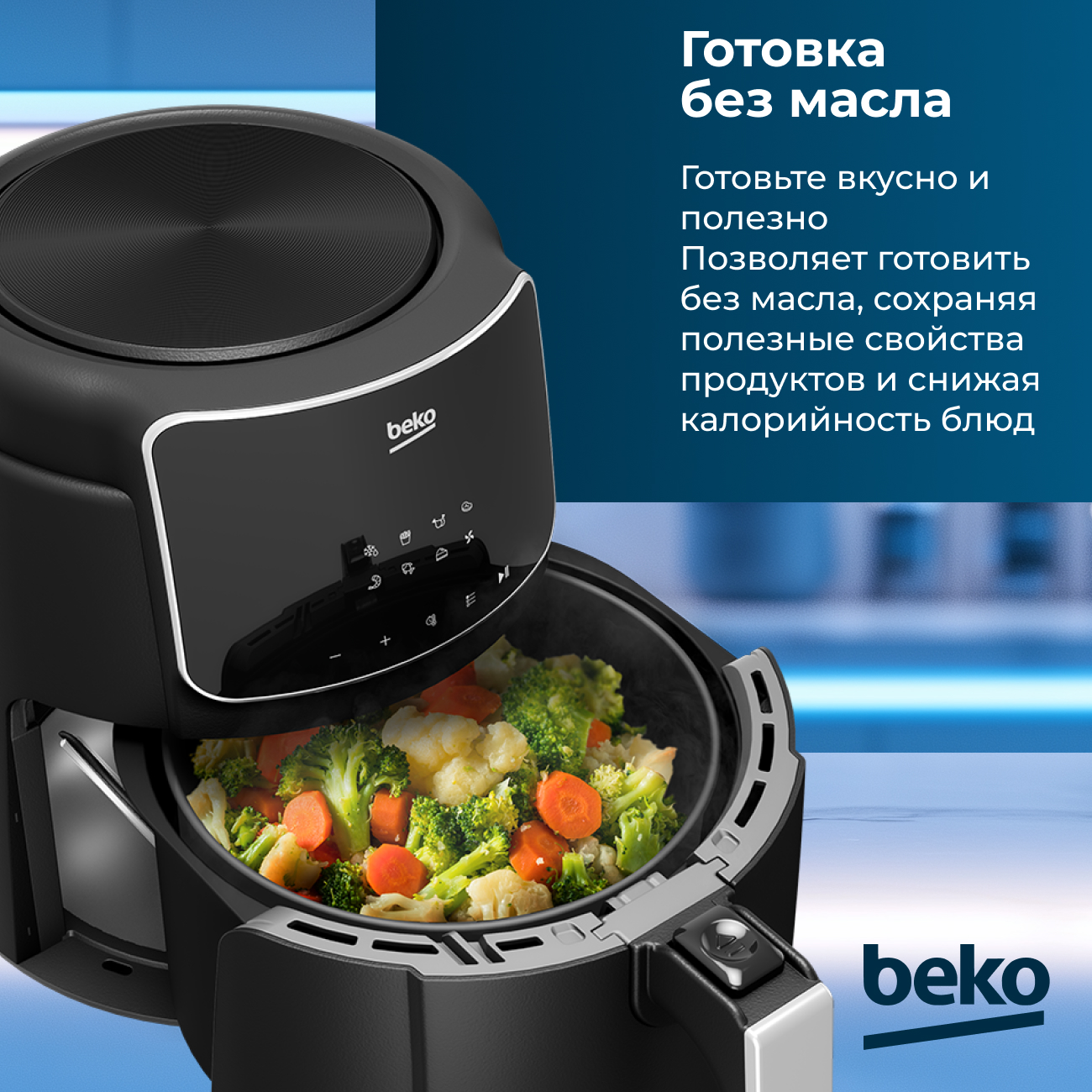Это аэрогриль с чашей на 4,7 л и мощностью 1500 Вт, идеально подходящий для тех, кто любит готовить блюда без лишнего масла, но ценит скорость и удобство. У него есть 8 встроенных программ: от разморозки и картофеля фри до мяса и выпечки, а сенсорная панель упрощает настройку температуры (до 200 °C) и времени (до 90 минут). Если необходимо перемешать ингредиенты или что-то добавить, достаточно вынуть чашу — аэрогриль приостановит процесс и возобновит с прежними настройками, когда вы вернёте чашу на место. Антипригарное покрытие облегчает мытьё (чашу можно загрузить в посудомоечную машину), а термоизолированная ручка и пластиковый корпус помогают избежать ожогов. Размеры аэрогриля (30,8 × 27,5 × 37 см) и отсек для шнура (90 см) позволяют свободно разместить его даже в небольшой кухне, а производитель даёт 2 года гарантии, подтверждая качество и надёжность модели.