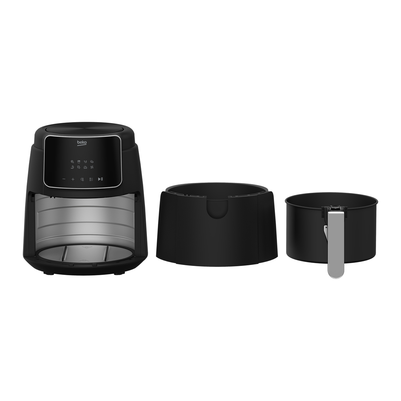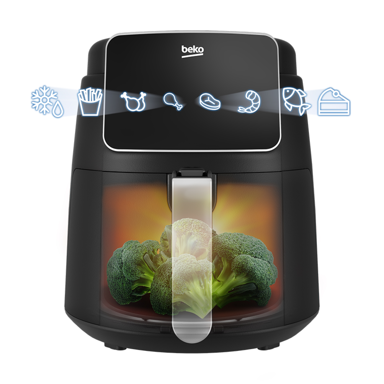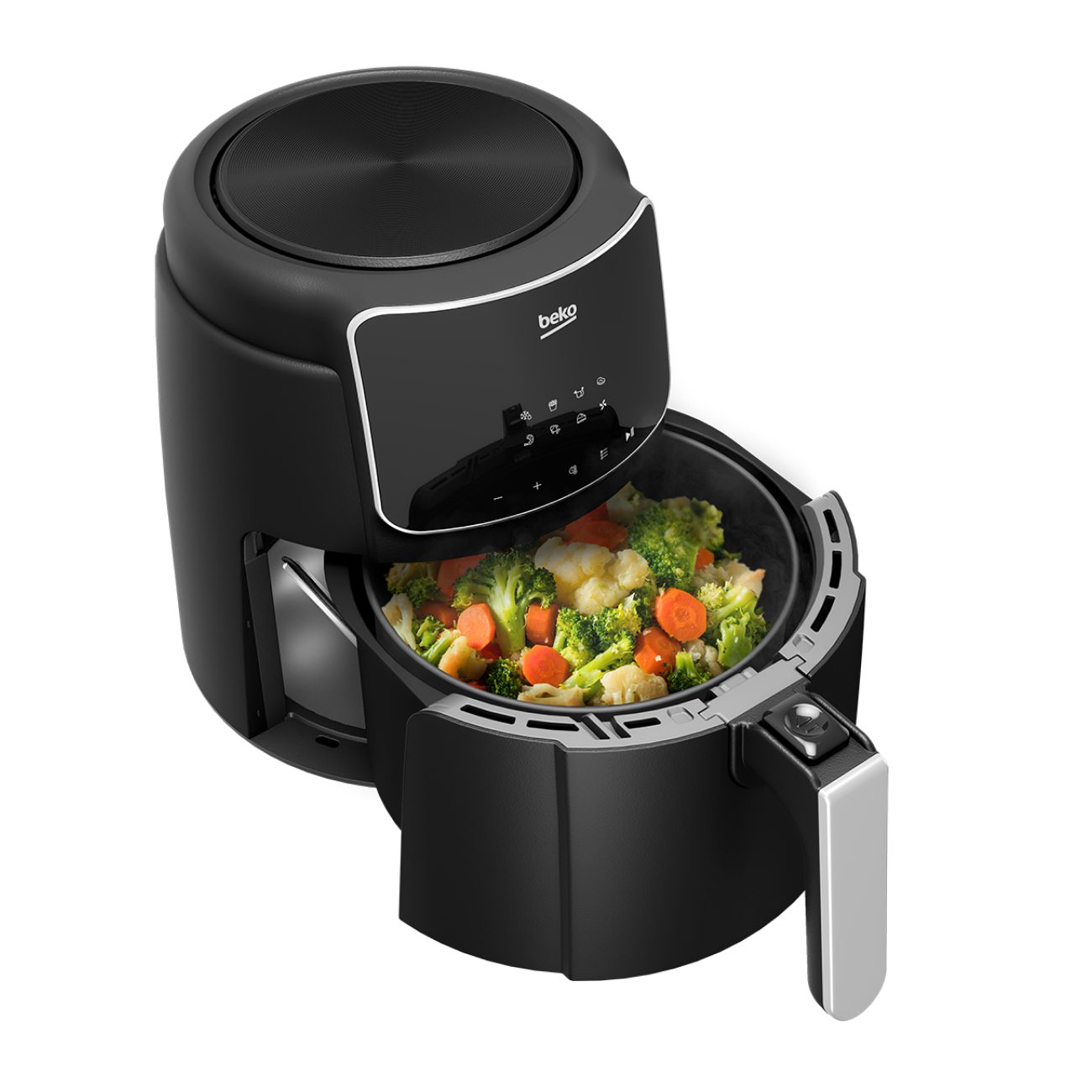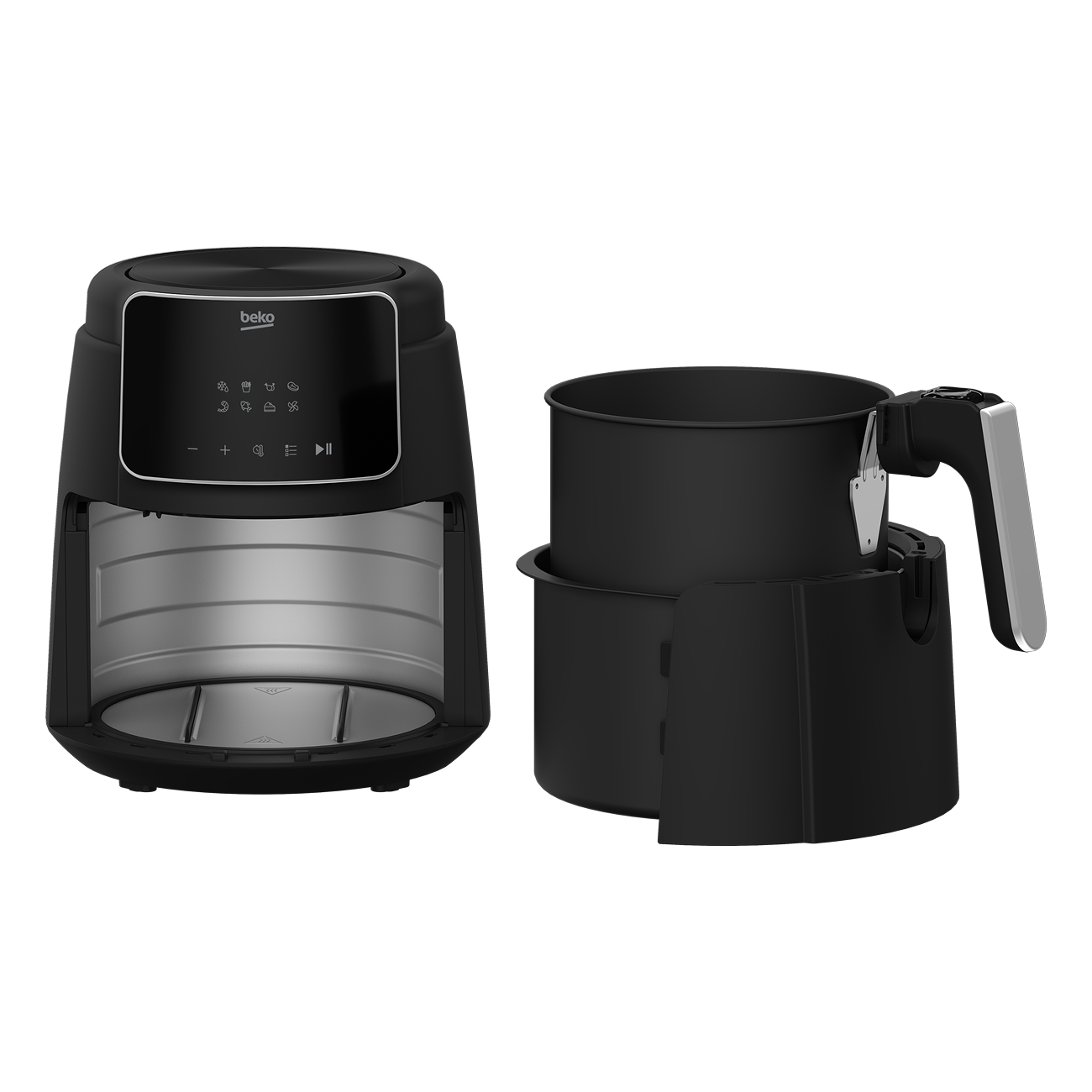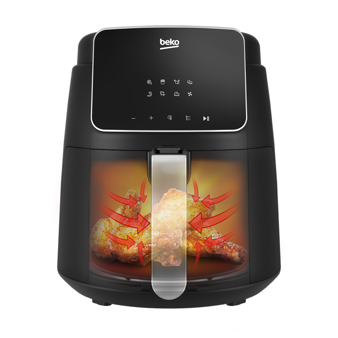 Это аэрогриль с чашей на 4,7 л и мощностью 1500 Вт, идеально подходящий для тех, кто любит готовить блюда без лишнего масла, но ценит скорость и удобство. У него есть 8 встроенных программ: от разморозки и картофеля фри до мяса и выпечки, а сенсорная панель упрощает настройку температуры (до 200 °C) и времени (до 90 минут). Если необходимо перемешать ингредиенты или что-то добавить, достаточно вынуть чашу — аэрогриль приостановит процесс и возобновит с прежними настройками, когда вы вернёте чашу на место. Антипригарное покрытие облегчает мытьё (чашу можно загрузить в посудомоечную машину), а термоизолированная ручка и пластиковый корпус помогают избежать ожогов. Размеры аэрогриля (30,8 × 27,5 × 37 см) и отсек для шнура (90 см) позволяют свободно разместить его даже в небольшой кухне, а производитель даёт 2 года гарантии, подтверждая качество и надёжность модели.