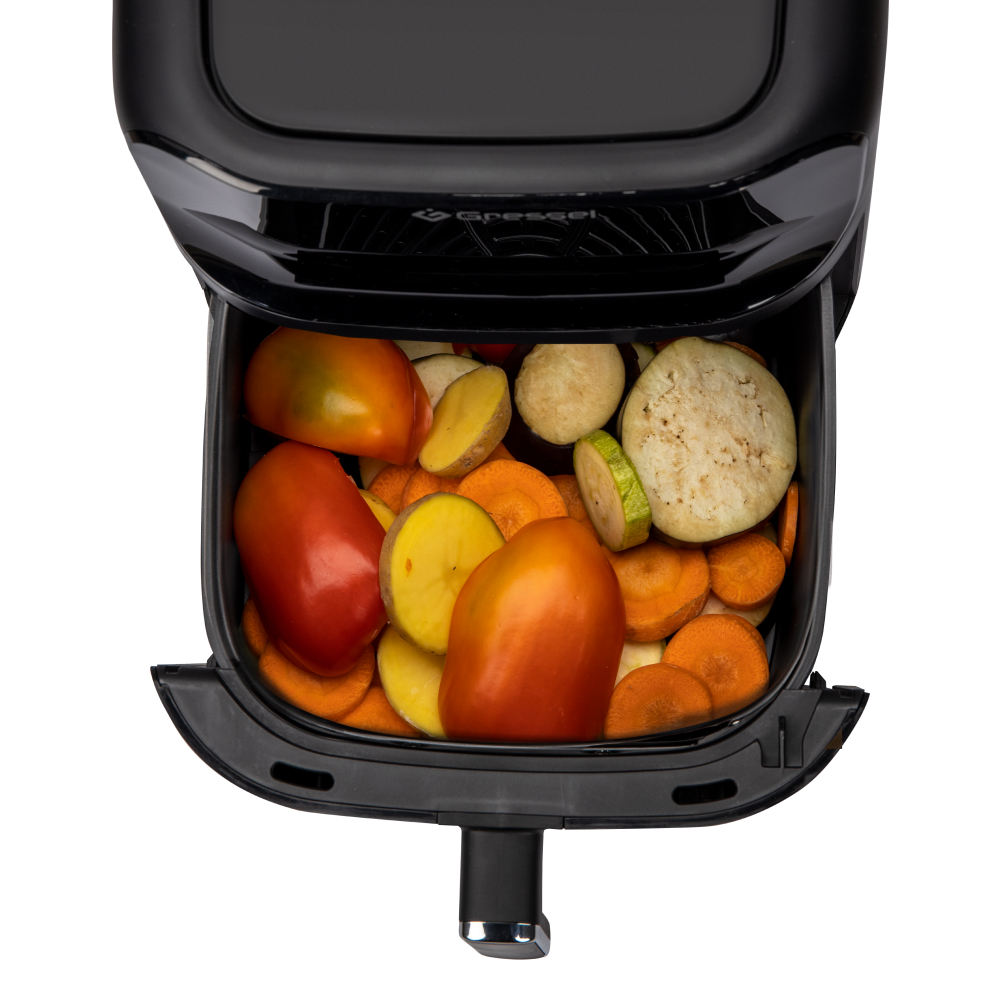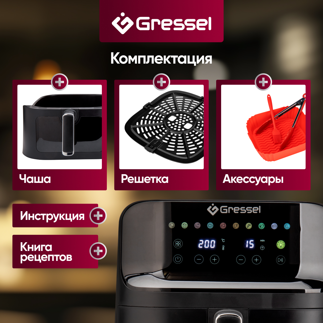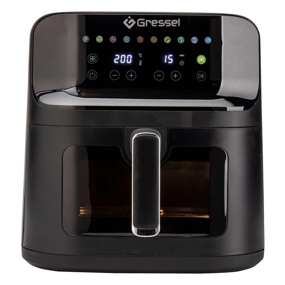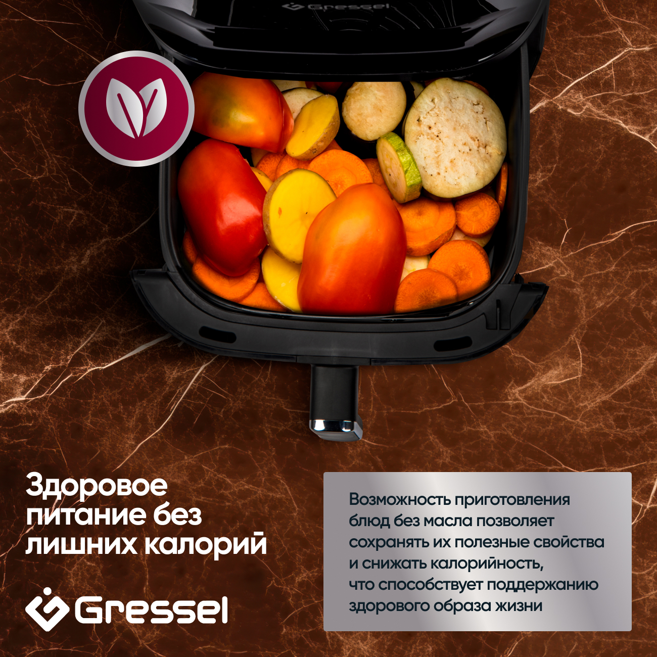 9 программ приготовления еды + 1 пользовательская: «Стейк», «Картофель фри», «Морепродукты», «Рыба», «Курица», «Куриные ножки», «Пицца», «Овощи», «Выпечка», «Пользовательская»