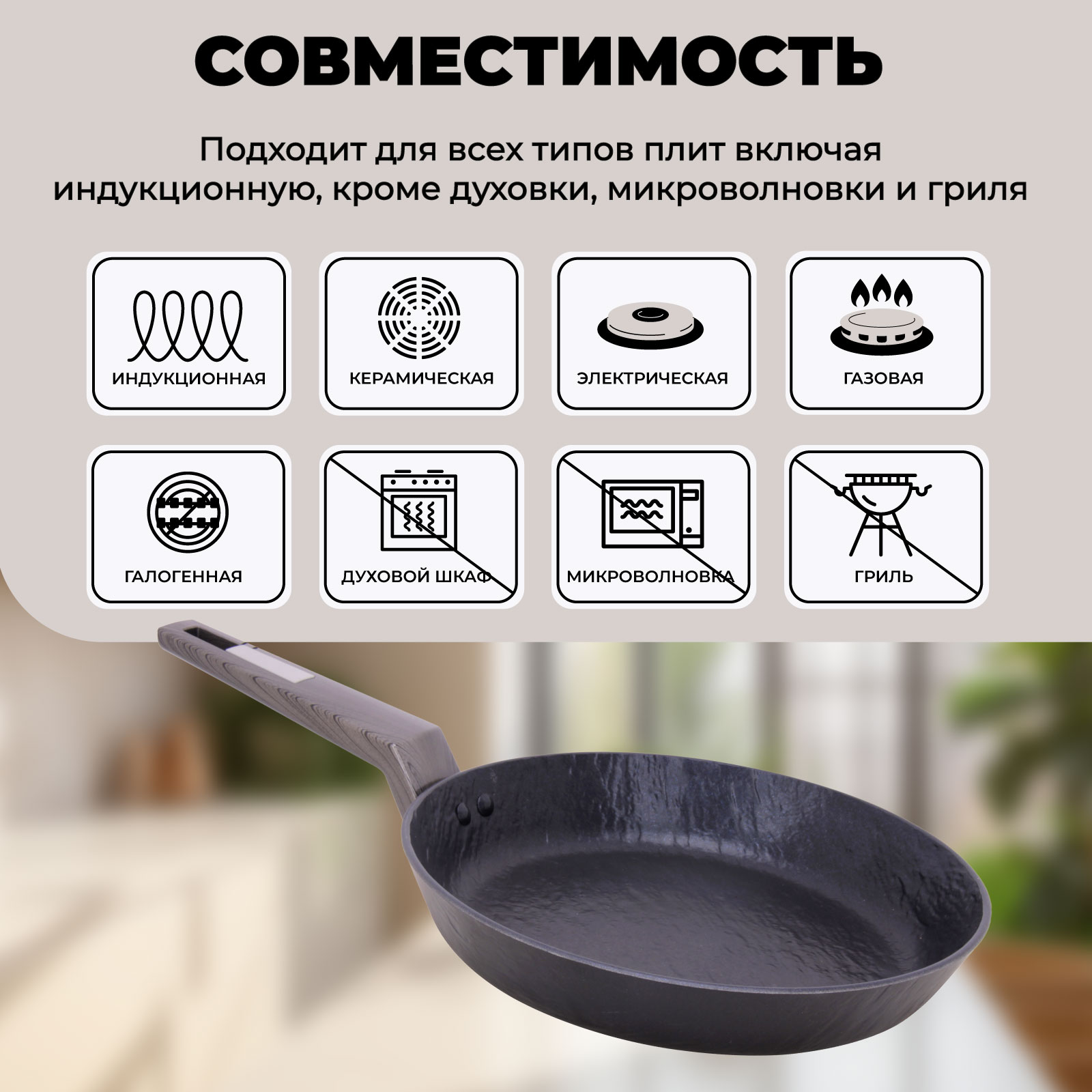 Сковорода, серия ROCKSTONE. Покрытие внутреннее: 2-х слое антипригарное Greblon С2 (устойчивое к царапинам) Покрытие внешнее: Цветной термостойкий лак (стойкий к истиранию) Тип материала: Кованный алюминий. Ручка: Деревянная, окрашенная в бакелит. Толщина стенок/толщина дна: 3,8 мм/4,0 мм Совместимость: Подходит для всех типов плит включая индукционную, кроме духовки. Рекомендуется ручная мойка для более долгого срока службы, но допускается и мытье в посудомоечной машине. Цвет: Черный, Серый.