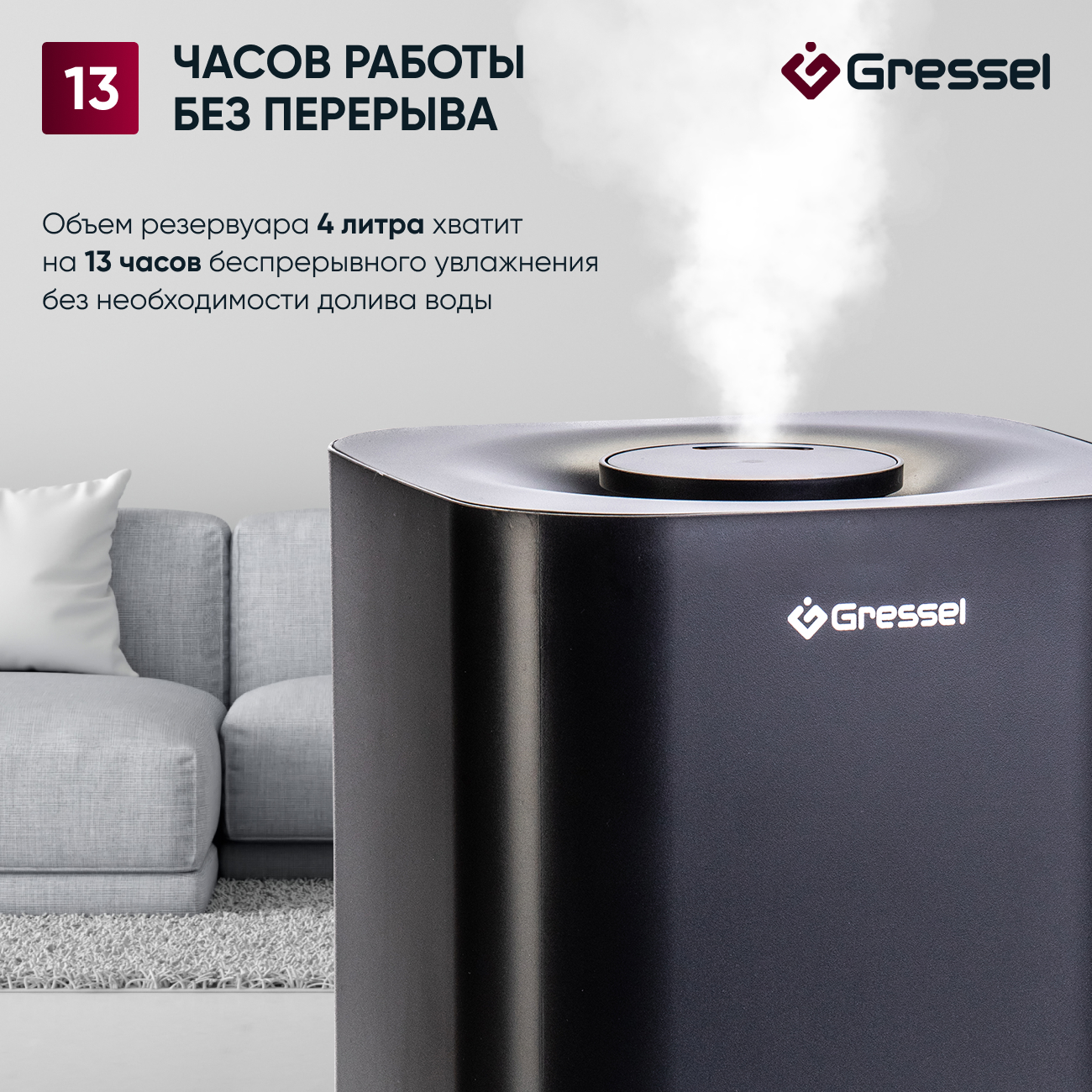 Благодаря своему компактному и стильному дизайну, увлажнитель воздуха Gressel GRU-5001 отлично впишется в любой интерьер. Он идеально подходит для использования в спальне, гостиной или офисе, обеспечивая здоровый и комфортный микроклимат.