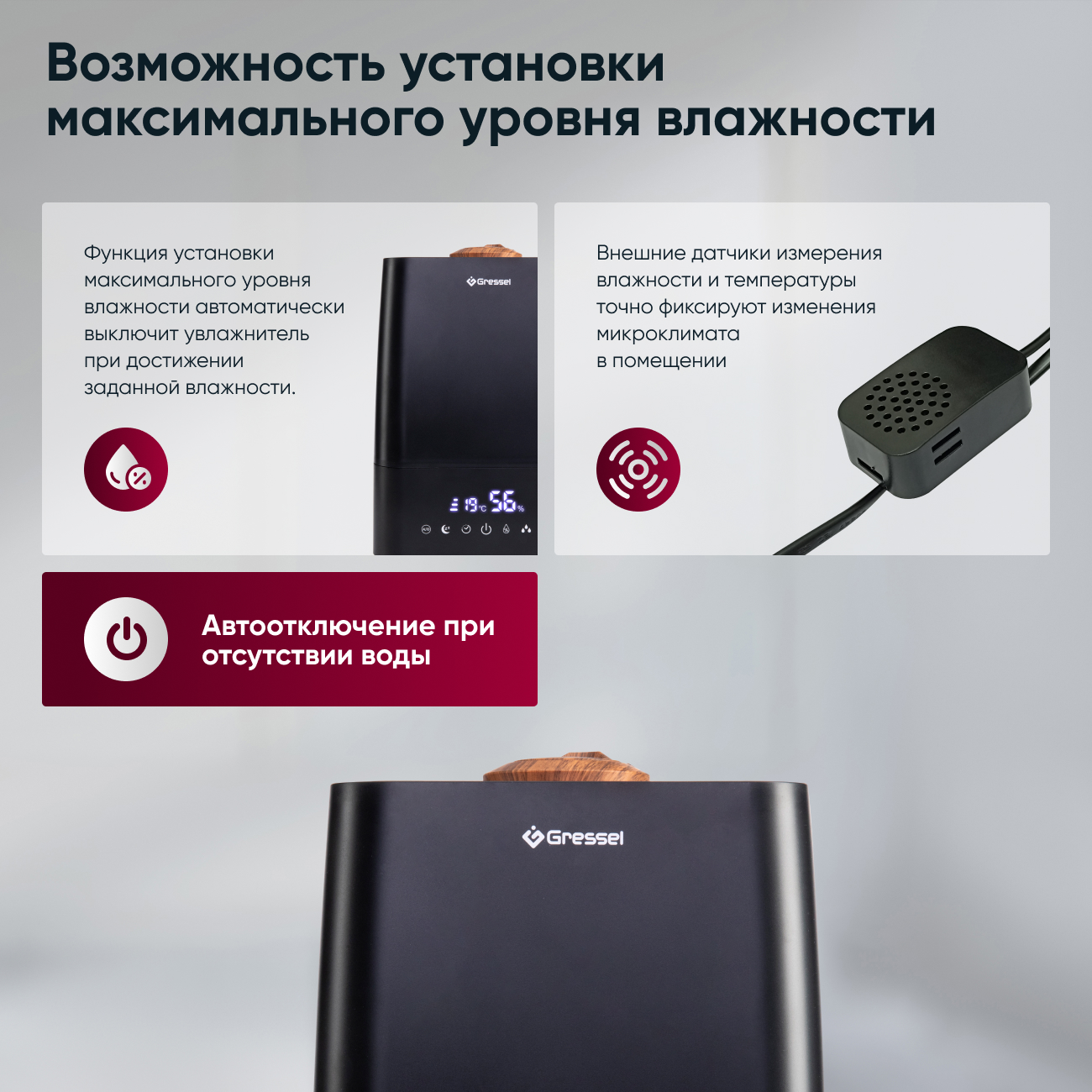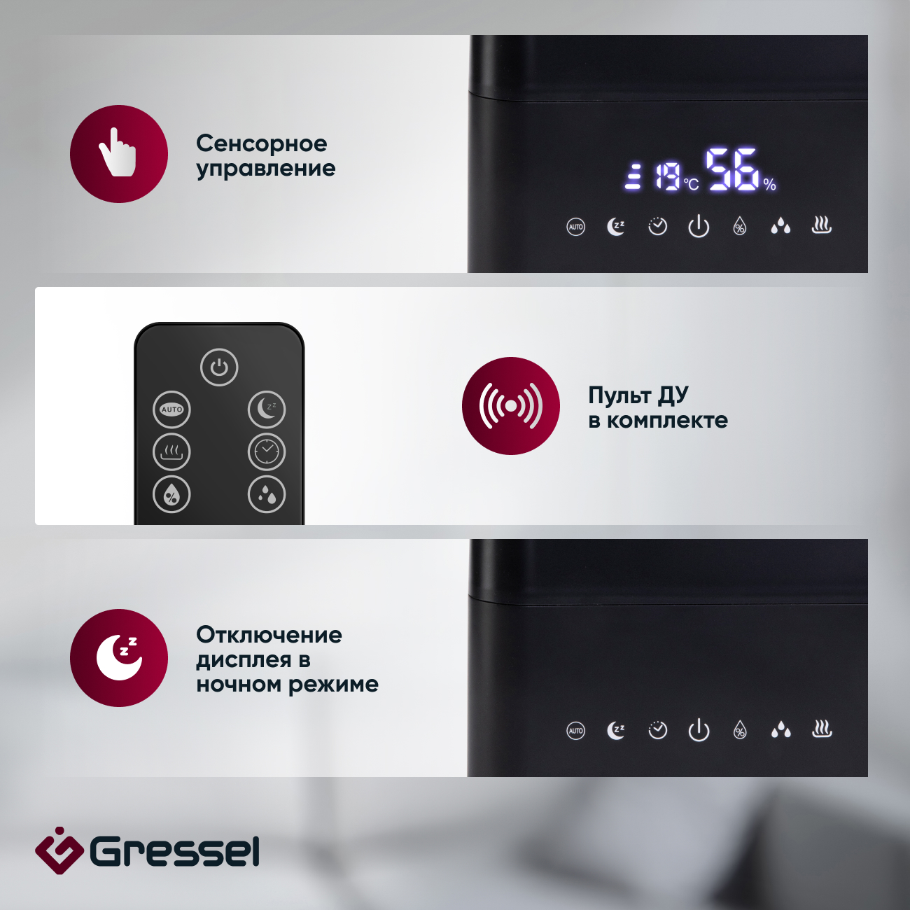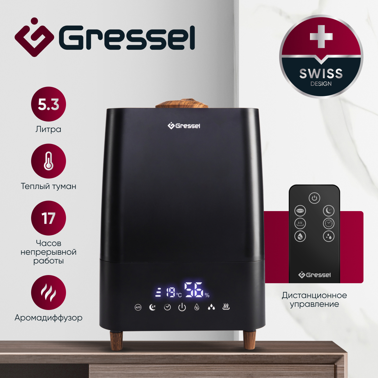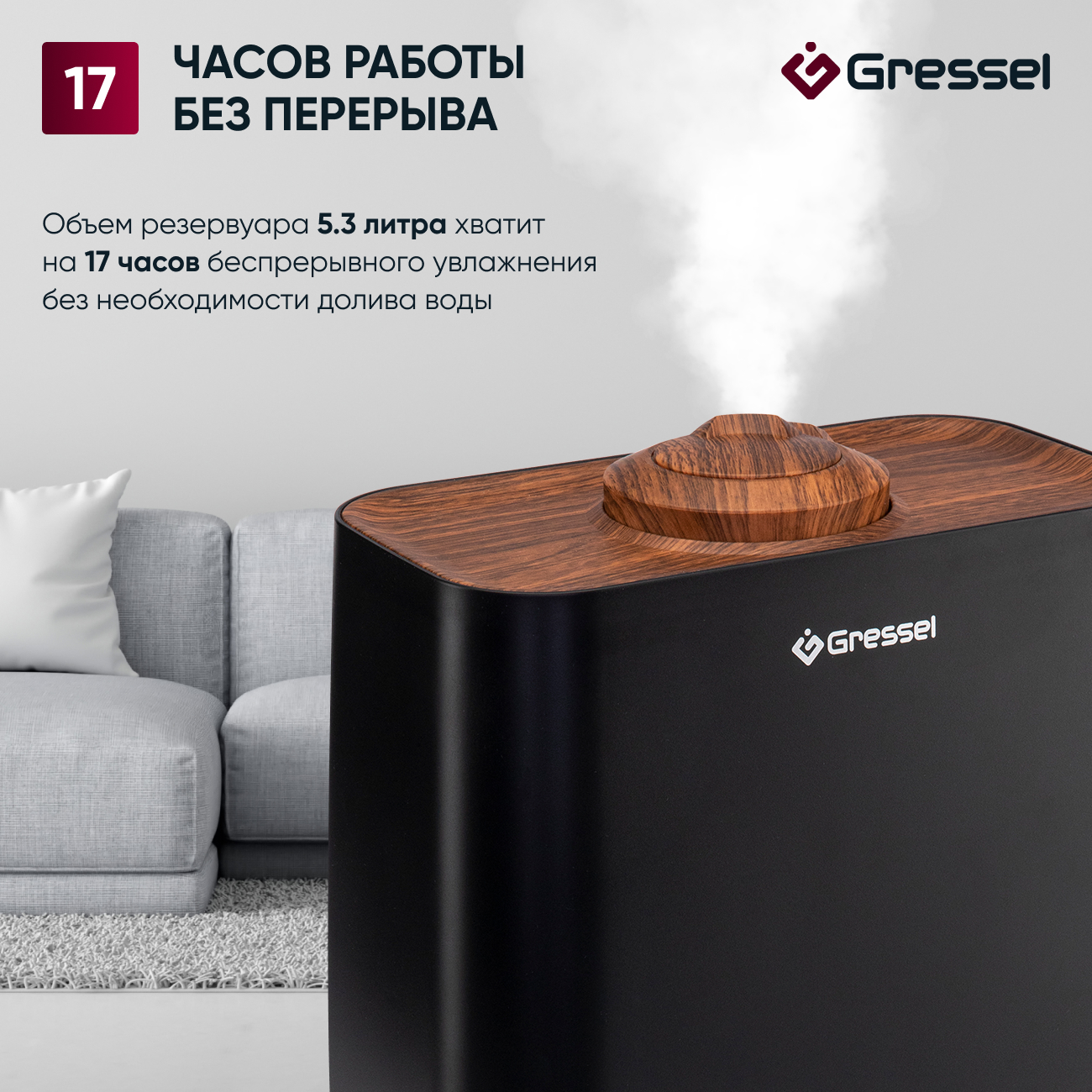 Благодаря своему компактному и стильному дизайну, увлажнитель воздуха Gressel GRU-5002 отлично впишется в любой интерьер. Он идеально подходит для использования в спальне, гостиной или офисе, обеспечивая здоровый и комфортный микроклимат.