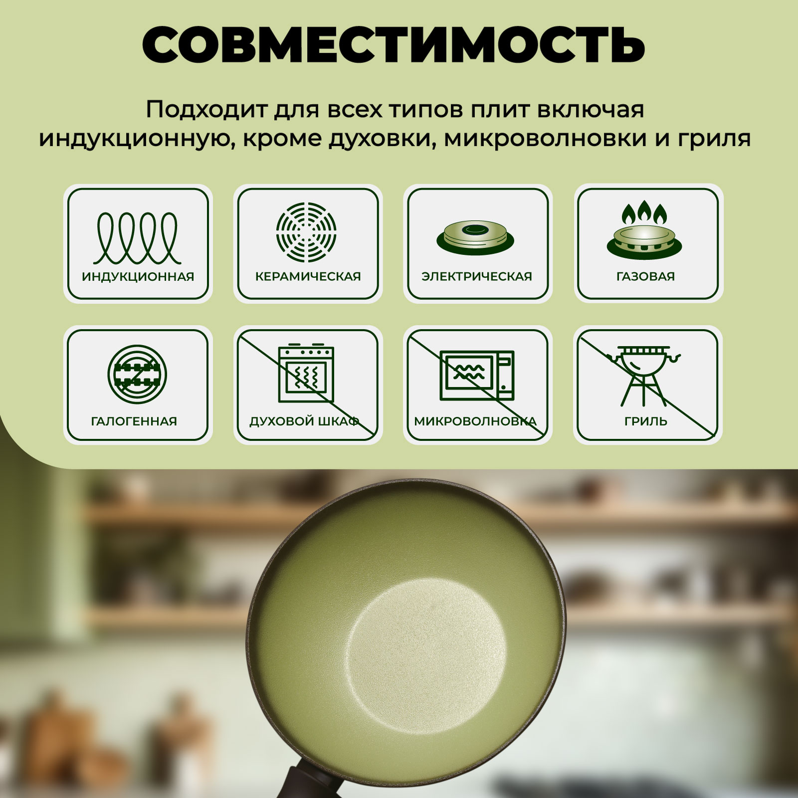 Совместимость: Подходит для всех типов плит включая индукционную, кроме духовки.