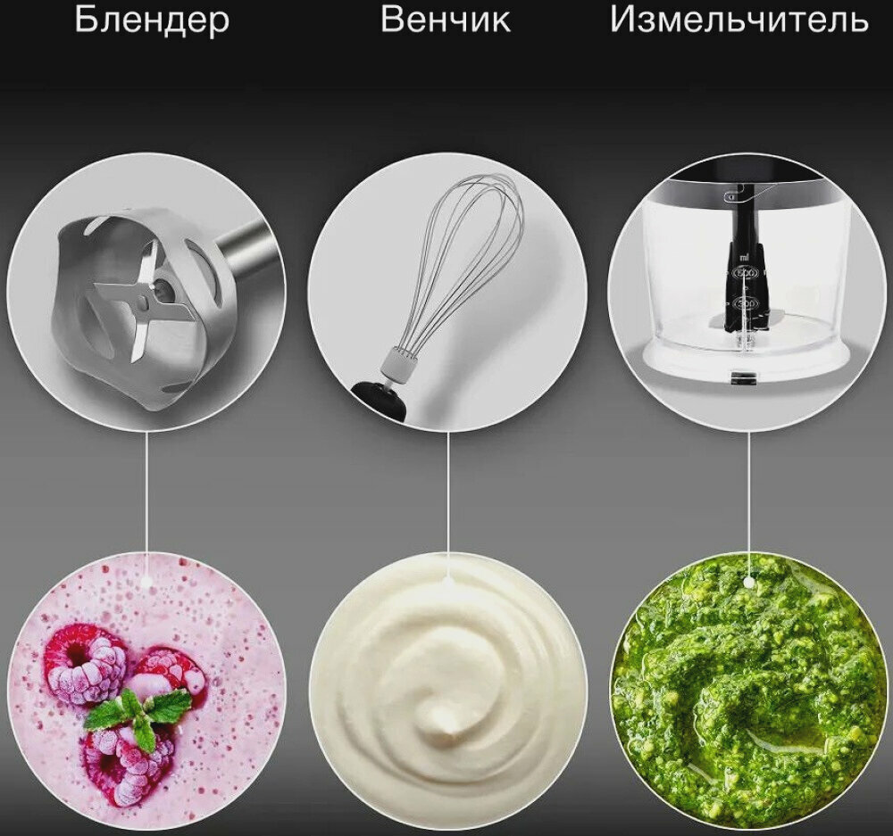 Корпус выполнен из прочного пластика, а погружная часть — из металла, что гарантирует долговечность и устойчивость к износу. Нож с четырьмя острыми лезвиями легко справляется с измельчением, смешиванием и пюрированием ингредиентов, обеспечивая идеальную текстуру блюд.