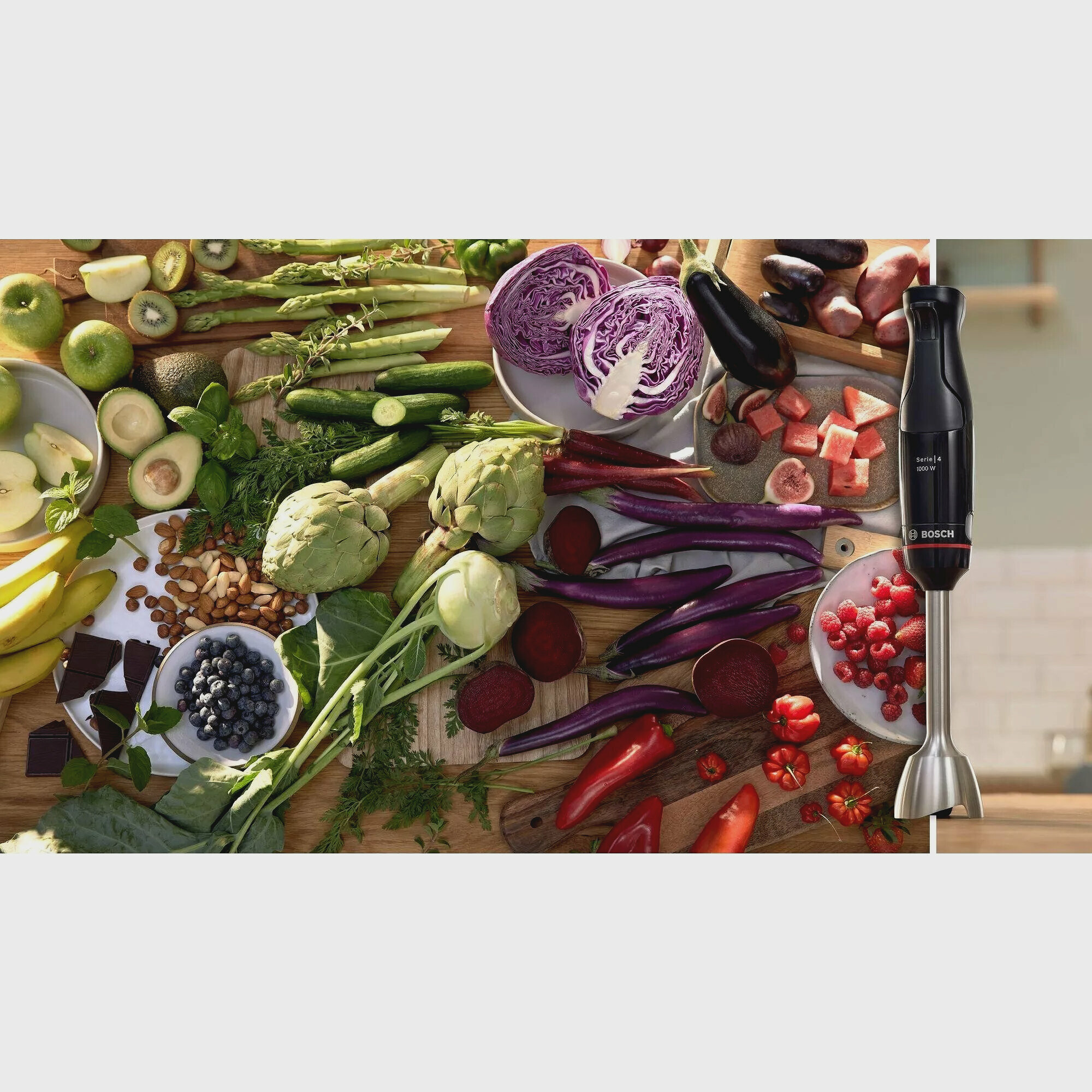 Блендер Bosch MSM4B670 — это универсальное устройство, которое сочетает мощность и функциональность, делая процесс приготовления пищи удобным и быстрым. Мощный двигатель на 1000 Вт обеспечивает высокую производительность, а 12 скоростей и турборежим позволяют подобрать оптимальный режим для каждого типа ингредиентов — от мягких фруктов до твердых орехов.