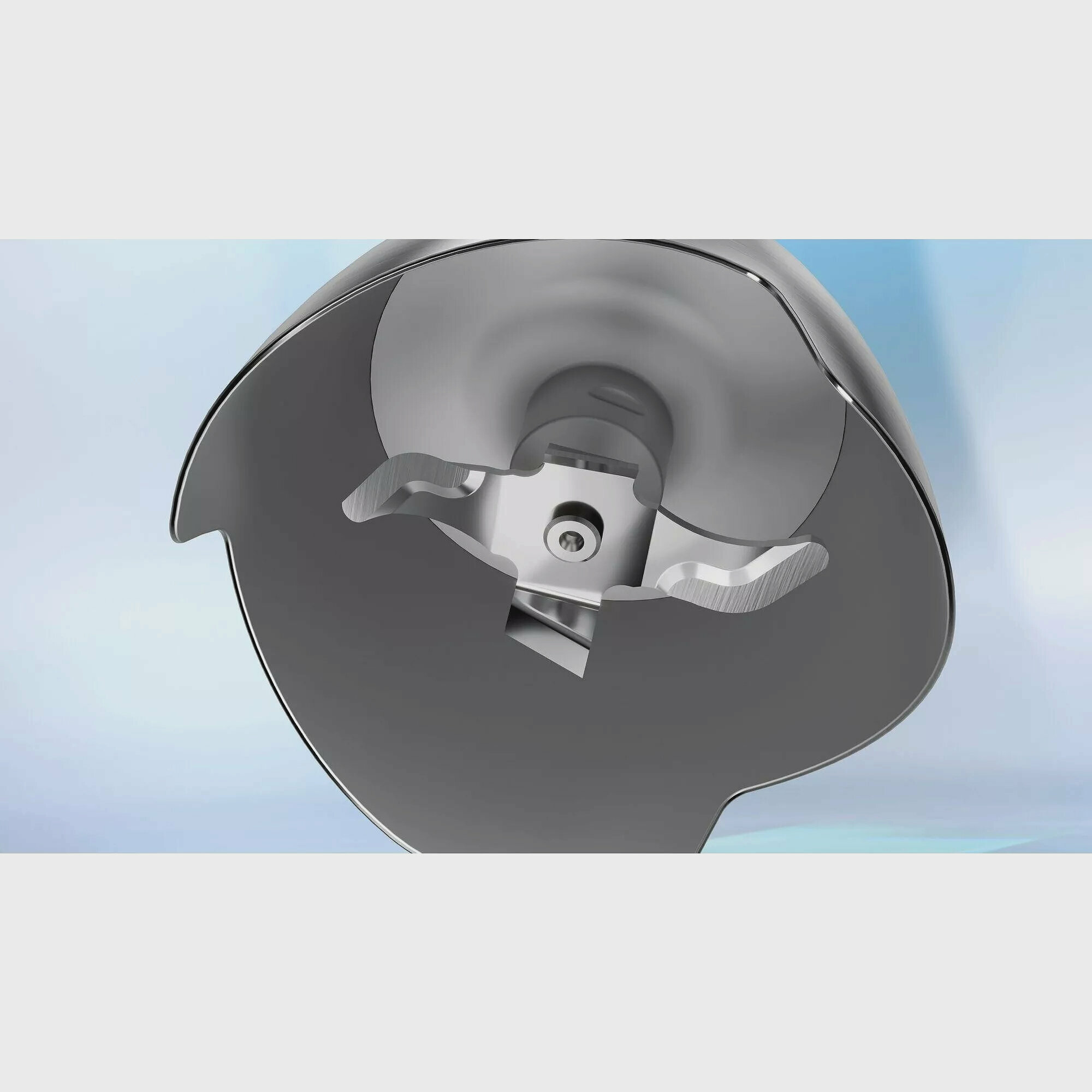 В комплект входят полезные аксессуары: венчик для взбивания кремов и соусов, универсальная чаша-измельчитель для твердых продуктов, а также вакуумный насос и контейнер объемом 1,25 литра, которые помогают сохранить свежесть продуктов. Насадка-комбайн с режущими вставками позволяет легко шинковать и тереть овощи, а проталкиватель облегчает работу с твердыми ингредиентами.