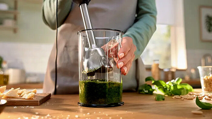 В комплекте с блендером идут измельчитель и венчик для взбивания, что позволяет приготовить больше разнообразных и вкусных домашних блюд.