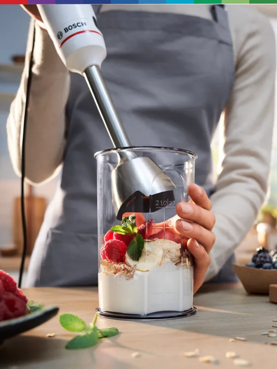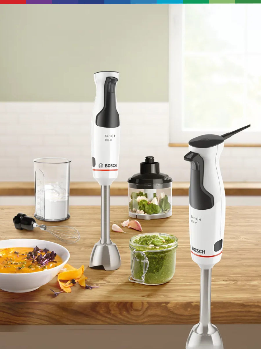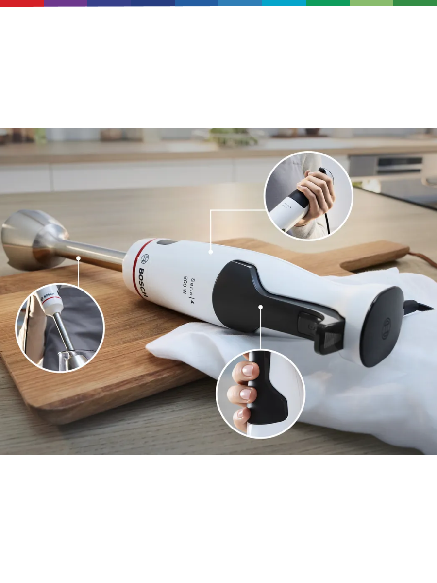 Блендер Bosch MSM4W421 – мощный и функциональный кухонный помощник для профессионального использования дома, оснащенный мощным двигателем 800 Вт, который легко справляется даже с самыми твердыми ингредиентами, включая лед и замороженные фрукты, обеспечивая идеально однородную консистенцию без комочков. Плавная регулировка скорости позволяет точно настраивать интенсивность работы в зависимости от типа обрабатываемых продуктов, от нежного пюре до грубого измельчения, а турборежим дает мгновенный импульс мощности для моментального результата. Инновационная конструкция ножа с 4 острыми лезвиями из нержавеющей стали обеспечивает максимальную эффективность измельчения и взбивания, сокращая время приготовления любимых блюд. Эргономичная ручка с антискользящим покрытием гарантирует удобный хват и полный контроль во время работы, а компактная конструкция делает хранение простым и удобным. Блендер оснащен защитой от перегрева, что обеспечивает долговечность и безопасность даже при интенсивном использовании, а легко моющиеся детали упрощают уход после приготовления. С этим блендером вы сможете легко готовить супы-пюре, соусы, смузи, детское питание, муссы, молочные коктейли и многие другие кулинарные шедевры, экономя время и получая идеальный результат каждый раз.