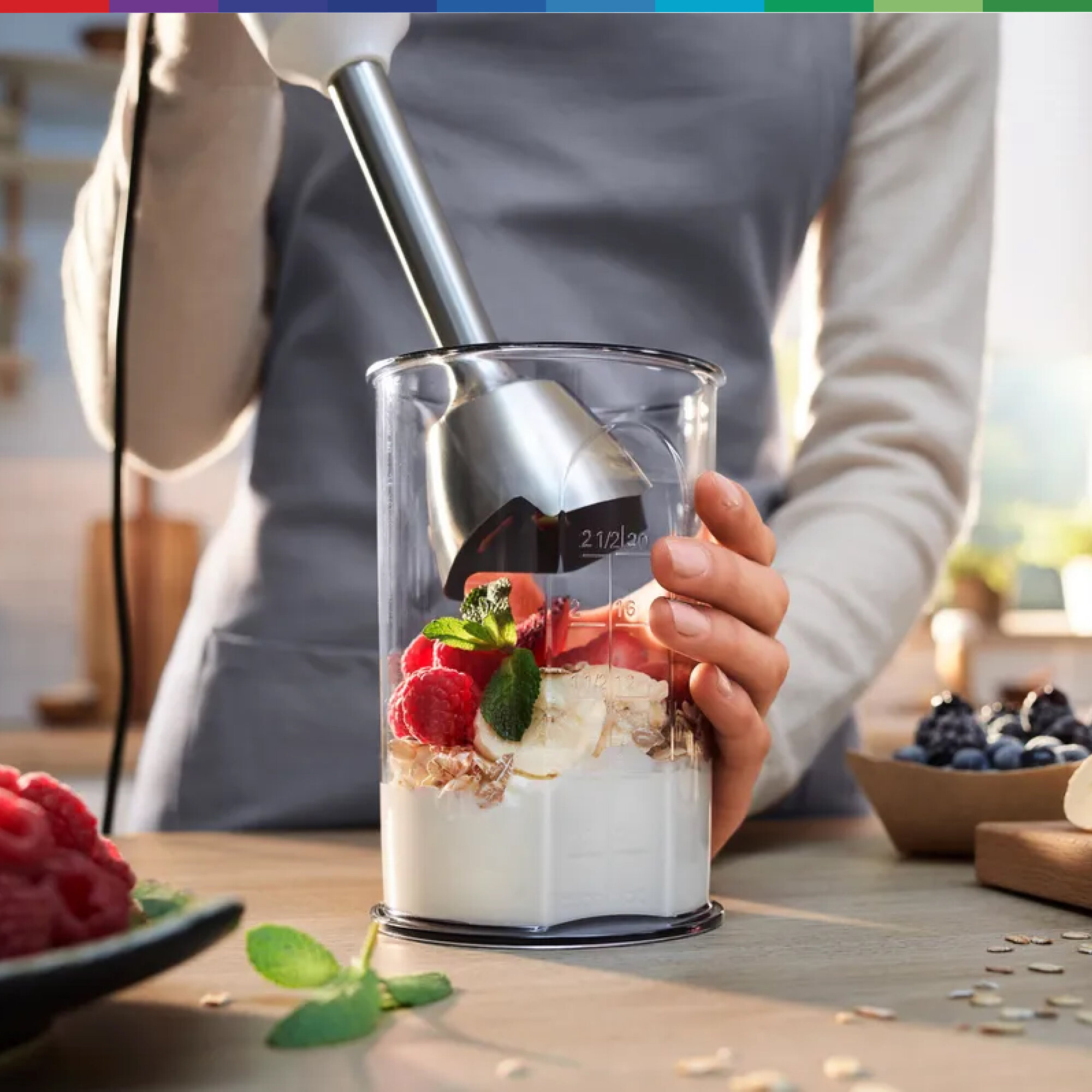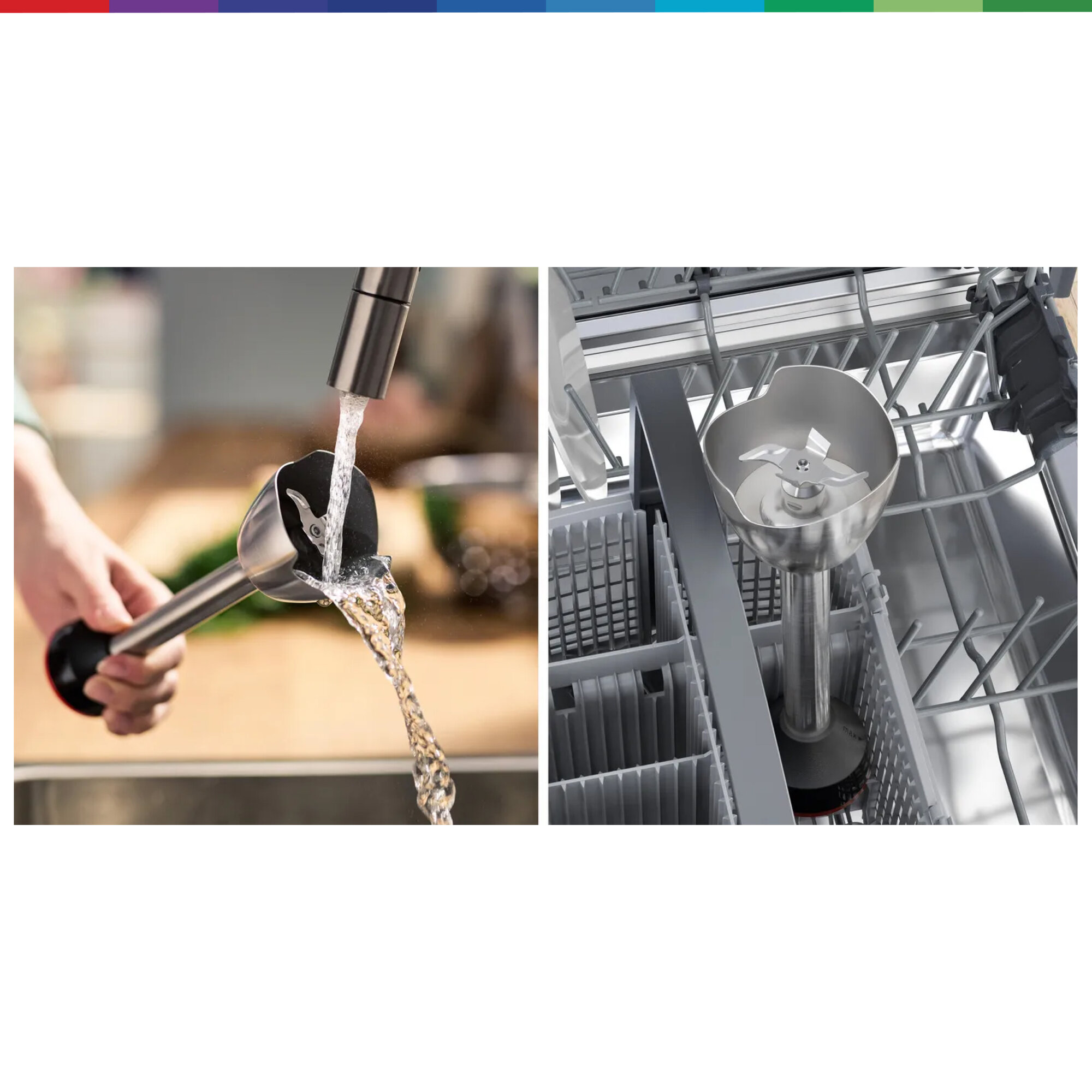 Высокая производительность благодаря мощности в 600 Вт Удобство использования благодаря возможности бесступенчатой регулировки скорости Возможность мыть съемные детали в посудомоечной машине