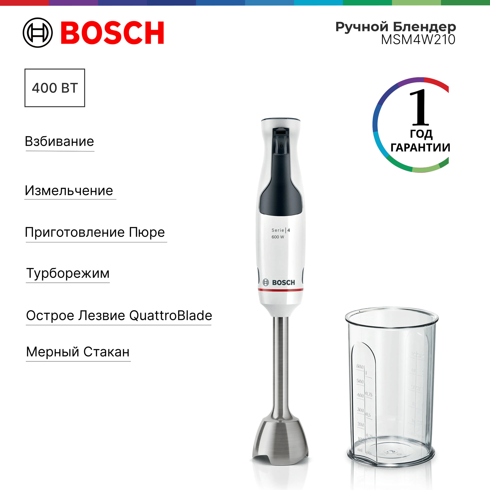 Блендер Bosch MSM4W210 – это высококачественное устройство, разработанное с учетом всех современных требований к кухонной технике. Дизайн устройства выполнен в лаконичном белом цвете, что позволяет ему вписаться в любой интерьер кухни. Корпус блендера изготовлен из прочного пластика, а погружная часть – из металла, что гарантирует долговечность и надежность при использовании.