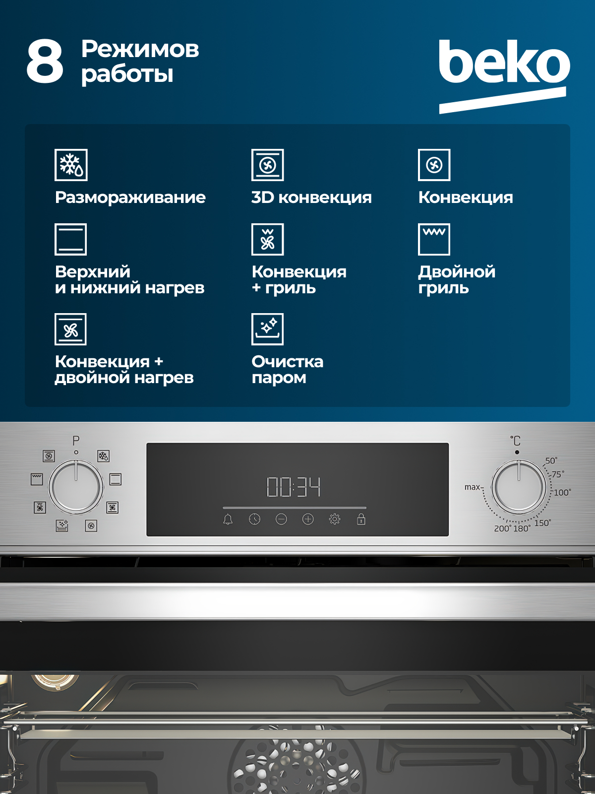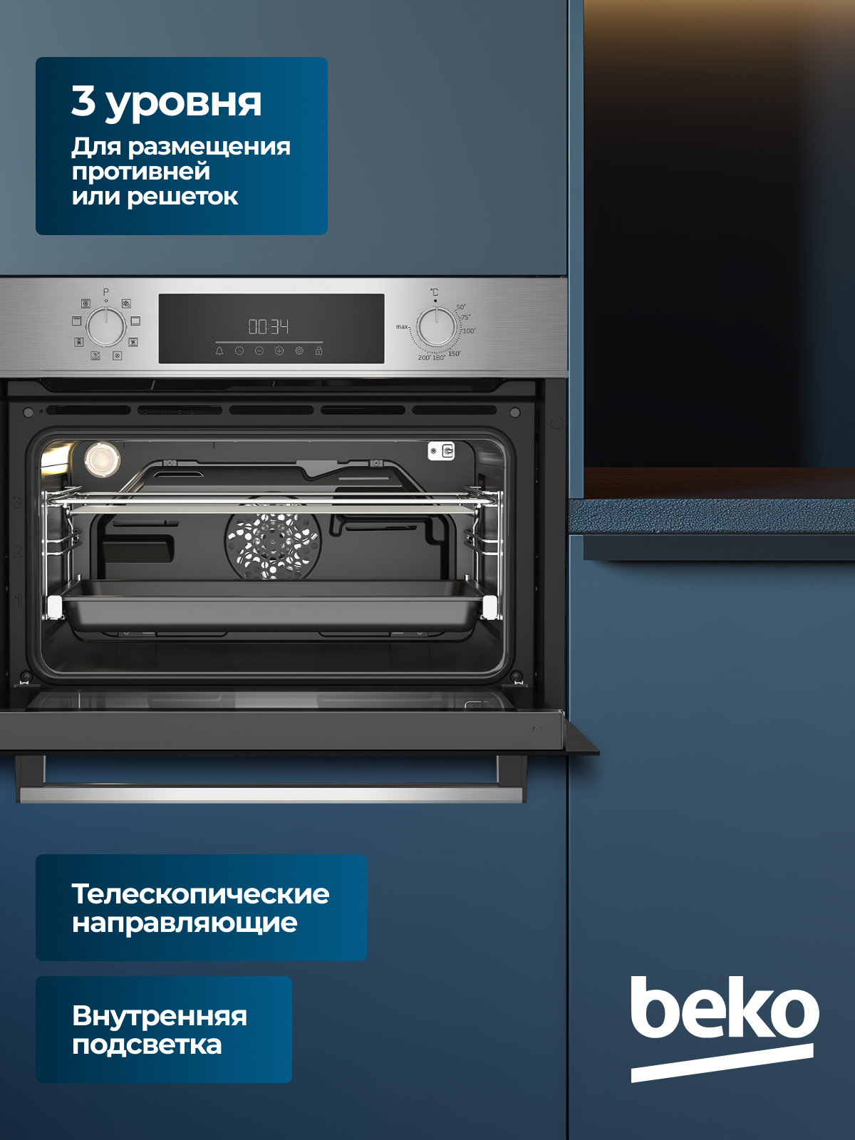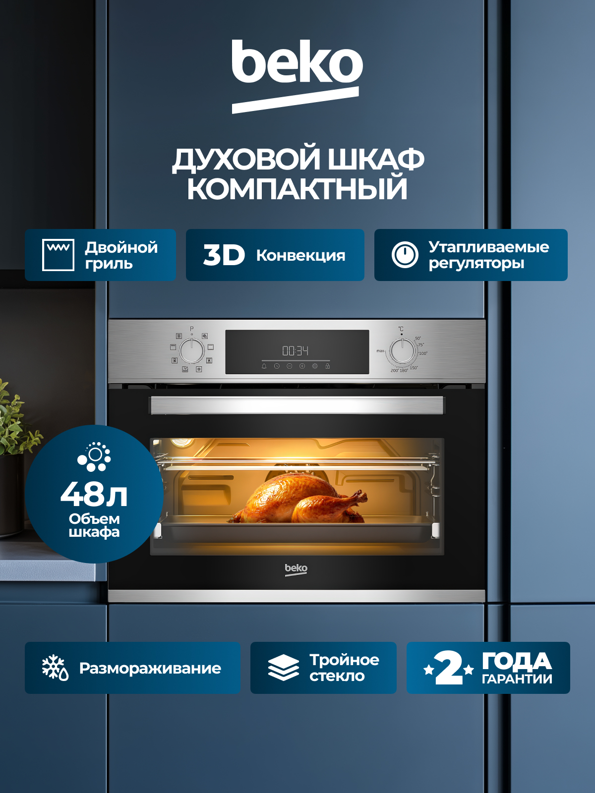 Духовой шкаф Beko 48 литров, 8 режимов, гриль, нержавеющая сталь