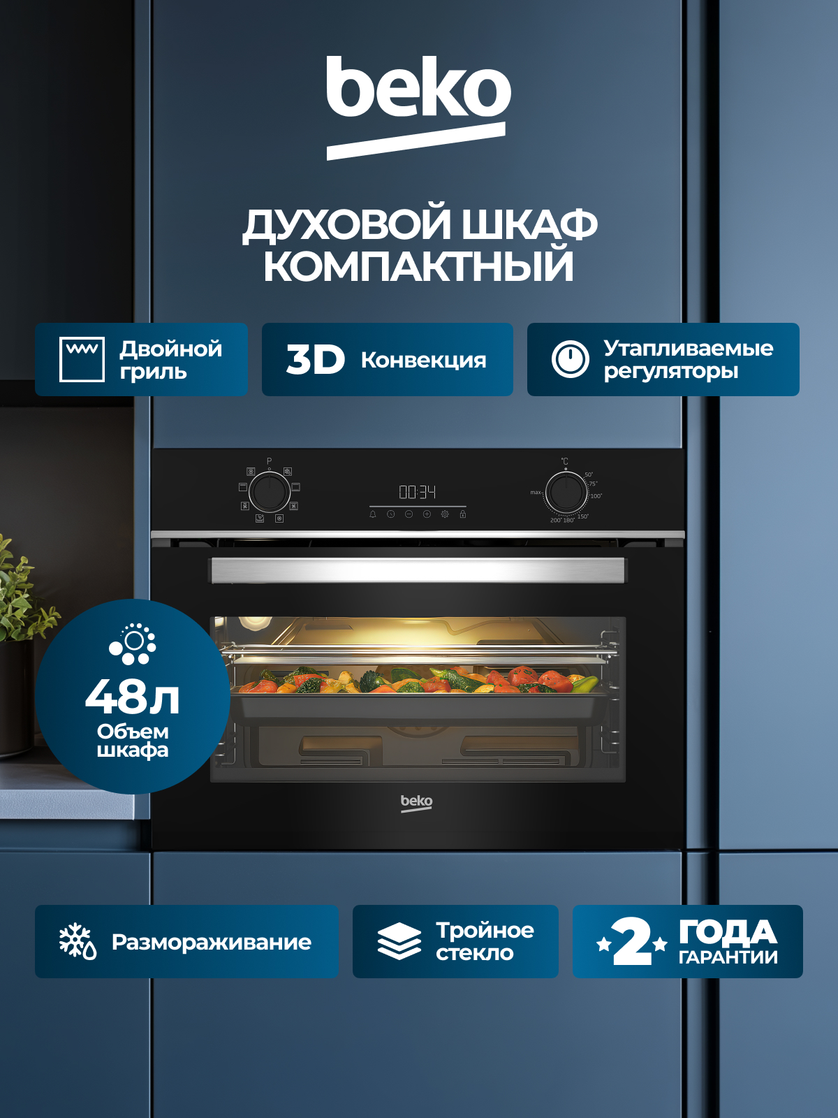 Духовой шкаф Beko 48 литров, 8 режимов, гриль, черный/нержавеющая сталь