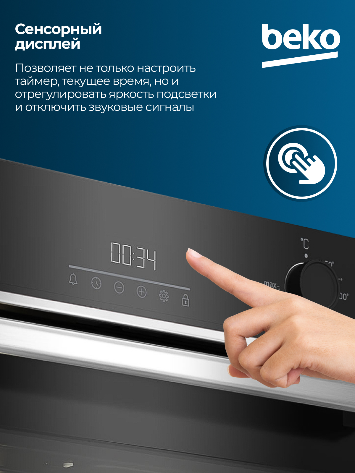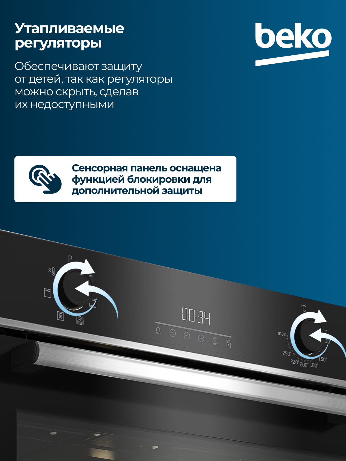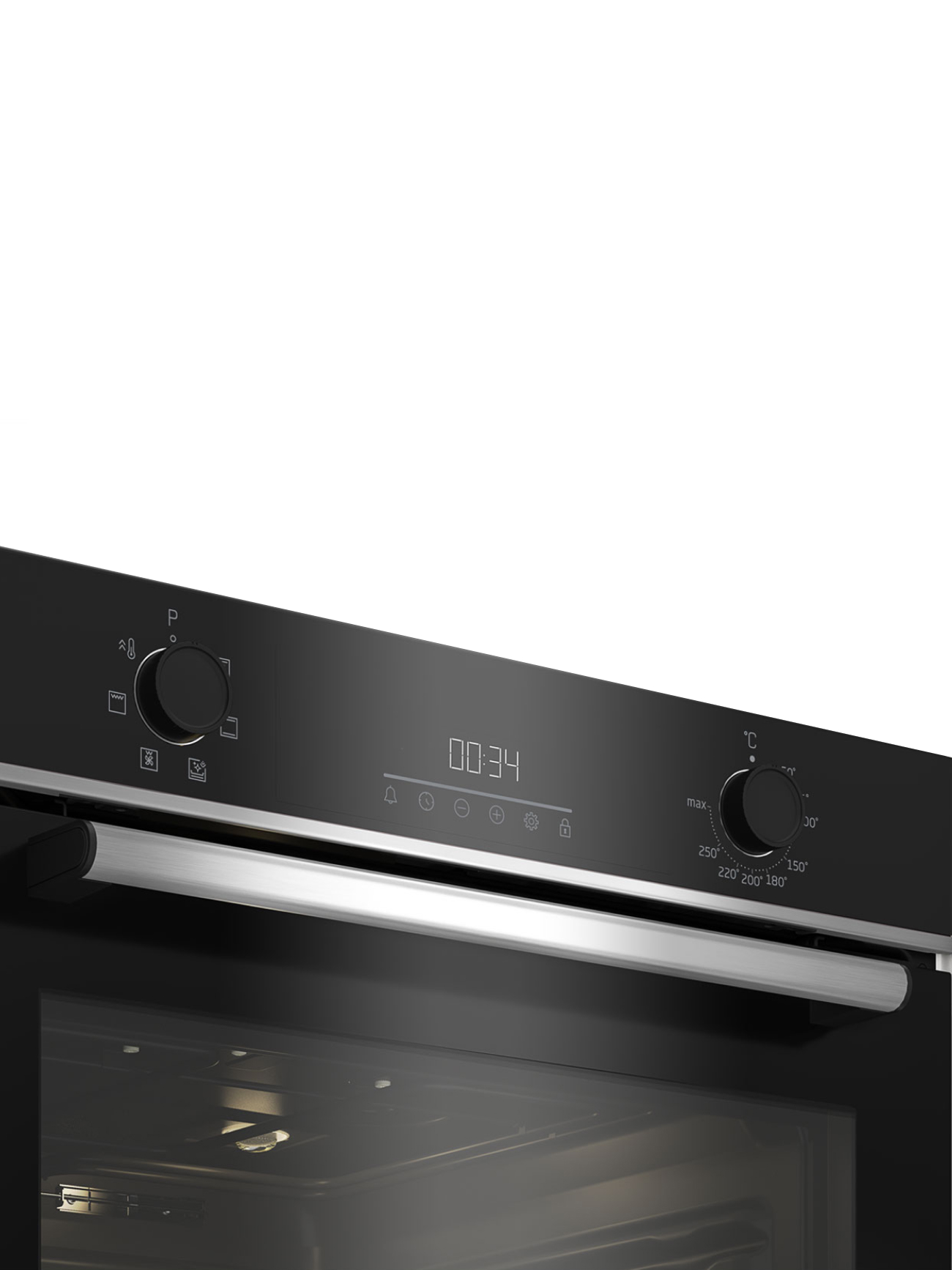 Духовым шкафом BIOC1431KBNC просто и комфортно управлять: внутренняя подсветка, панель управления с утапливаемыми переключателями и яркий дисплей с сенсорными клавишами упрощают процесс использования техники, чтобы вам было приятно находиться на кухне за приготовлением блюд.