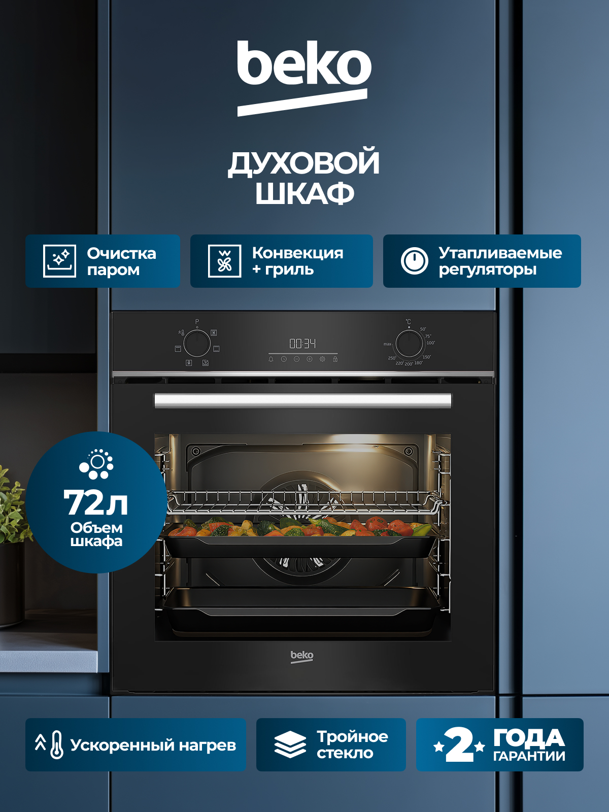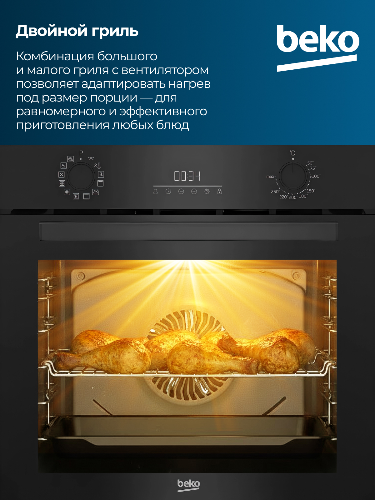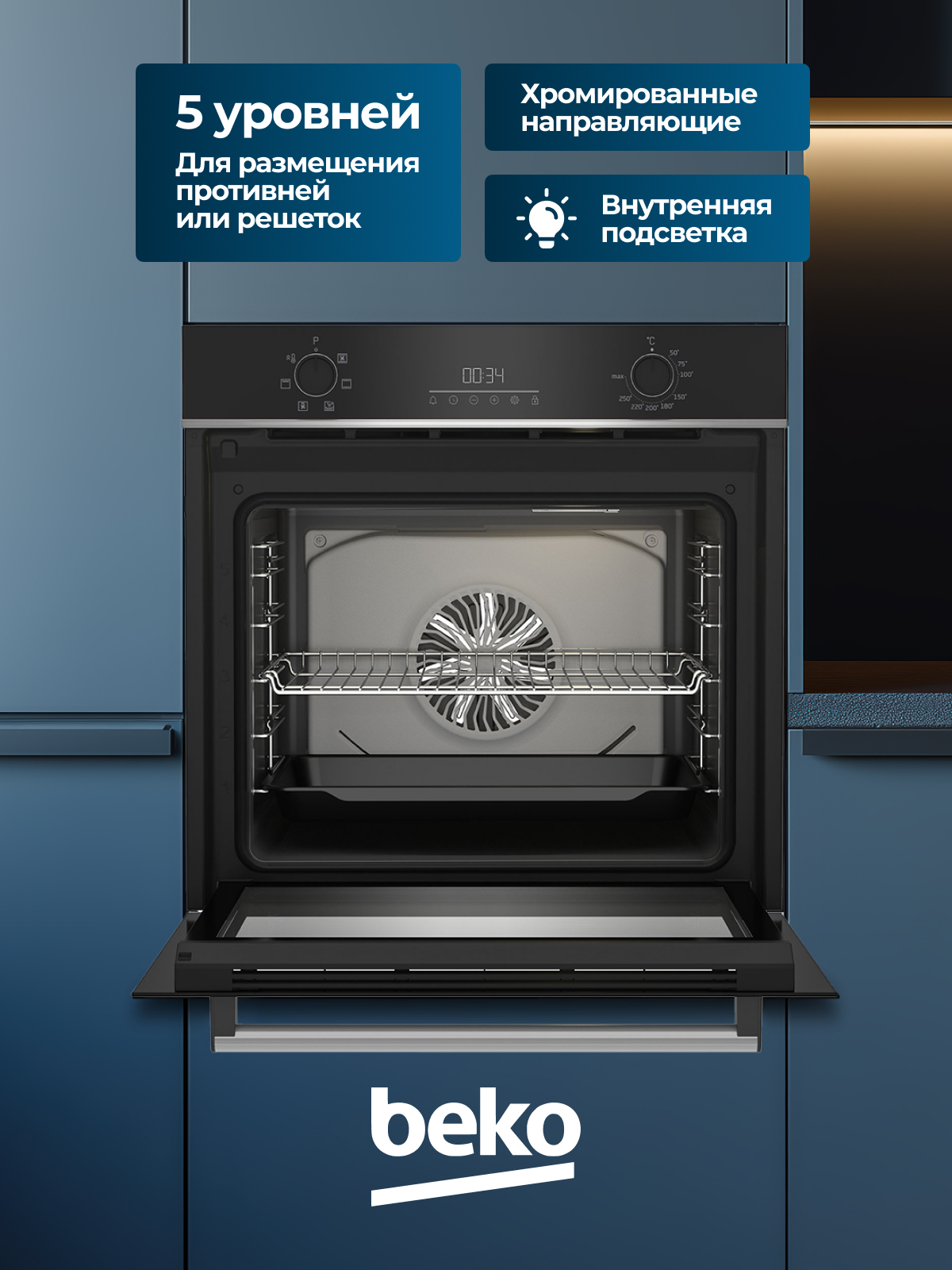 Конвекционный духовой шкаф Beko BIOC1431KBNC – простой, но эффективный вариант для современной домашней кухни. В нем доступно 6 режимов приготовления, среди которых есть гриль и конвекция. Используя их, вы легко добьетесь равномерного и быстрого нагрева, отличного пропекания и аппетитной румяной корочки. Каталитическое покрытие задней стенки камеры духового шкафа обеспечит легкий уход за техникой, чтобы вы смогли освободить время для более приятных занятий.