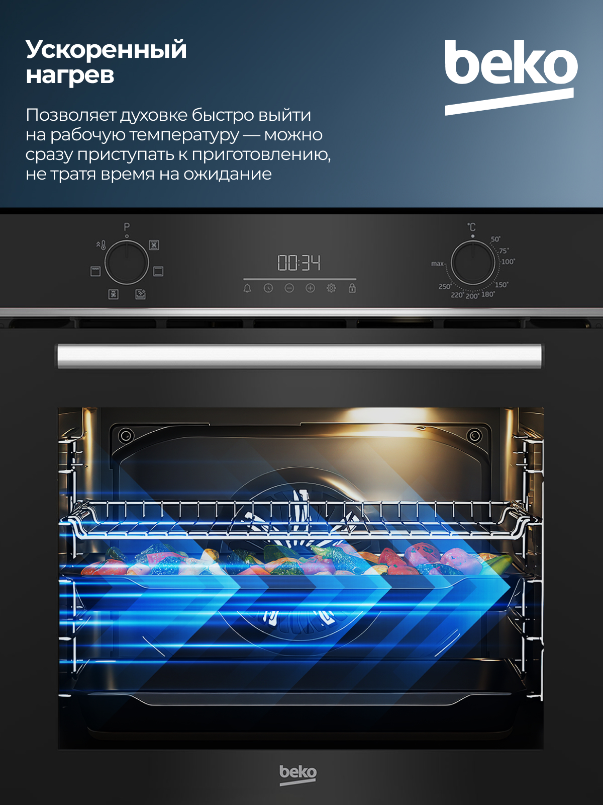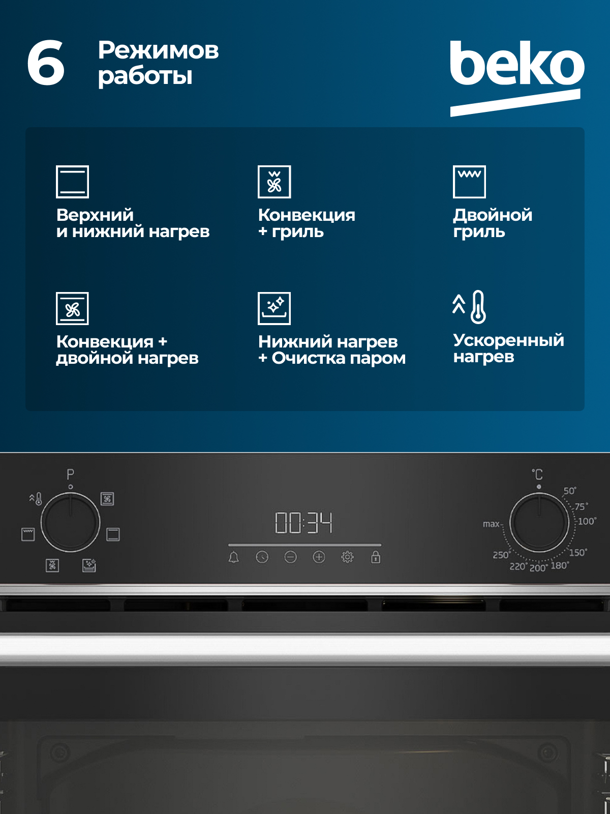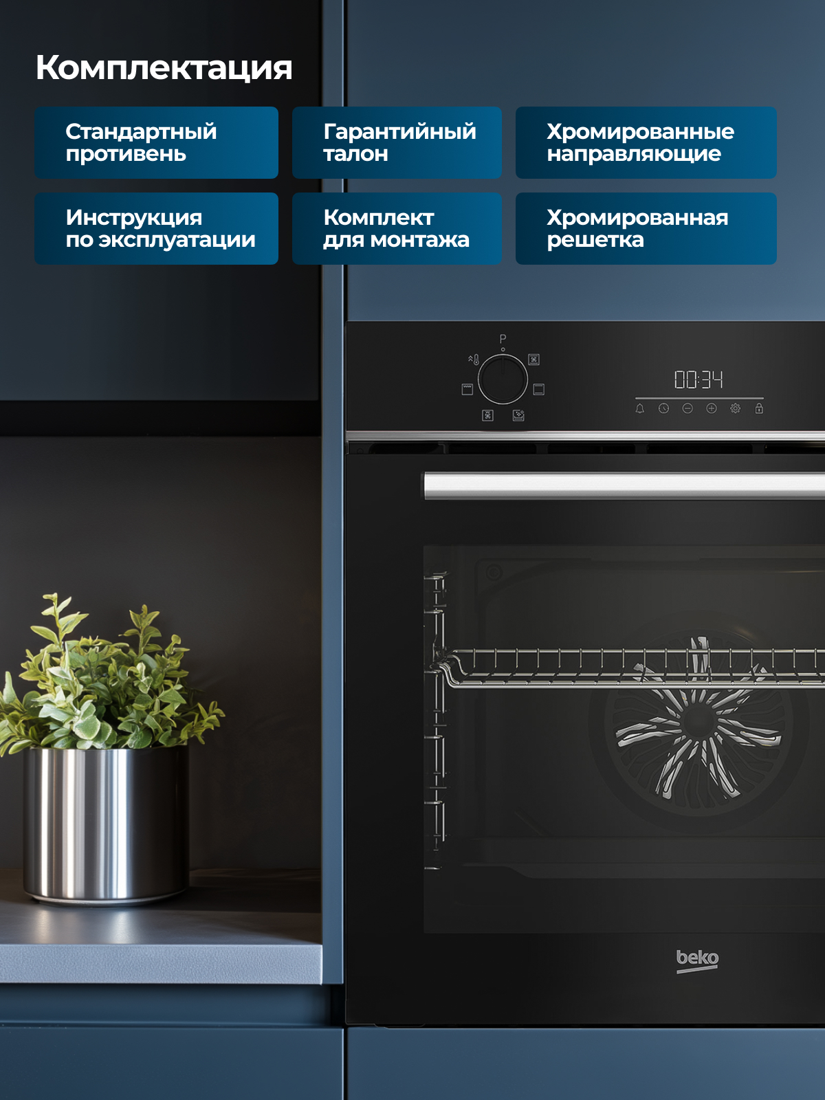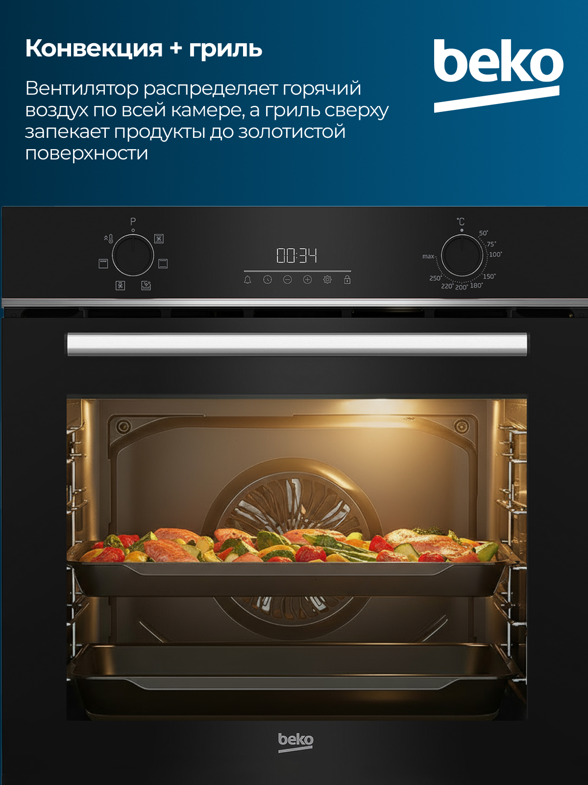 Конвекционный духовой шкаф Beko BIOC1431KBNC – простой, но эффективный вариант для современной домашней кухни. В нем доступно 6 режимов приготовления, среди которых есть гриль и конвекция. Используя их, вы легко добьетесь равномерного и быстрого нагрева, отличного пропекания и аппетитной румяной корочки. Каталитическое покрытие задней стенки камеры духового шкафа обеспечит легкий уход за техникой, чтобы вы смогли освободить время для более приятных занятий.