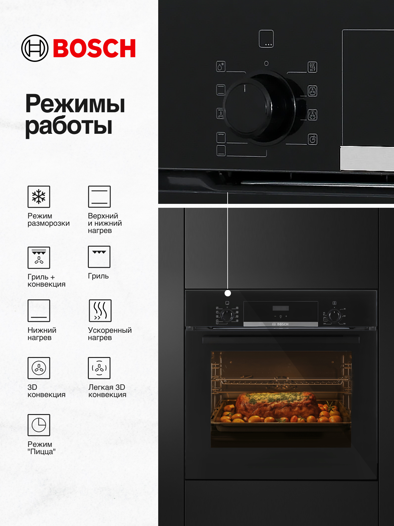 Верхний + нижний нагрев + конвекция, Гриль, Конвекция, гриль + конвекция, конвекция + верхний нагрев, нижний + верхний нагрев, нижний нагрев + конвекция