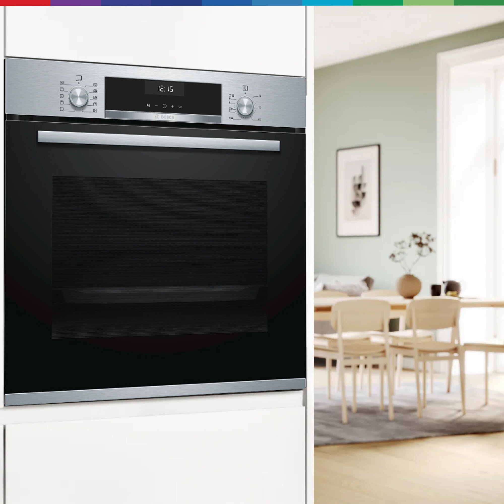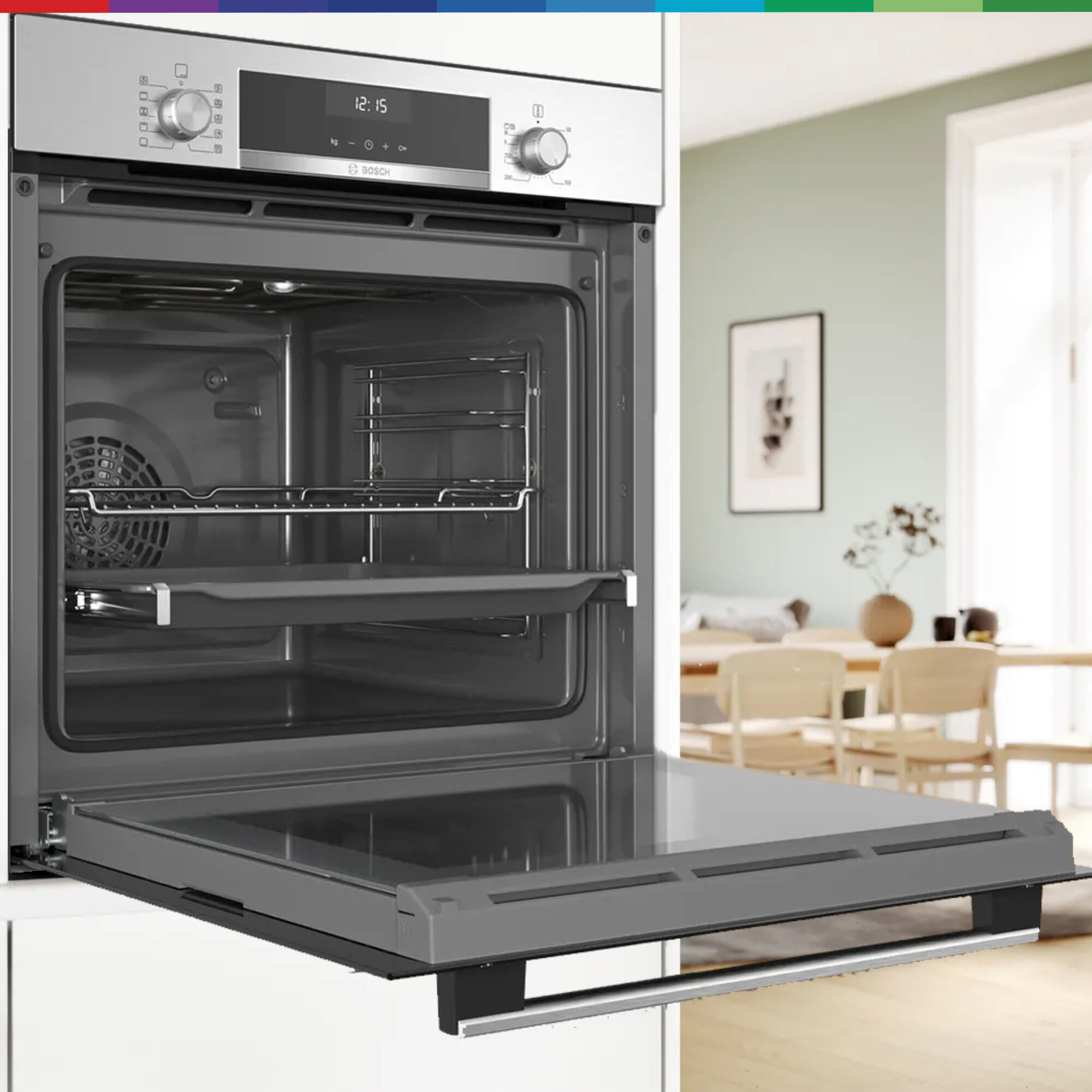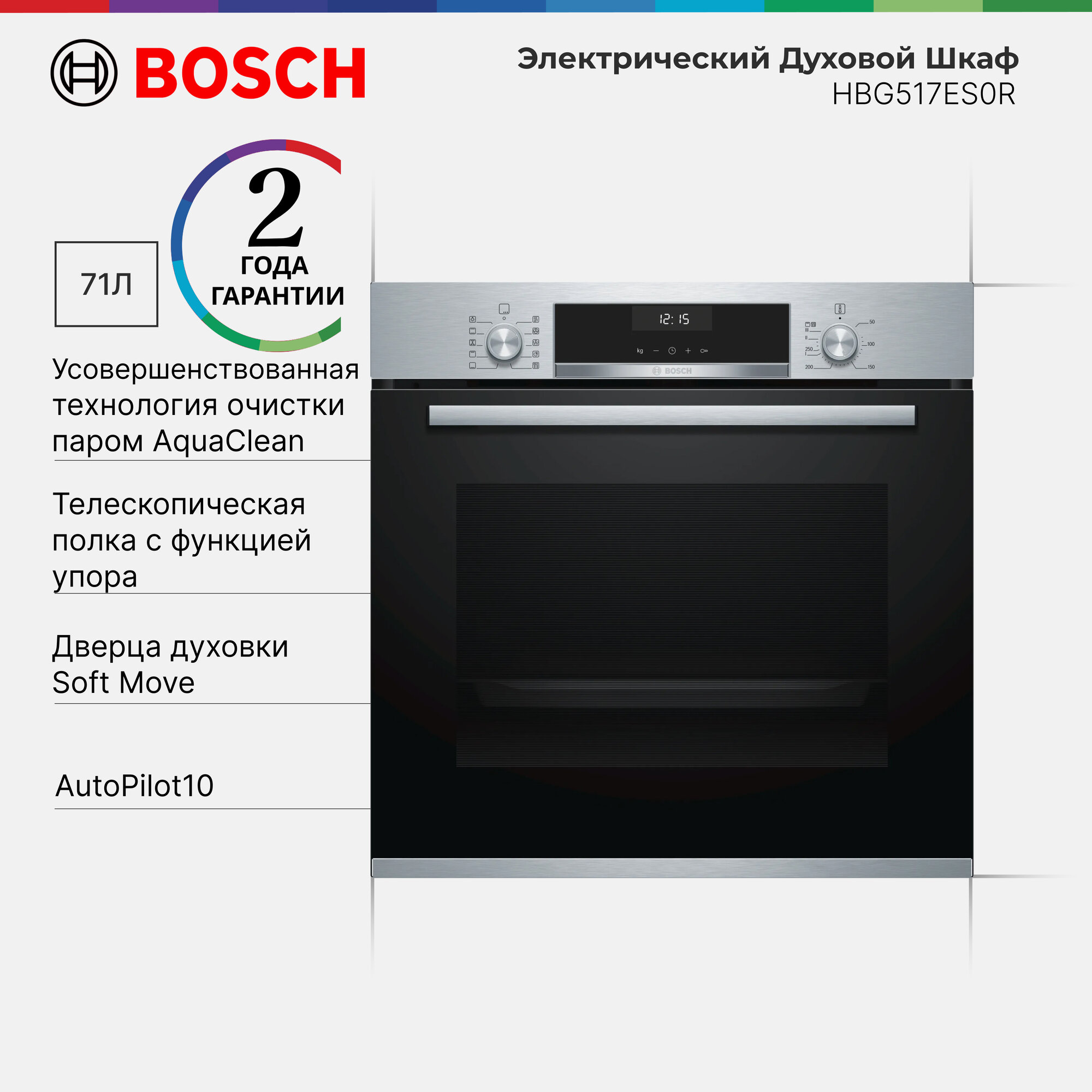 Духовой шкаф Bosch HBG517ES0R, телескопические направляющие, доводчик двери, автопрограммы, эмаль легкой очистки