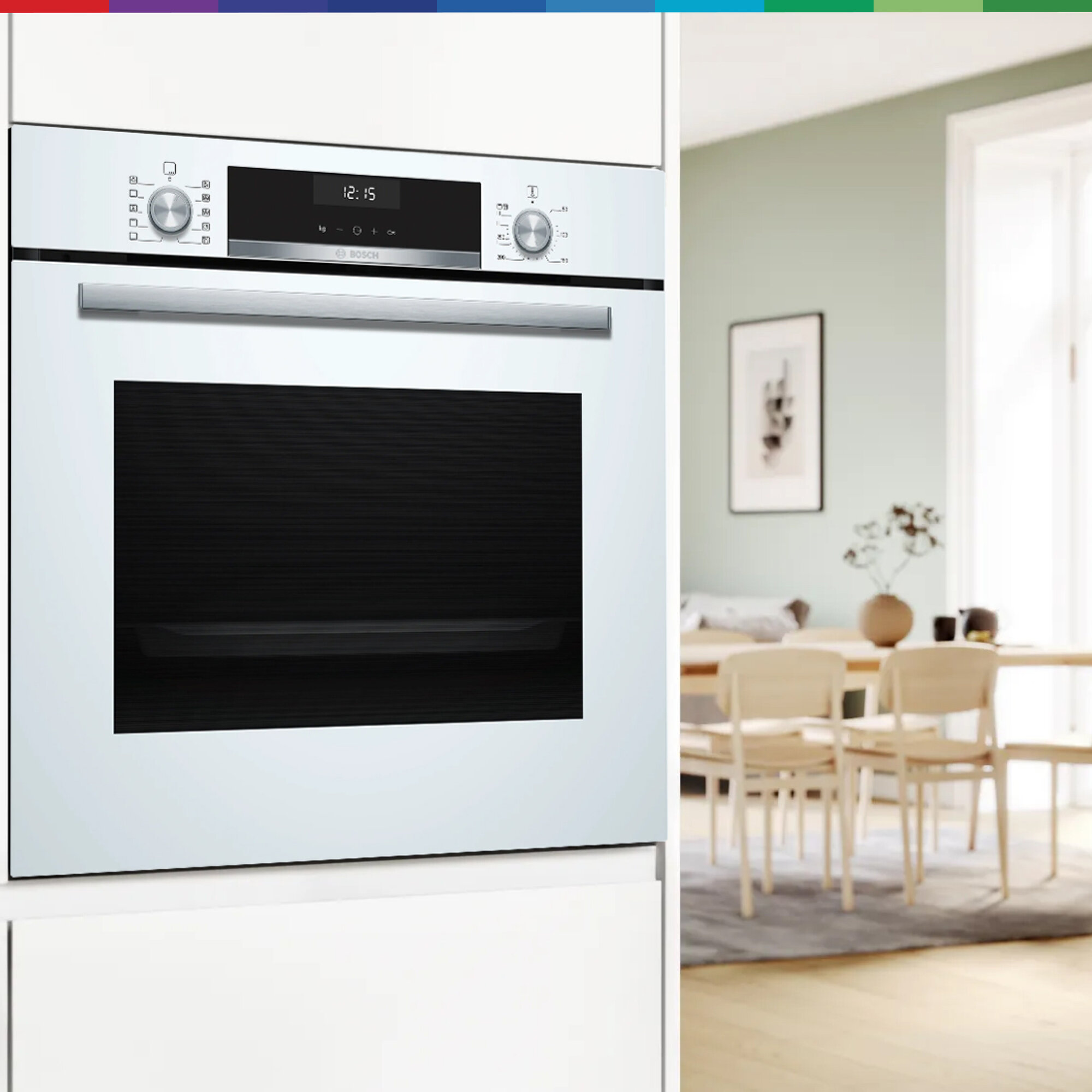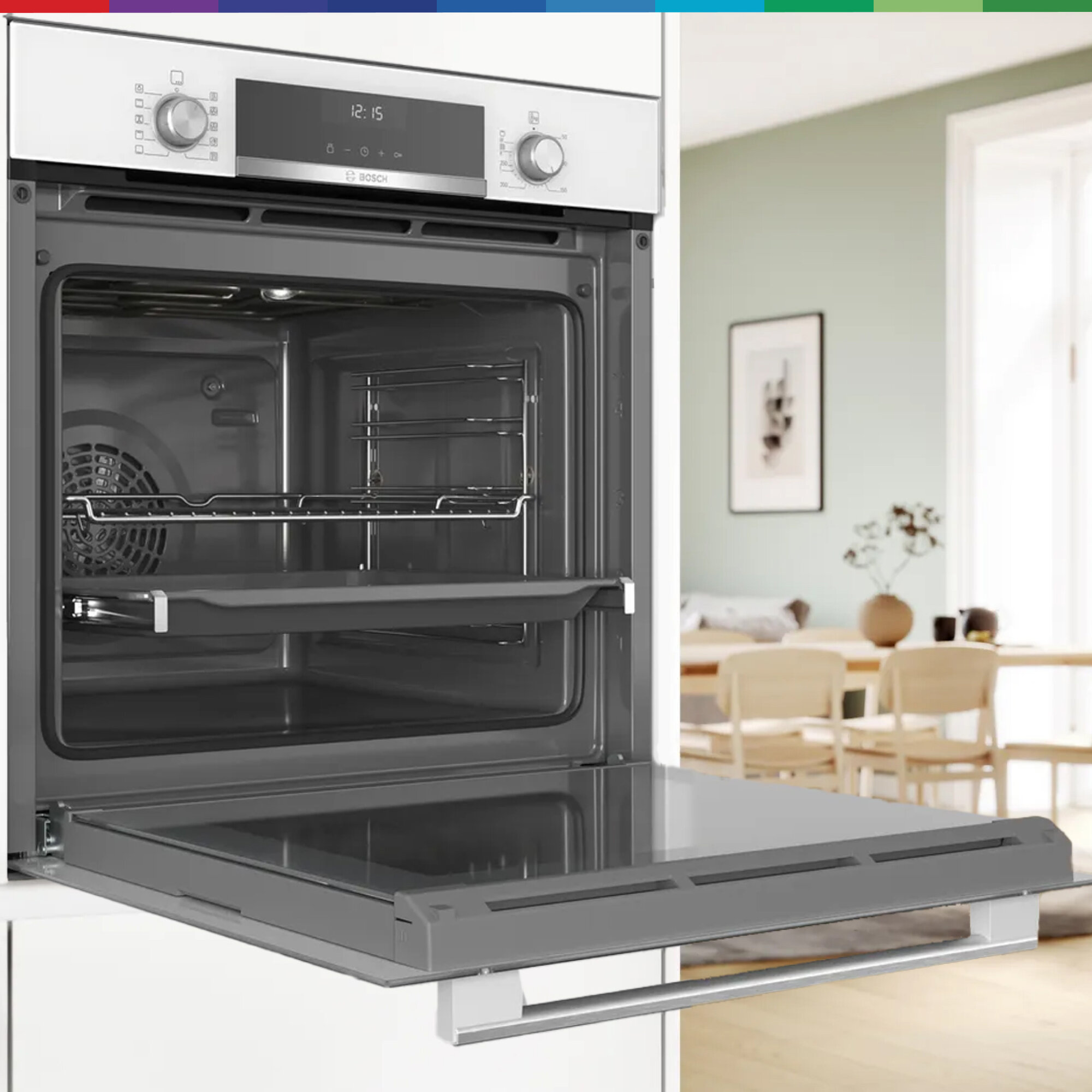 Духовой шкаф Bosch HBG517EW0R, телескопические направляющие, доводчик двери, автопрограммы, эмаль легкой очистки