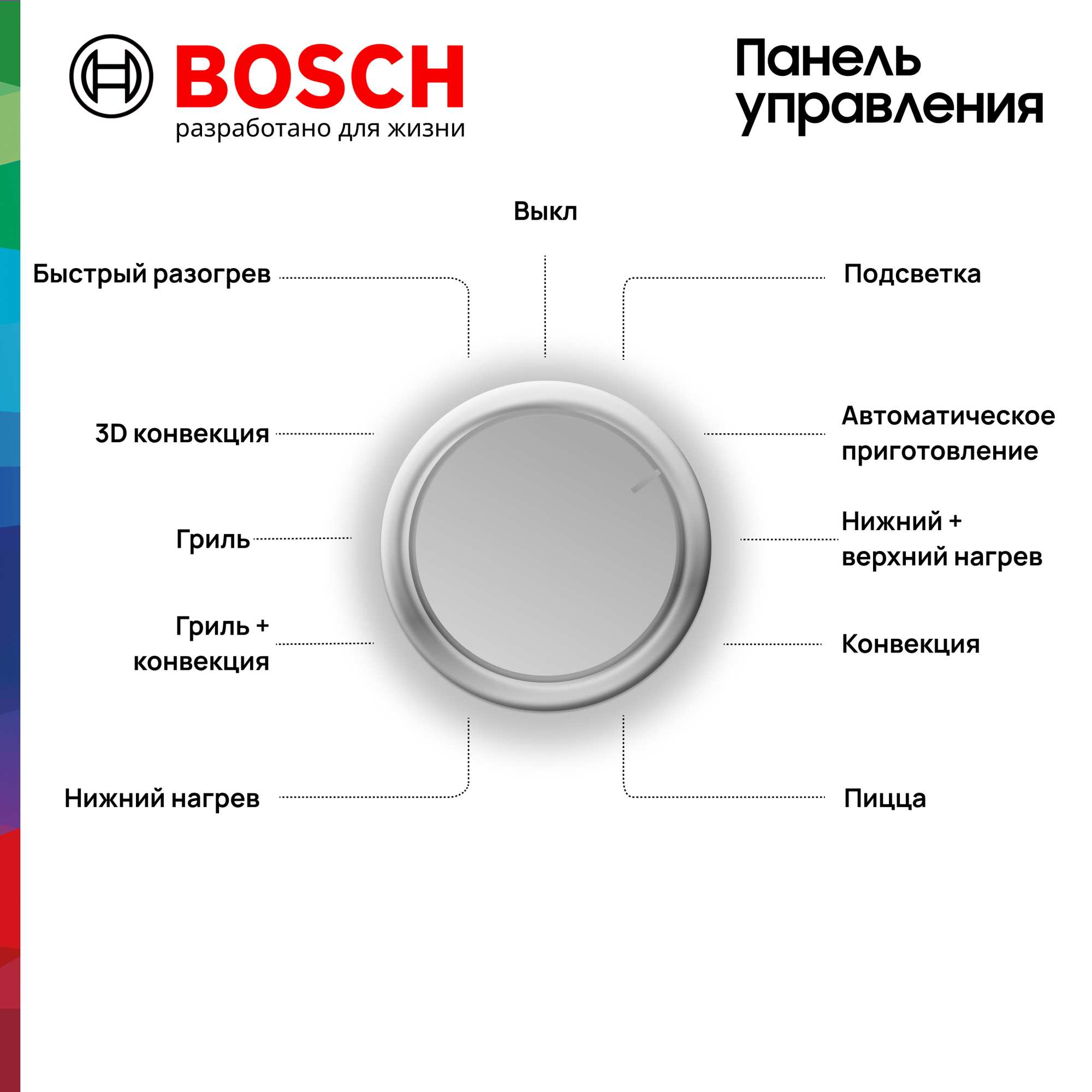 Верхний + нижний нагрев + конвекция, Гриль, Конвекция, гриль + конвекция, конвекция + верхний нагрев, нижний + верхний нагрев, нижний нагрев + конвекция