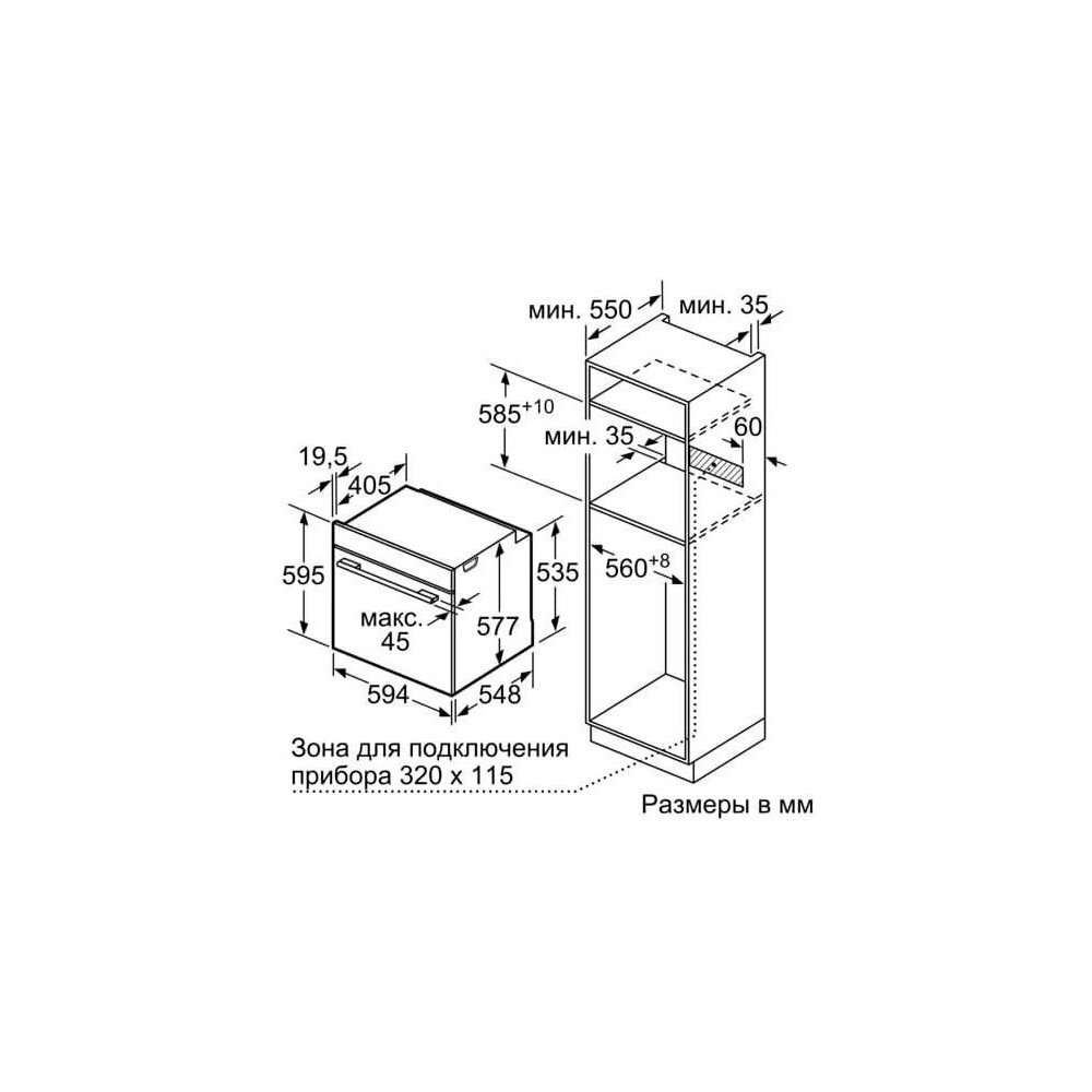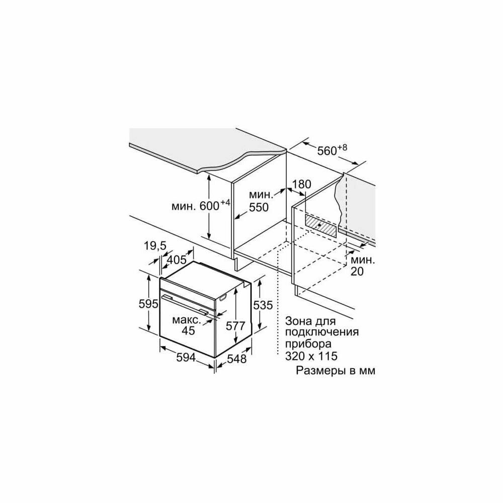 Страна производства: Германия. Товар новый в заводской упаковке. Встроенный духовой шкаф с функциями PerfectBake и PerfectRoast: вы автоматически получаете идеальные результаты выпечки и жарки. • PerfectRoast: точное измерение температуры сердцевины для идеальной прожарки. • 4D Hotair: равномерное распределение тепла для идеальных результатов - на любом уровне. • Сенсорный TFT-дисплей: четко отображает текст и изображения, обеспечивая простое и интуитивно понятное управление печью. • Eco Clean Direct: меньше усилий при уборке благодаря специальному покрытию задней стенки, которое автоматически впитывает грязь. • Помощь в уборке: меньше усилий при уборке благодаря новой опции очистки, которая может быть использована в первую очередь для очистки легких загрязнений.Тип духовки / системы подогрева • Духовой шкаф с 13 методами нагрева: 4D hotair, Hotair Eco,, Стандартный нагрев, Стандартный нагрев ECO, Hotair-гриль, Гриль по всей ширине, Гриль половинной ширины, Настройка для пиццы, Нагрев снизу, Готовка при низкой температуре, Разморозка, Предварительный нагрев, Поддержание тепла • Диапазон температур 30 °C - 300 °C • Объем камеры: 71 л • Количество уровней полок: 5 PC • Телескопические направляющие для полок в качестве дополнительных принадлежностей • Кольцо управления • Внутреннее покрытие камеры: эмаль • EcoClean Direct: покрытие задней панели • Cleaning Assistance (ручной режим) • Полностью стеклянная внутренняя дверца Комфорт: • 3x цветных и графических TFT-дисплея с диагональю 2,5“ с функцией сенсорного управления • Электронные часы • Предлагаемая температура • Отображение текущей температуры Управление нагревом • Дверца, открывающаяся вниз • Вытянутая ручка • Поддерживаемые системы: Dish Assist • Автоматический быстрый нагрев • Галогенное внутреннее освещение, выключатель подсветки печи • Встроенный охлаждающий вентилятор Дополнительные принадлежности: • 1 x универсальный противень, 1 x комбинированная решетка, 1 x эмалированный противень для выпечки Окружающая среда и безопасность: • Низкая температура дверцы • Дверца с тройным остеклением с технологией CoolTouch • Замок от детей • Индикатор остаточного тепла Кнопка Старт-/Стоп Контактный выключатель дверцы Техническая информация • Длина сетевого кабеля: 120 см • Номинальное напряжение: 220 - 240 В • Общая подключенная электрическая нагрузка: 3.6 кВт • Класс энергоэффективности (согласно EU Nr. 65/2014): A+(в диапазоне классов энергоэффективности от A+++ до D) • Энергопотребление за цикл в стандартном режиме:0.87 кВт⋅ч • Энергопотребление за цикл в режиме конвекции с вентилятором:0.69 кВт⋅ч • Количество камер: 1 Источник тепла: электрический Объем камеры:71 л Размер: • Размер устройства (ВxШxГ): 595 мм x 594 мм x 548 мм • Размер ниши (ГxШxВ): 585 мм - 595 мм x 560 мм - 568 мм x 550 мм • “Пожалуйста, учитывайте размеры для встраивания устройства, предоставленные в установочном чертеже" • Рекомендовано выбирать дополнительные устройства из Серии 8, чтобы обеспечить оптимальное сочетание внешнего вида встраиваемой техники.