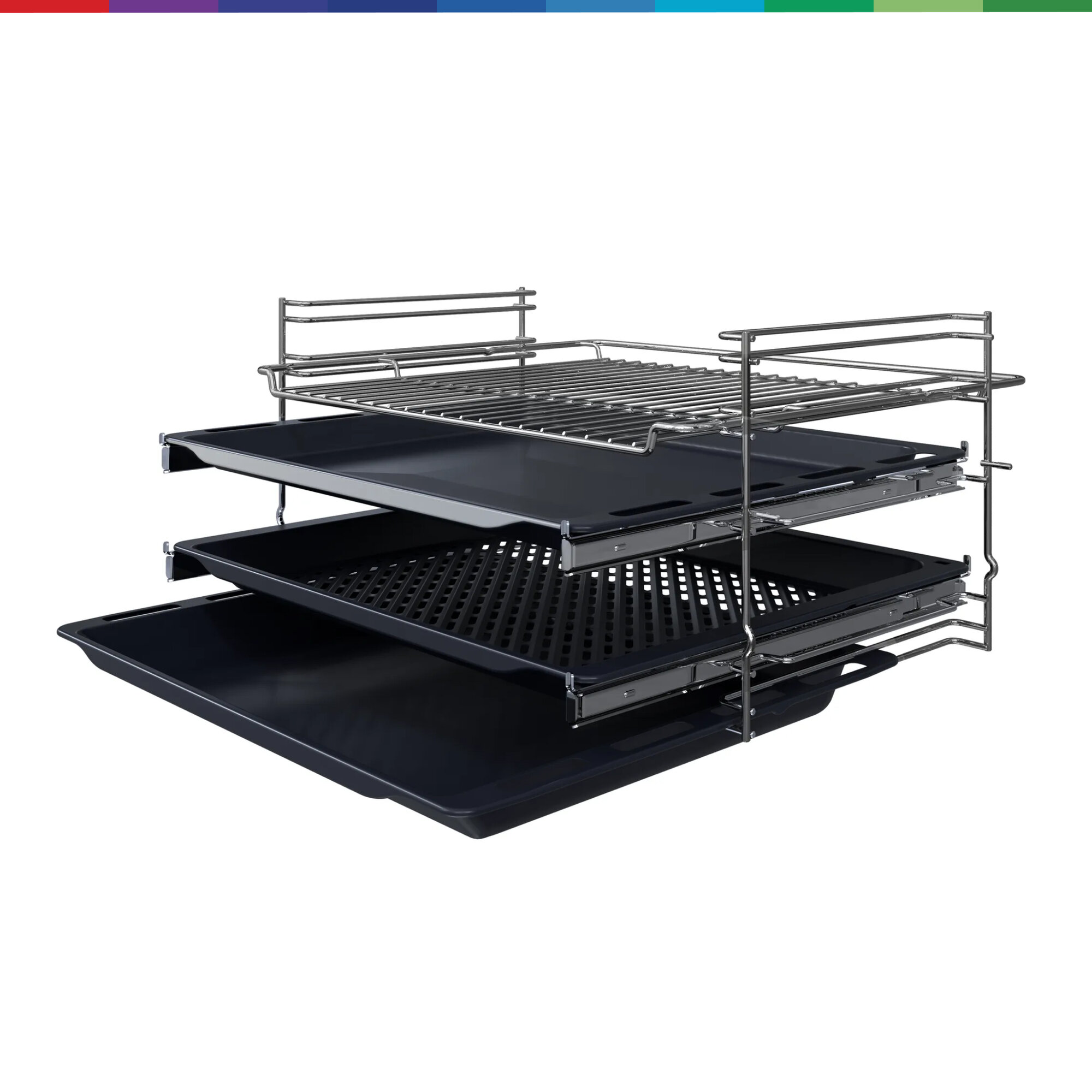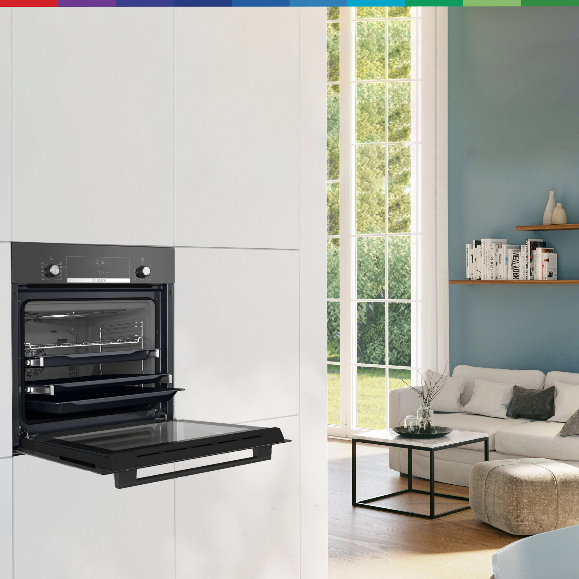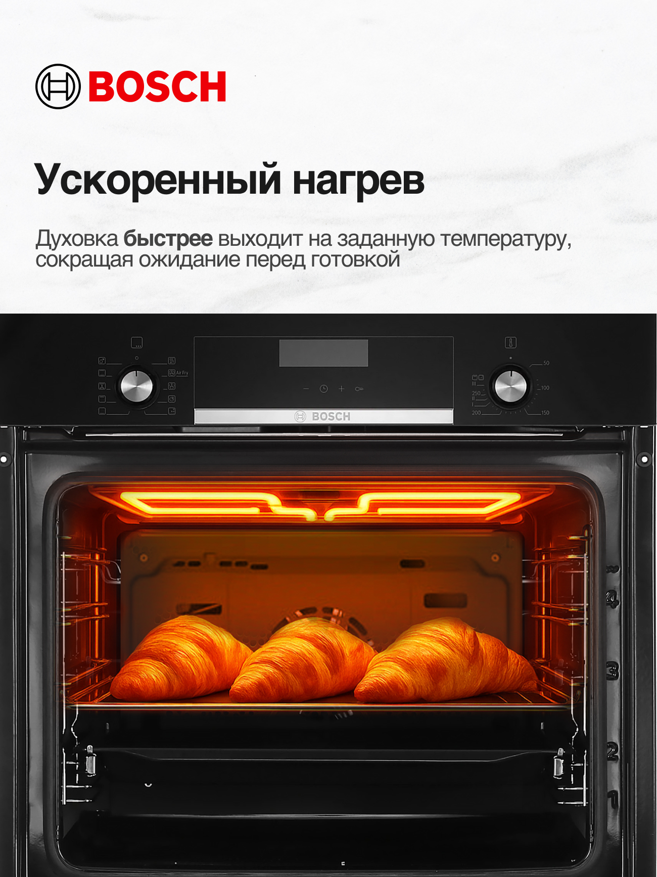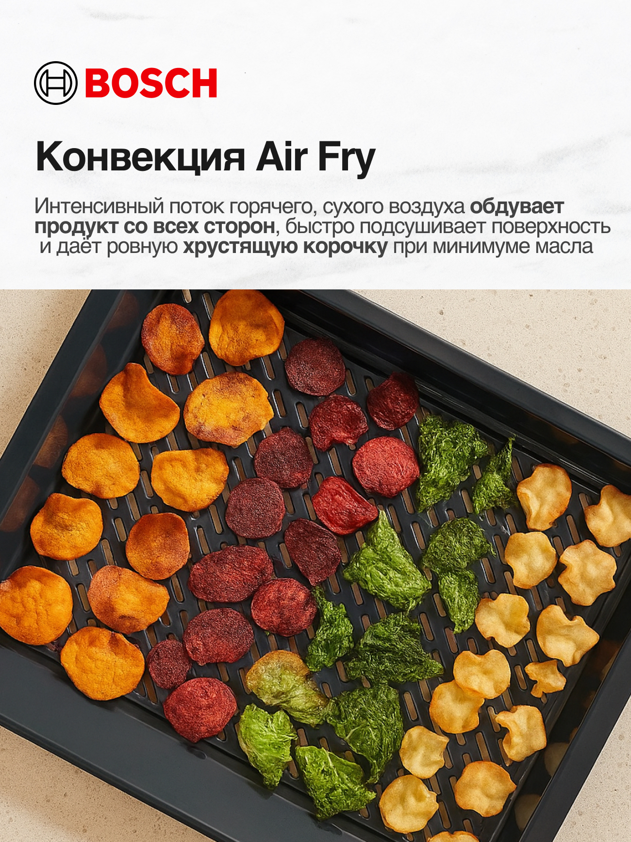 Страна производства: Турция. Товар новый в заводской упаковке. Духовой шкаф Bosch HBJ558YB3Q — это высококачественное устройство, изготовленное из нержавеющей стали, которое сочетает в себе элегантный дизайн и передовые технологии. Серия Serie | 6 отличается своими строгими линиями и современным видом, который прекрасно впишется в любой интерьер. Сенсорные поворотные утапливаемые элементы управления и LCD дисплей добавляют устройству утонченности и позволяют легко управлять всеми функциями. С вместимостью 66 литров, этот духовой шкаф предлагает достаточно пространства для приготовления различных блюд. Его размеры составляют 59.5 см в высоту, 59.4 см в ширину и 54.8 см в глубину, что делает его идеальным для встраивания в нишу размером 57.5-59.7×56-56.8×55 см. Устройство обладает 8 режимами нагрева и диапазоном температур от 50 до 275 градусов, что позволяет выбрать наиболее подходящий режим для каждого блюда. С помощью функции 3D-горячего воздуха и горячего воздуха Gentle можно равномерно распределить тепло внутри шкафа, обеспечивая идеальные результаты приготовления. Особенностью модели является пиролитическая система очистки, которая обеспечивает безупречную чистоту без необходимости трудоемкого ручного труда. Внутреннее галогенное освещение и трехслойное остекление дверцы обеспечивают отличную видимость внутри шкафа во время приготовления. Дверца устройства оснащена амортизатором SoftClose, который обеспечивает мягкое и тихое закрытие. Для безопасности детей предусмотрена специальная блокировка. В комплекте с духовым шкафом идут комбинированная решетка, эмалированный противень, универсальный противень, пригодный для пиролиза, и противень для гриля.