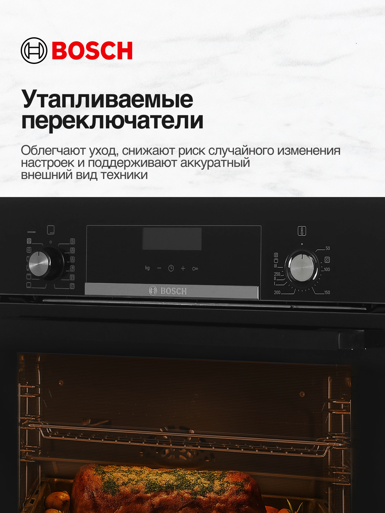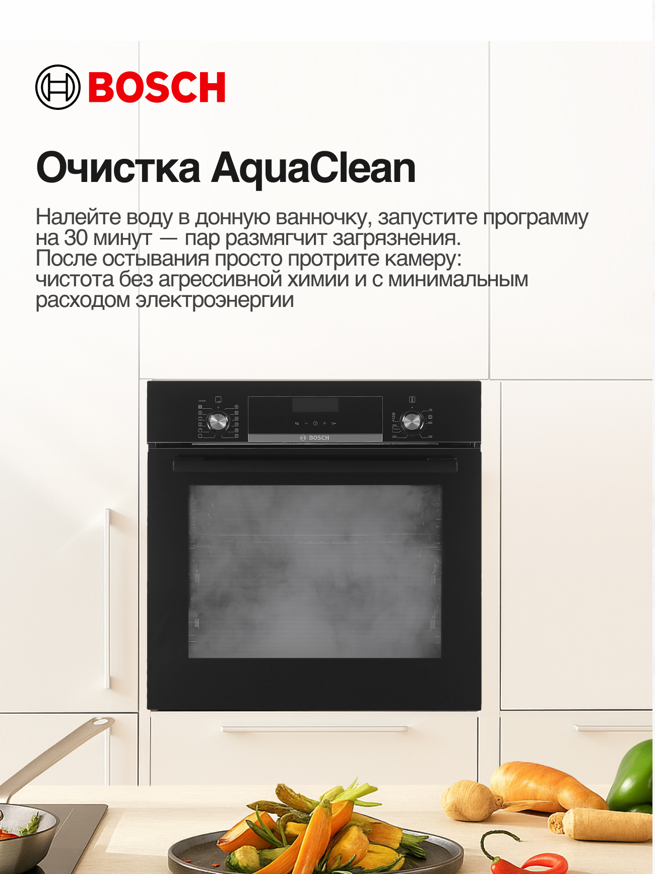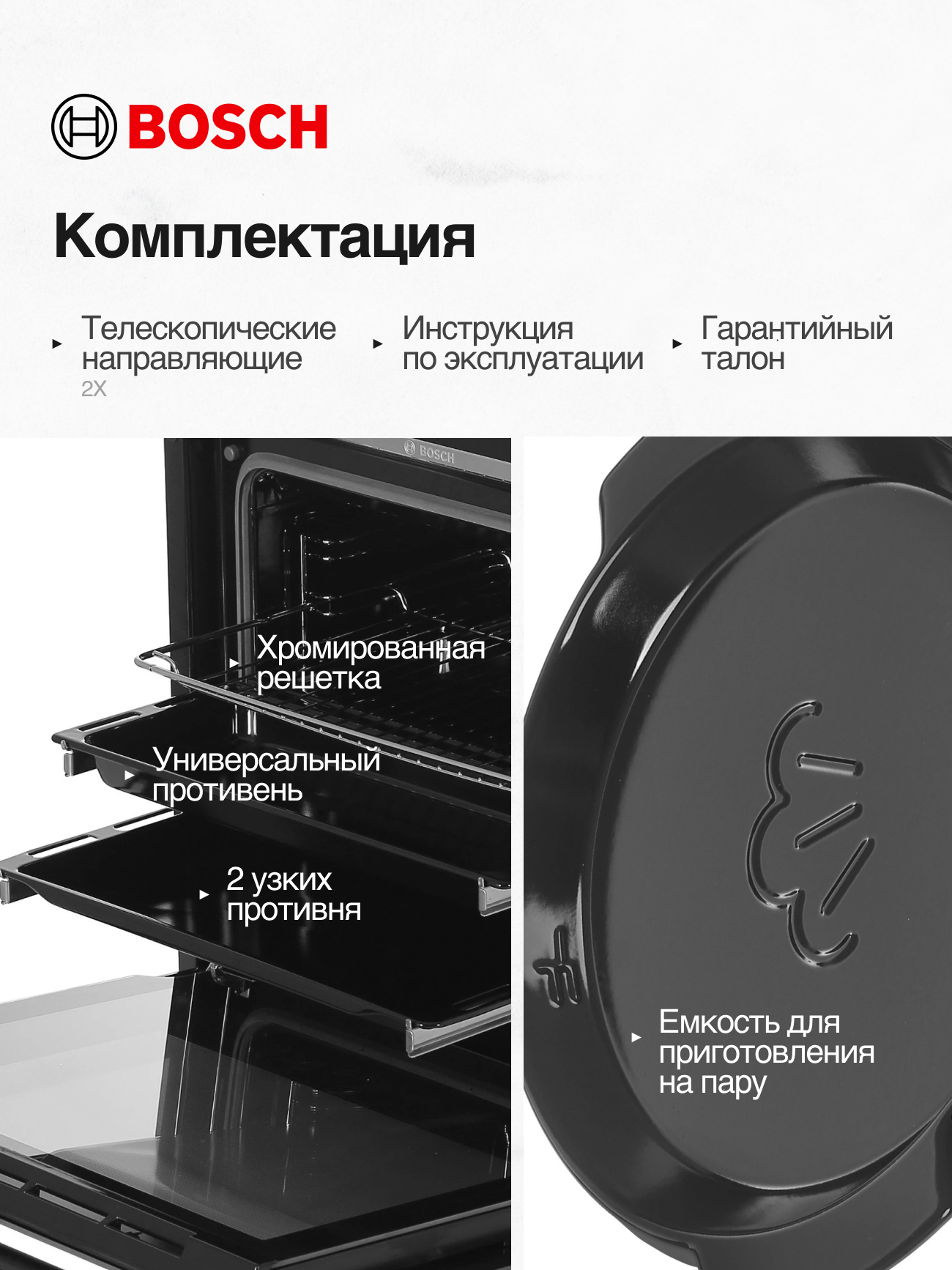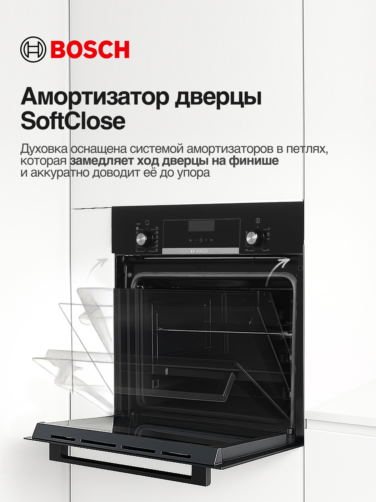 Духовой шкаф Bosch HIJ517YB0R, приготовление на пару, телескопические направляющие, доводчик двери, AutoPilot, 66 литров