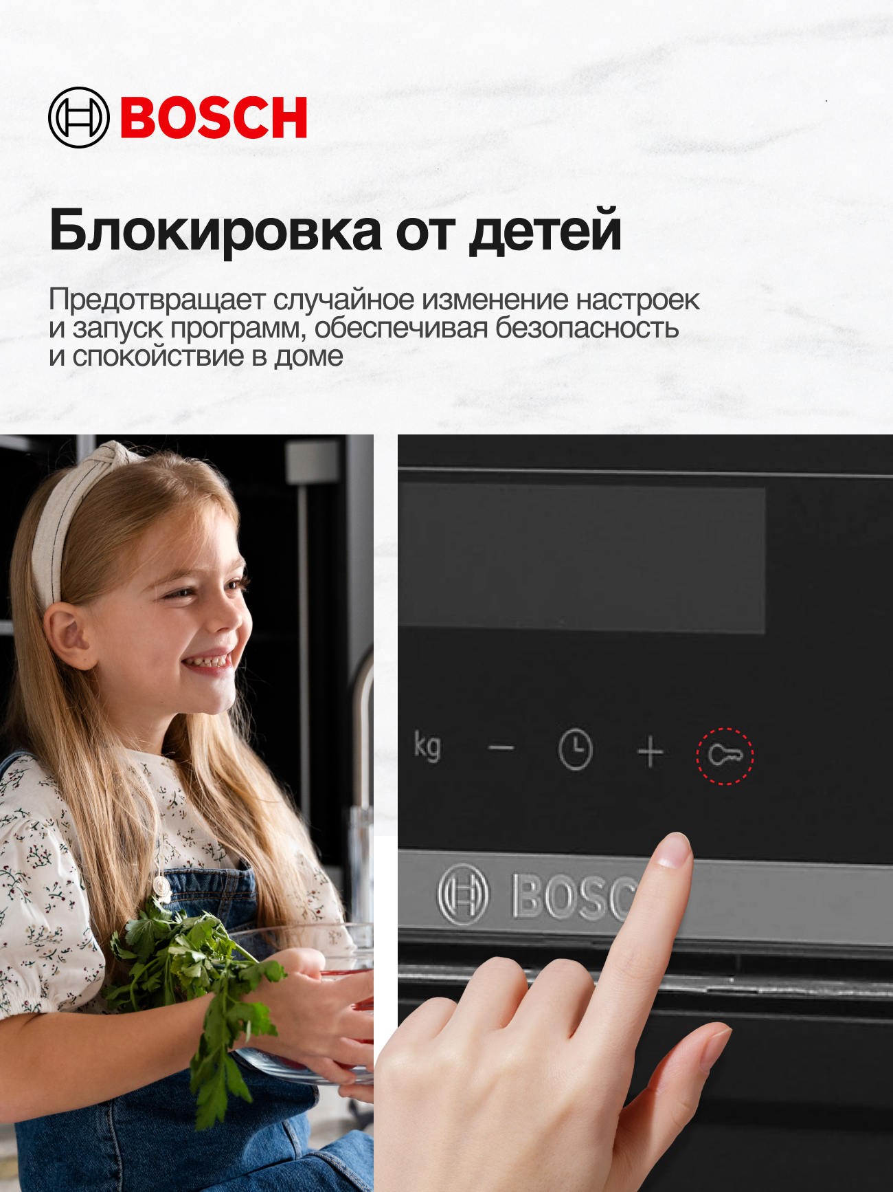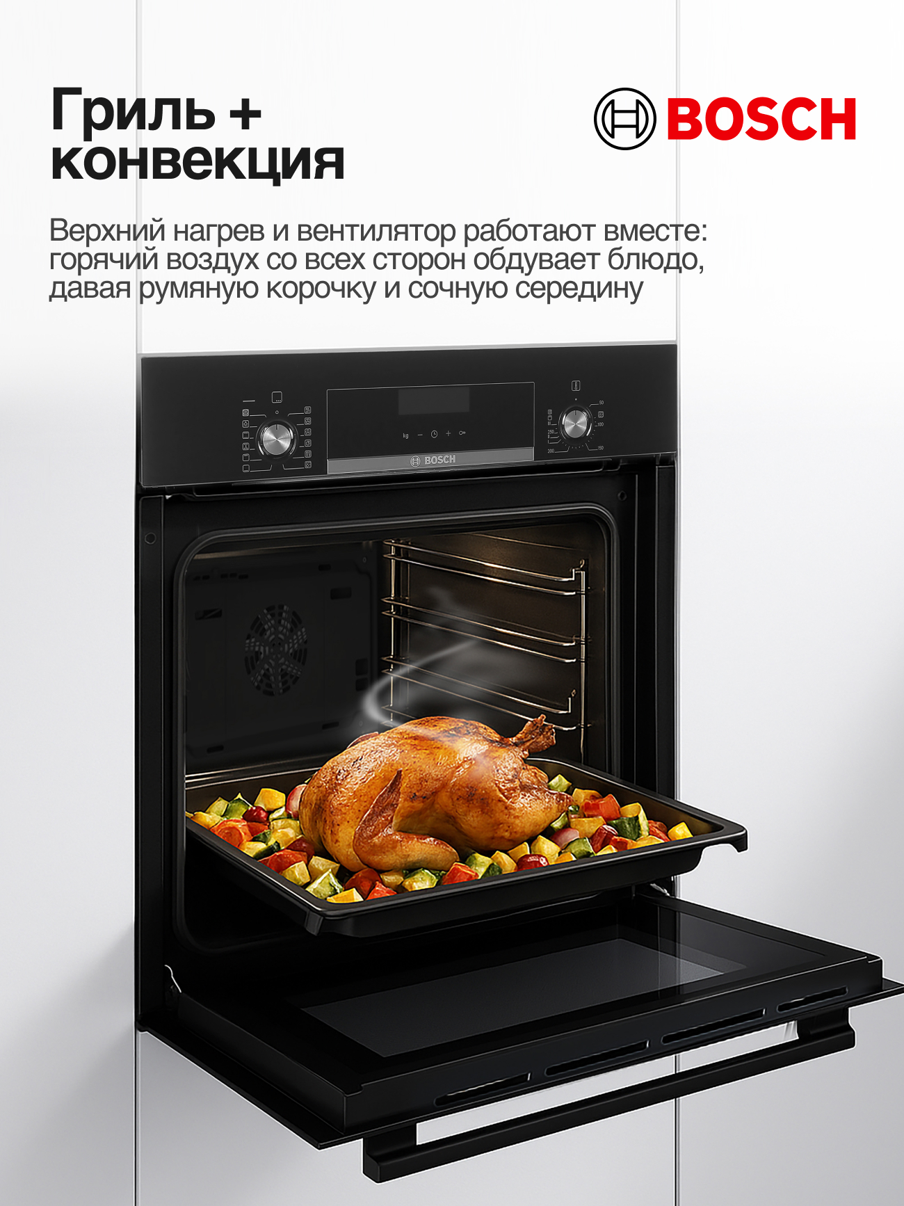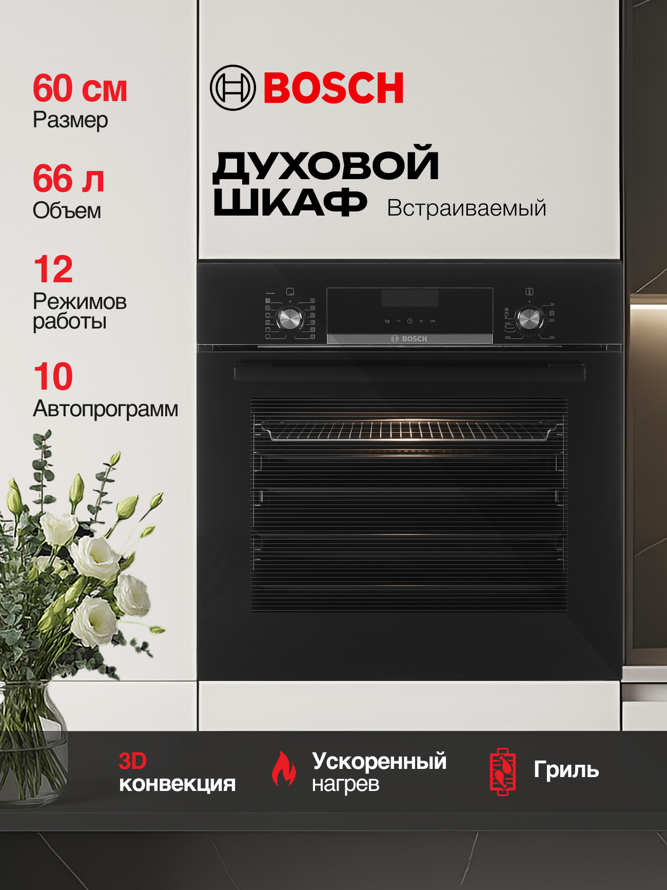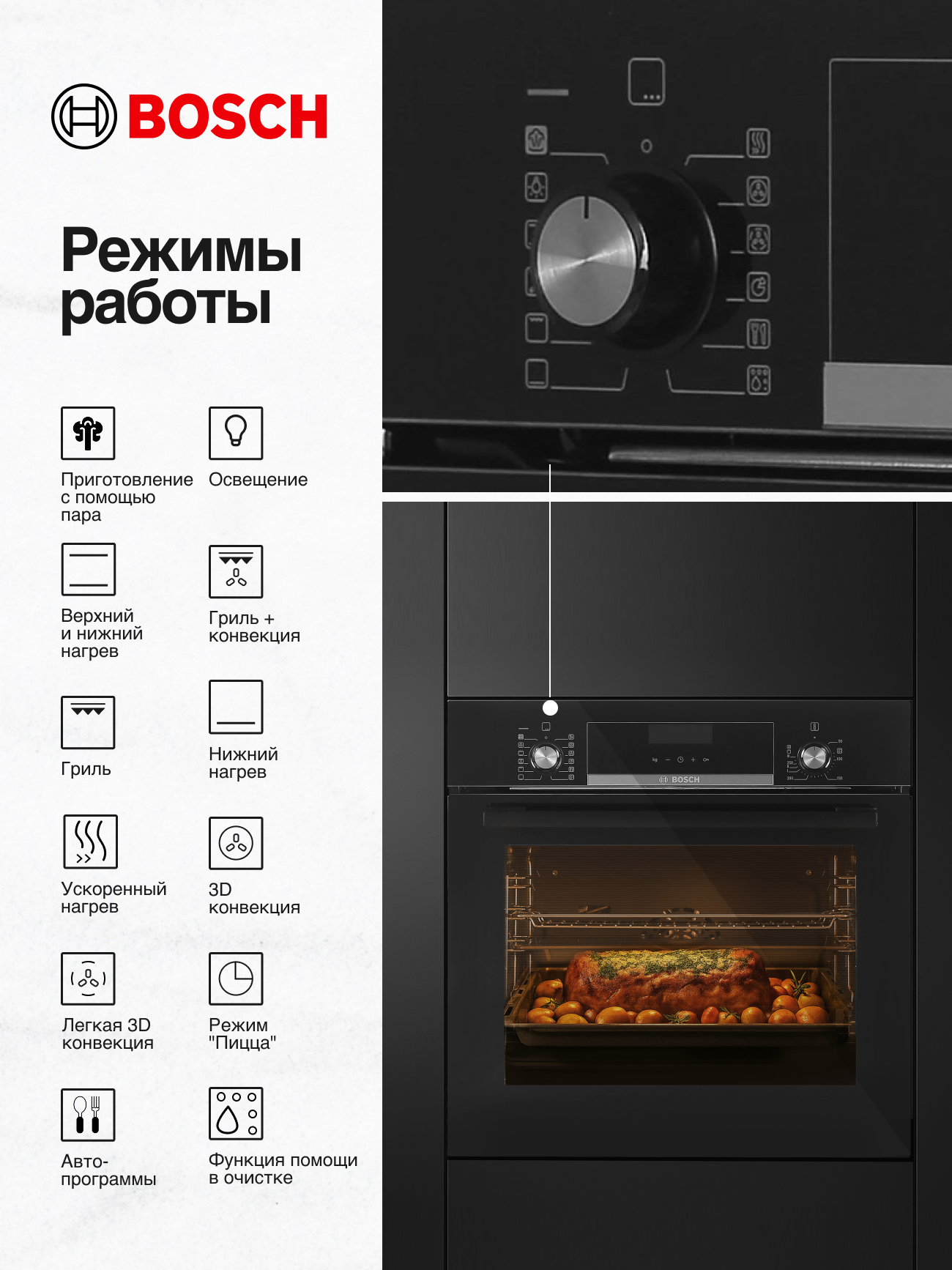 Духовой шкаф Bosch HIJ517YB0R, приготовление на пару, телескопические направляющие, доводчик двери, AutoPilot, 66 литров