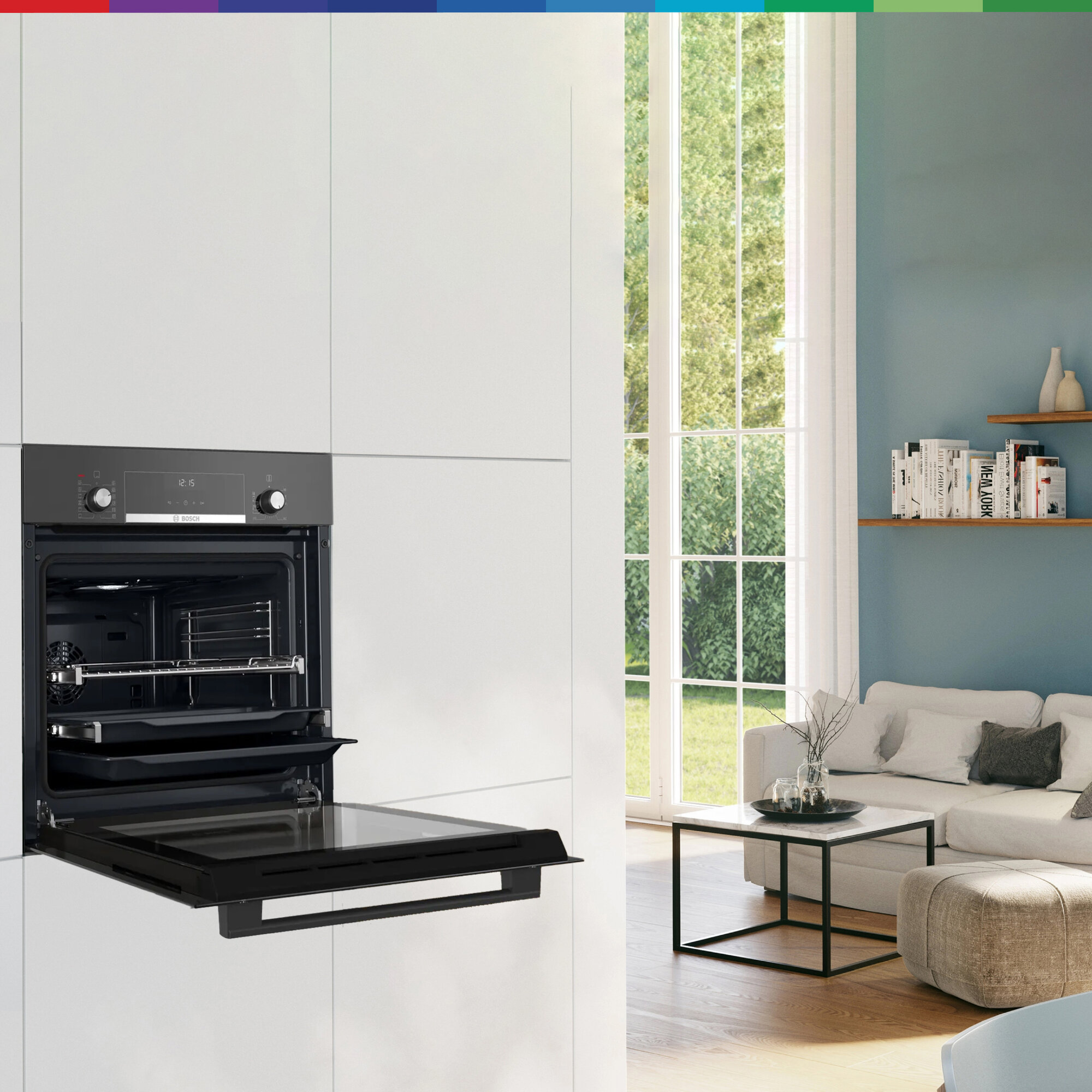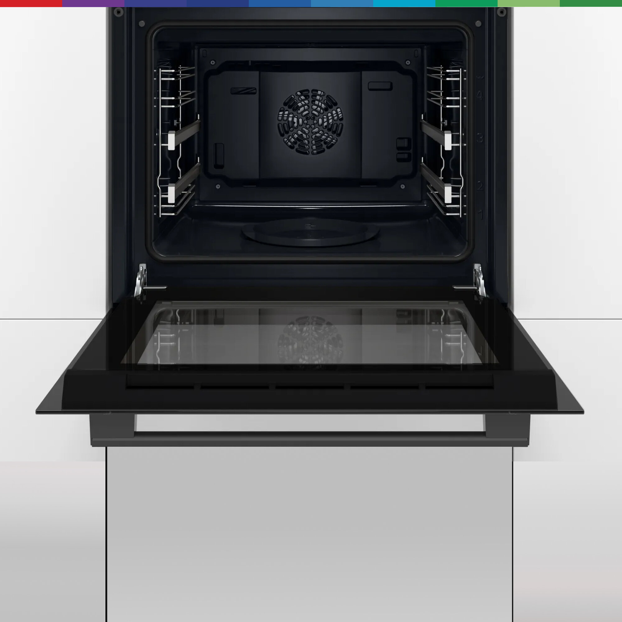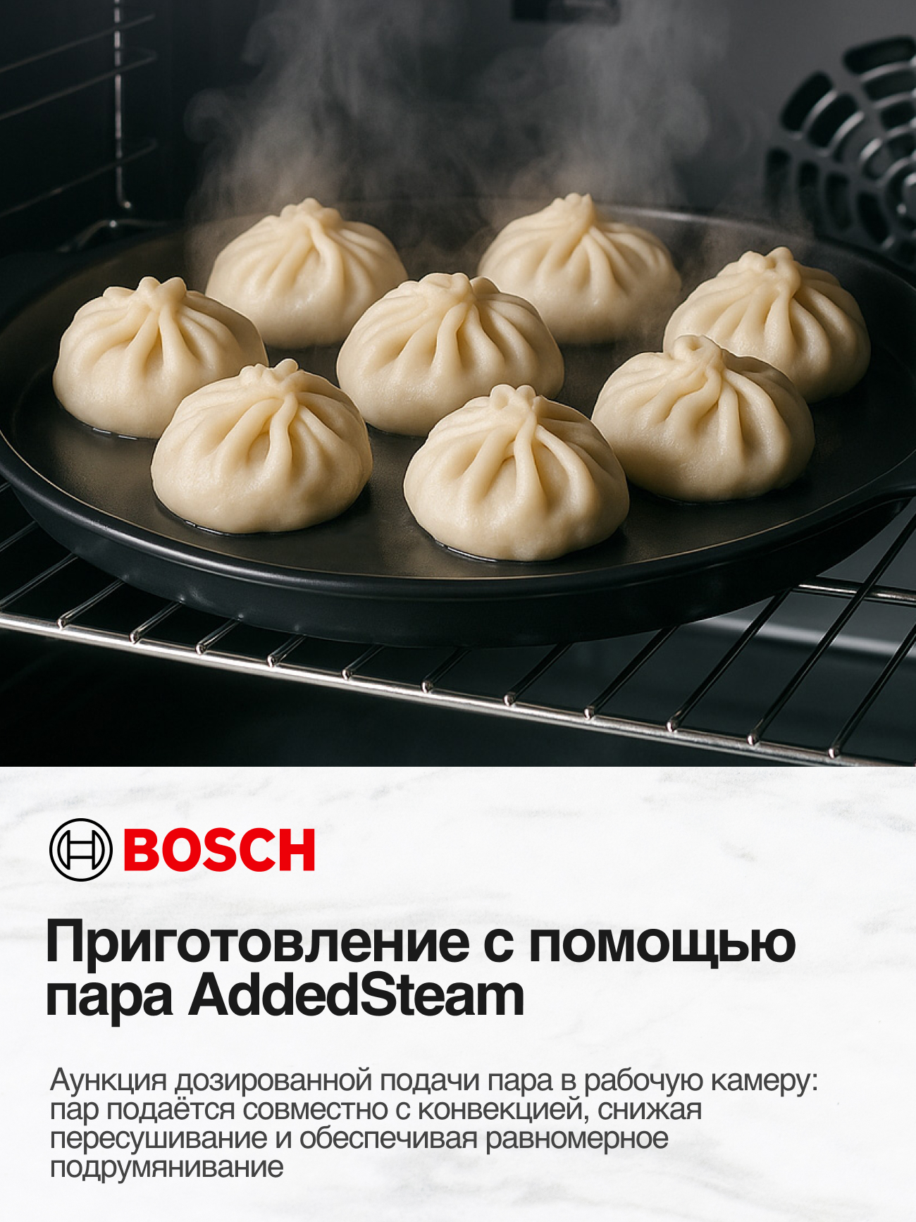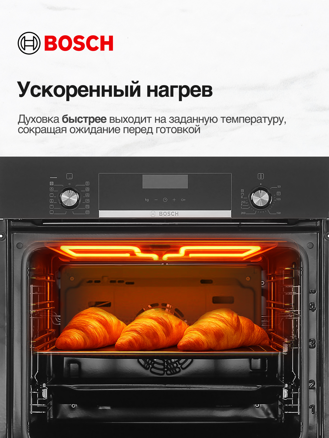 Духовой шкаф Bosch HIJ517YB0R, приготовление на пару, телескопические направляющие, доводчик двери, AutoPilot, 66 литров