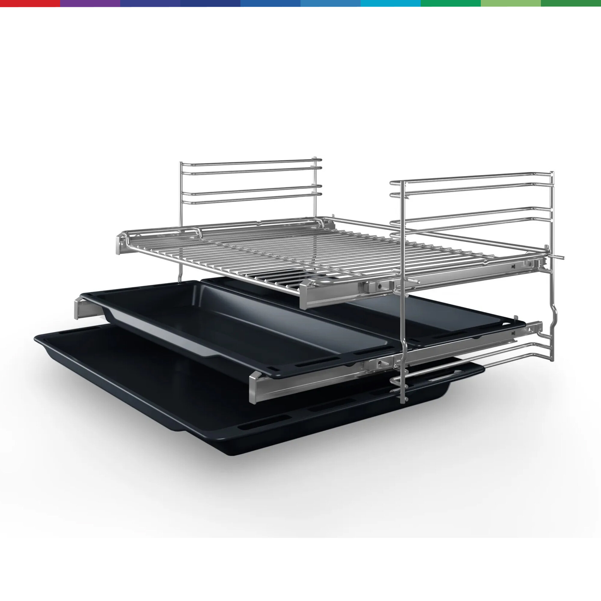 • 2-ступенчатые телескопические направляющие: для безопасной и легкой установки и извлечения противней.