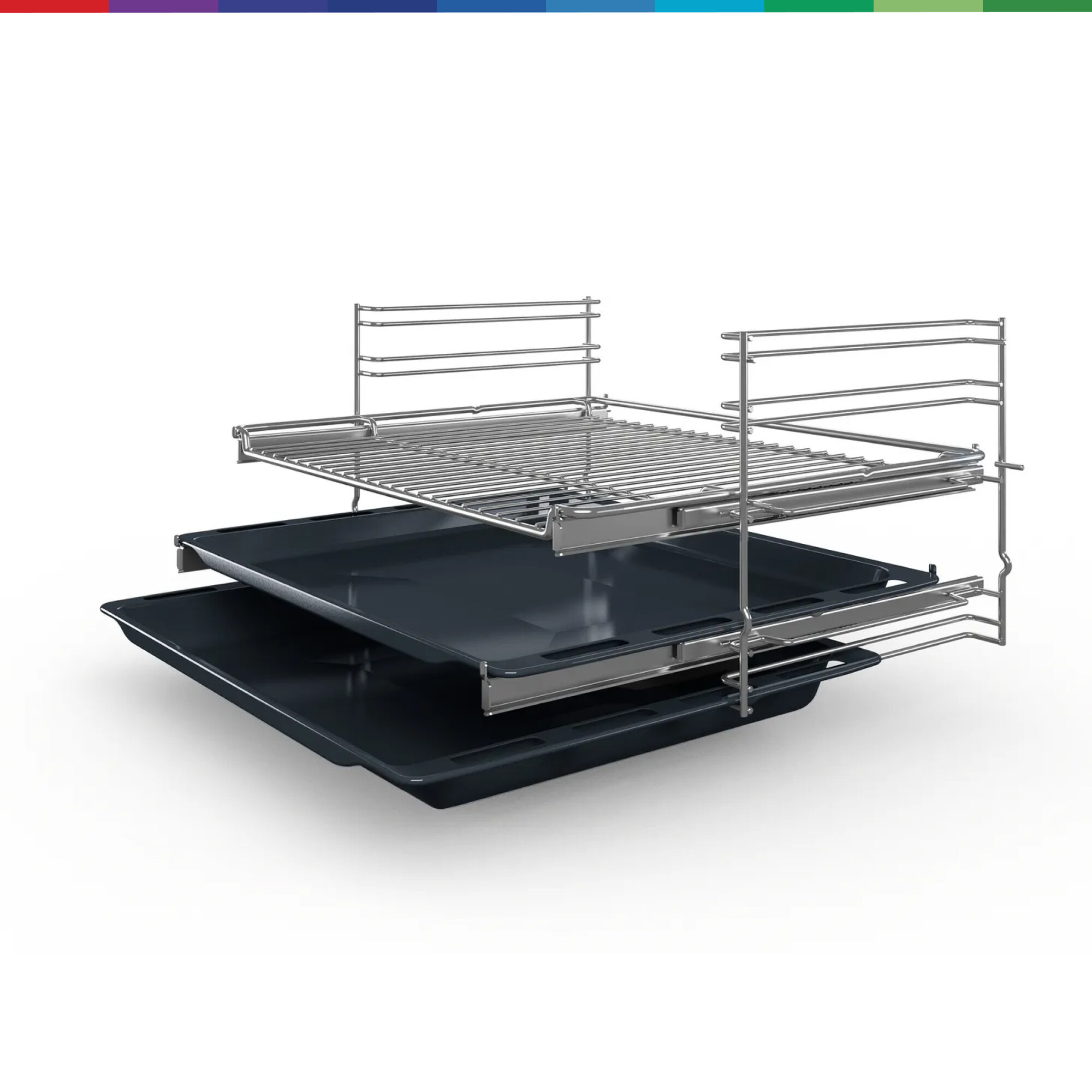Страна производства: Турция. Товар новый в заводской упаковке. Встроенный духовой шкаф с 3D-воздухом: достигайте идеальных результатов выпечки и жарки на трех уровнях одновременно. • Контроль с LСD-дисплеем, белый: простота в использовании благодаря прямому доступу к дополнительным функциям. • Выдвижные элементы управления: Облегчают чистку передней панели печи и придают ей элегантный вид. • Eco Clean Direct: легкая очистка благодаря покрытию, которое расщепляет жир во время выпечки. • Откидная дверца с функцией Soft Close: дверца духовки закрывается особенно мягко и тихо. • 2-ступенчатые телескопические направляющие: для безопасной и легкой установки и извлечения противней.Тип духовки / системы подогрева • Духовой шкаф с 8 методами нагрева: 3D Hotair, Стандартный нагрев, Hotair-гриль, Настройка для пиццы, Нагрев снизу, Разморозка, Hotair-деликатный режим, Регулируемый гриль по всей ширине • Диапазон температур 50 °C - 275 °C • Объем камеры: 66 л • двухуровнеые телескопические рейки для полок, стандартное выдвижение • Поворачиваемые ручки, выдвижные элементы управления, черный • EcoClean Direct: покрытие верха, задней и боковых панелей • Программа EcoClean Direct • Основная внутренняя дверца: Полностью стеклянная внутренняя дверца Комфорт: • Элементы управления на ЖК-дисплее (белый) • Электронные часы • Дверца, открывающаяся вниз • Быстрый предварительный нагрев • Галогенное внутреннее освещение • Встроенный охлаждающий вентилятор • Низкая температура дверцы • Замок от детей • Индикатор остаточного тепла Дополнительные принадлежности: • 1 x комбинированная решетка, 1 x эмалированный противень для выпечки, 1 x противень для гриля, 1 x универсальный противень Техническая информация • Длина сетевого кабеля: 100 см • Номинальное напряжение: 220 - 240 В • Общая подключенная электрическая нагрузка: 3.3 кВт • Класс энергоэффективности (согласно EU Nr. 65/2014): A(в диапазоне классов энергоэффективности от A+++ до D) • Энергопотребление за цикл в стандартном режиме:0.98 кВт⋅ч • Энергопотребление за цикл в режиме конвекции с вентилятором:0.79 кВт⋅ч • Количество камер: 1 Источник тепла: электрический Объем камеры:66 л Размер: • Размер устройства (ВxШxГ): 595 мм x 594 мм x 548 мм • Размер ниши (ГxШxВ): 575 мм - 597 мм x 560 мм - 568 мм x 550 мм • “Пожалуйста, учитывайте размеры для встраивания устройства, предоставленные в установочном чертеже" • Рекомендовано выбирать дополнительные устройства из Серии 6, чтобы обеспечить оптимальное сочетание внешнего вида встраиваемой техники.