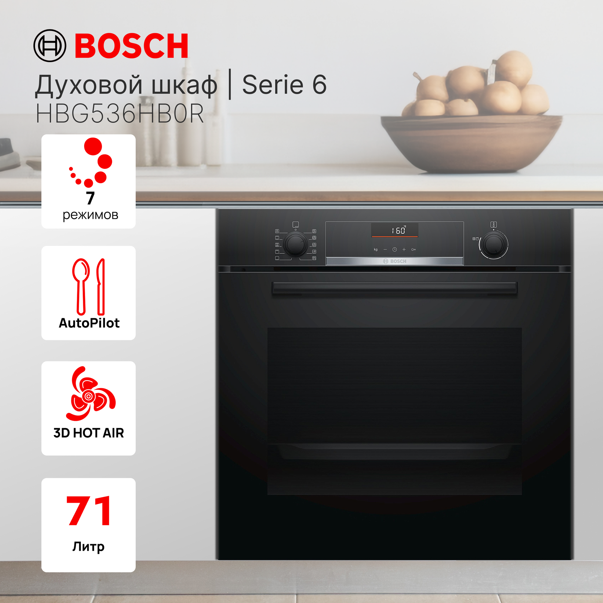 Духовой шкаф Bosch Serie6, черный, HBG536HB0R, 71 литр, 12 режимов, конвекция