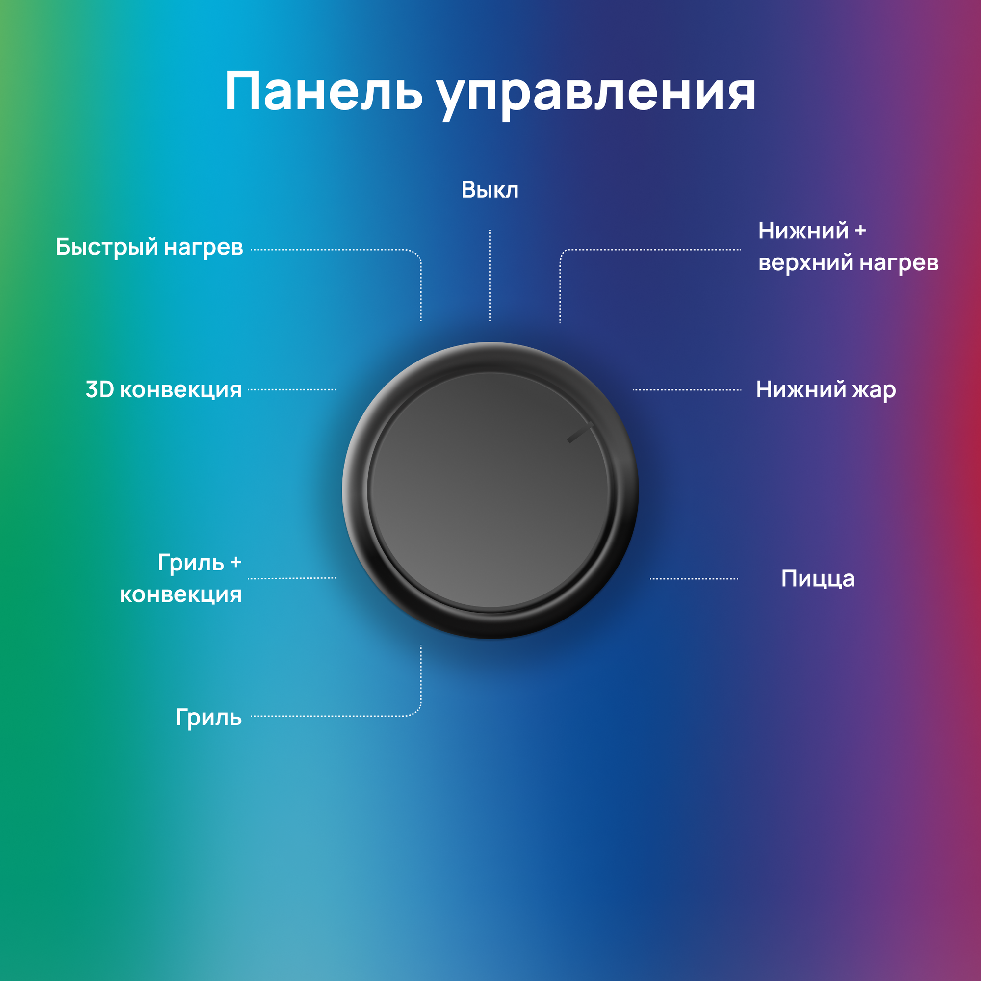 Гриль, размораживание, гриль + конвекция, Конвекция, нижний нагрев, верхний нагрев, Нижний + верхний нагрев, верхний нагрев + конвекция