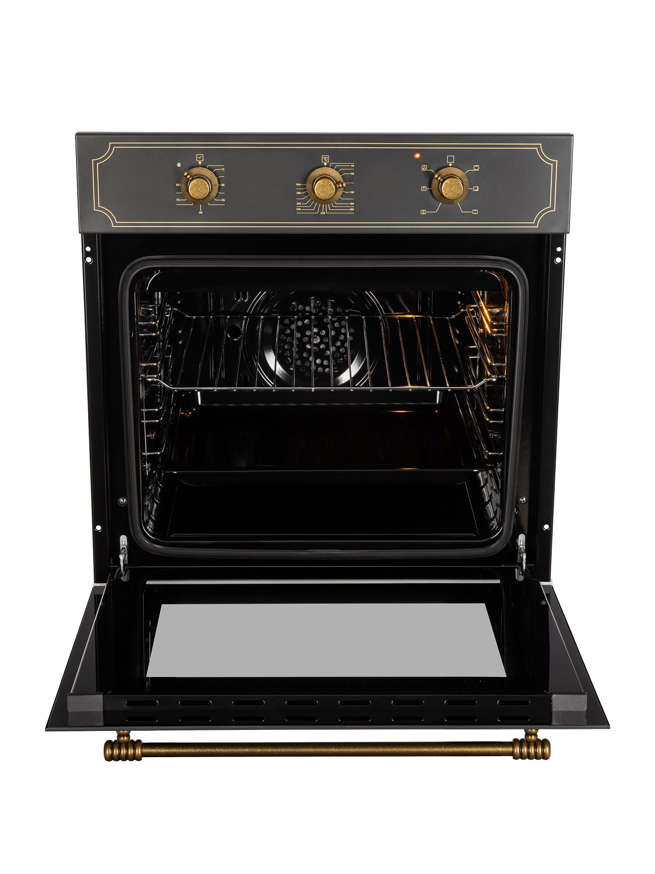 Дополнительная информация: Проволчные направляющие; Дверца духовки: откидная; Объём духовки: 70 л; Таймер: есть; Очистка духовки: очистка паром, традиционная; Размеры (ВхШхГ): 595х595х577 мм; Число стекол дверцы: 2; Часы: нет; Цвет корпуса: черный; Конвекция: Да; Максимальная температура: 280 °C; Потребляемая мощность: 2250 Вт; Класс энергоэффективности: A; Размер ниши: 560х650х600 мм; Ширина встраивания: 560 мм; Внутреннее покрытие: Эмаль; Режимы работы: Верхний нагрев, нижний нагрев, верхний и нижний нагрев, верхний и нижний нагрев с конвекцией, верхний нагрев с конвекцией, разморозока; Количество режимов работы: 6; Функционал духовки: Конвекция; Направление открывания дверцы: Откидная вниз; Подсветка духовки: да; Тип управления: поворотный механизм