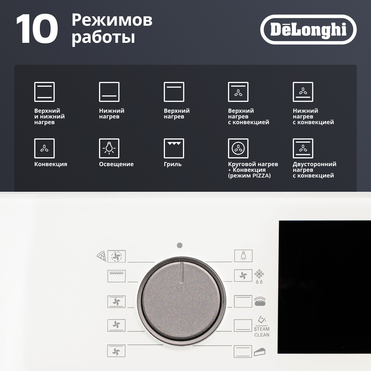 3D-горячий воздух, верхний/нижний нагрев, щадящий горячий воздух, Air Fry, щадящий верхний/нижний нагрев, гриль с циркуляцией воздуха, гриль для большой площади, гриль для малой площади, режим пиццы, разморозка, нижний нагрев