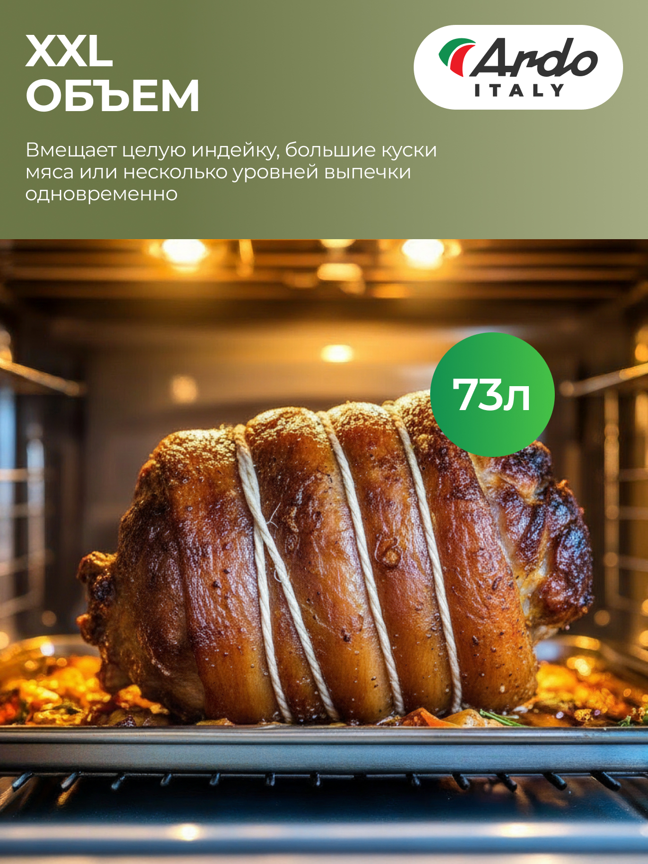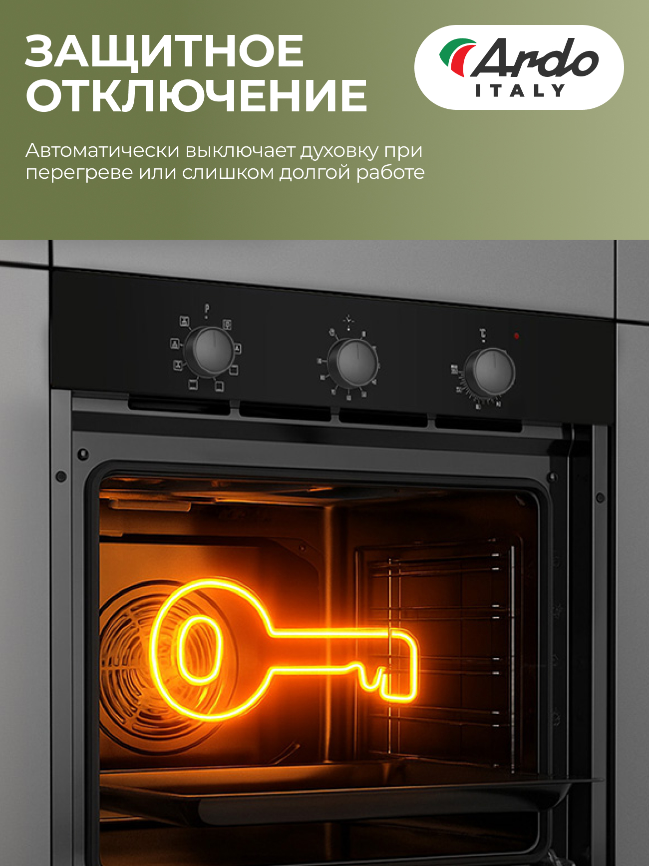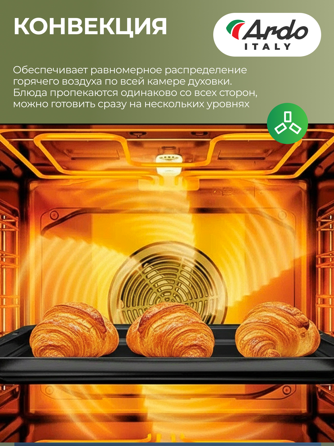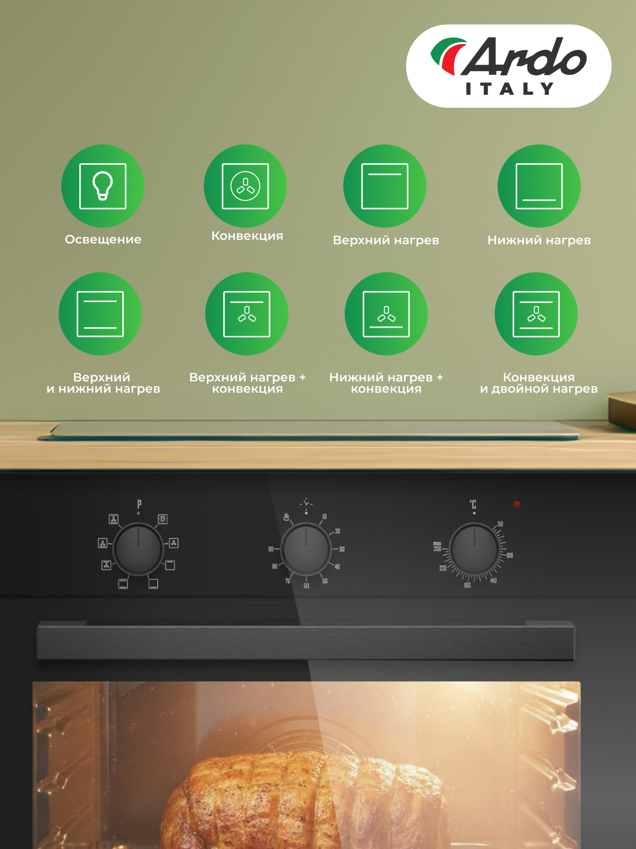 Духовой электрический шкаф Ardo BO18MB2, 73 литров, 8 режимов, конвекция, 2 стекла дверцы