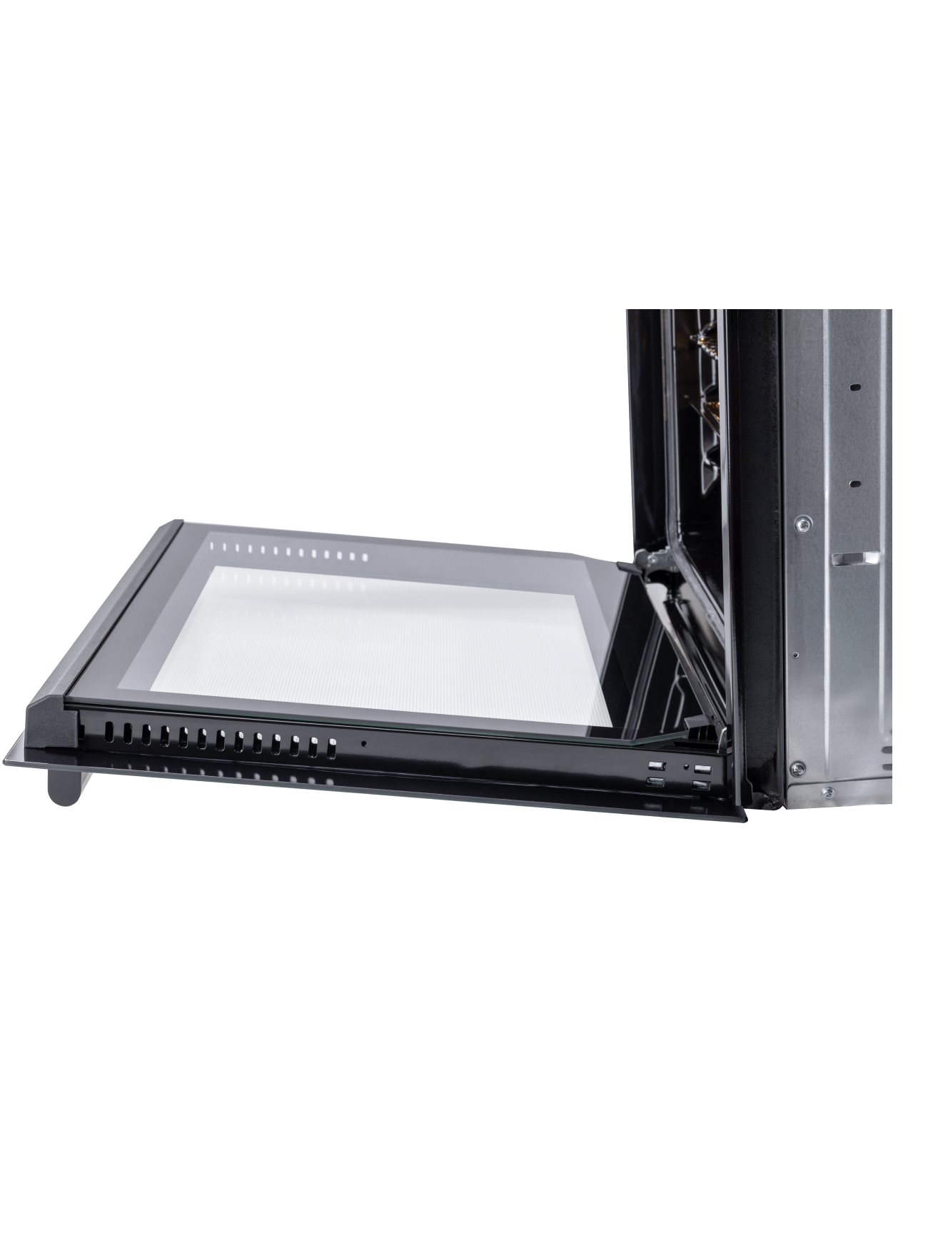 Дверцы духового шкафа имеют 2 стеклянные панели, что обеспечивает отличную теплоизоляцию и безопасность при использовании. Благодаря этому вы можете наблюдать за процессом готовки, не открывая дверцу. Этот духовой шкаф станет надежным помощником в вашем кулинарном творчестве, помогая создавать идеальные блюда для всей семьи.