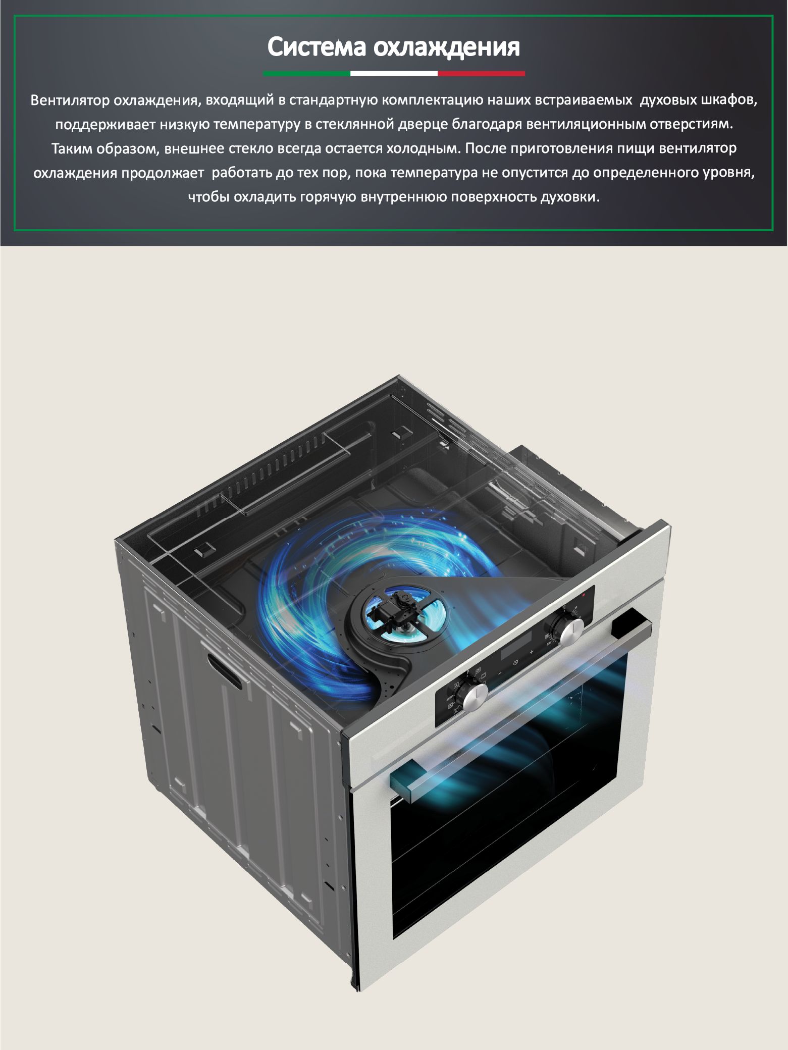 Электрический встраиваемый духовой шкаф – это универсальное решение для вашей кухни, позволяющее легко готовить разнообразные блюда. Объем в 79 литров предоставляет достаточно пространства для запекания крупной птицы, запеканок и многих других угощений, а наличие 8 режимов приготовления открывает широкий спектр кулинарных возможностей. Легко можно настроить оптимальные условия для выпекания хлеба, приготовления мяса или запекания овощей.  Устройство оснащено конвекцией, что обеспечивает равномерное прогревание вашей пищи, позволяя достичь идеального результата. Удобные хромированные решетчатые направляющие делают процесс извлечения блюд удобным и безопасным. Механический таймер добавляет удобство в использовании, позволяя четко контролировать время приготовления и не отвлекаться на кухне.  Дверцы духового шкафа имеют три стеклянные панели, что обеспечивает отличную теплоизоляцию и безопасность при использовании. Благодаря этому вы можете наблюдать за процессом готовки, не открывая дверцу. Этот духовой шкаф станет надежным помощником в вашем кулинарном творчестве, помогая создавать идеальные блюда для всей семьи.