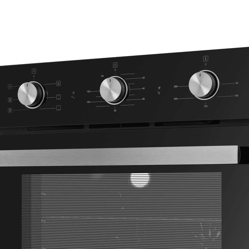 Дверца духового шкафа оснащена тройным стеклом - это гарантия медленного нагревания внешнего стекла, что создает холодный фронт и делает процесс приготовления безопасным исключая возможность ожога при касании.