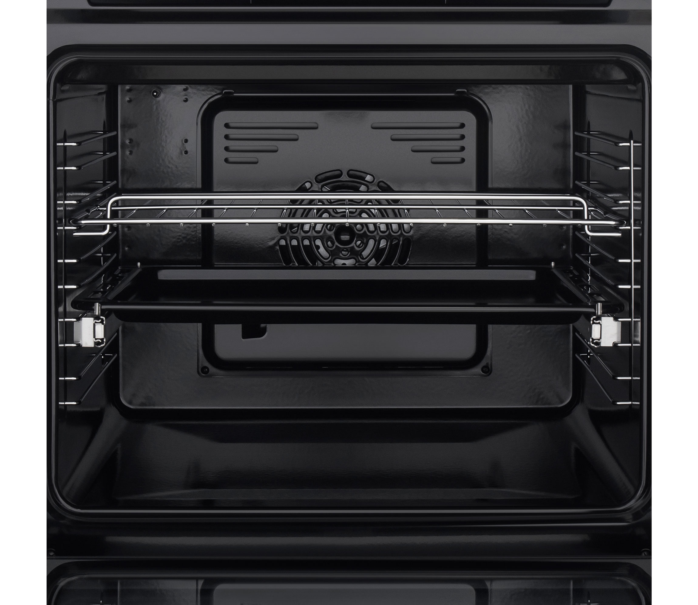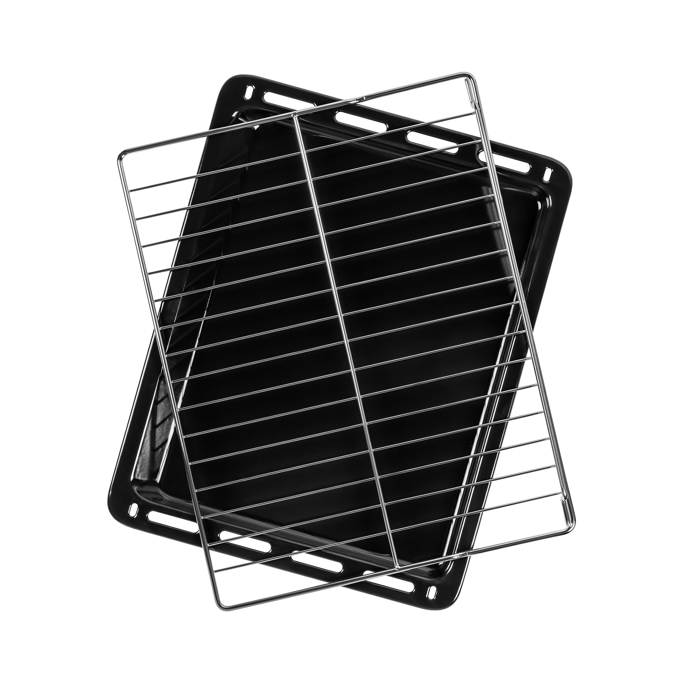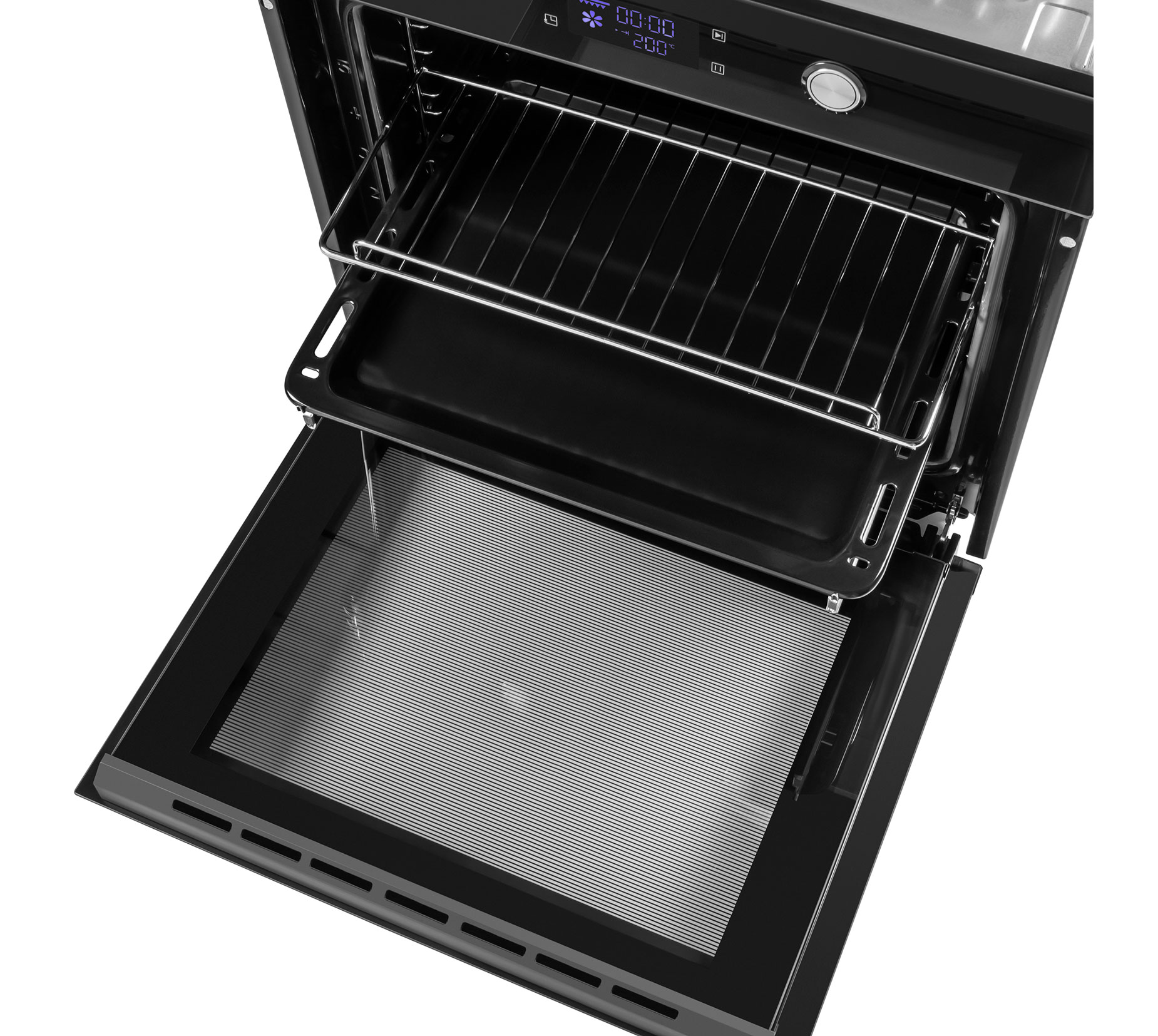 Объем 71 л при стандартной ширине 60 см позволяет готовить одновременно несколько блюд, разместив решетку или противень на одном из 6-ти уровней боковых направляющих. Одни из уровней оснащен удобными телескопическими направляющими. Внутреннее покрытие камеры выполнено из специальной легкоочищающейся эмали черного цвета.