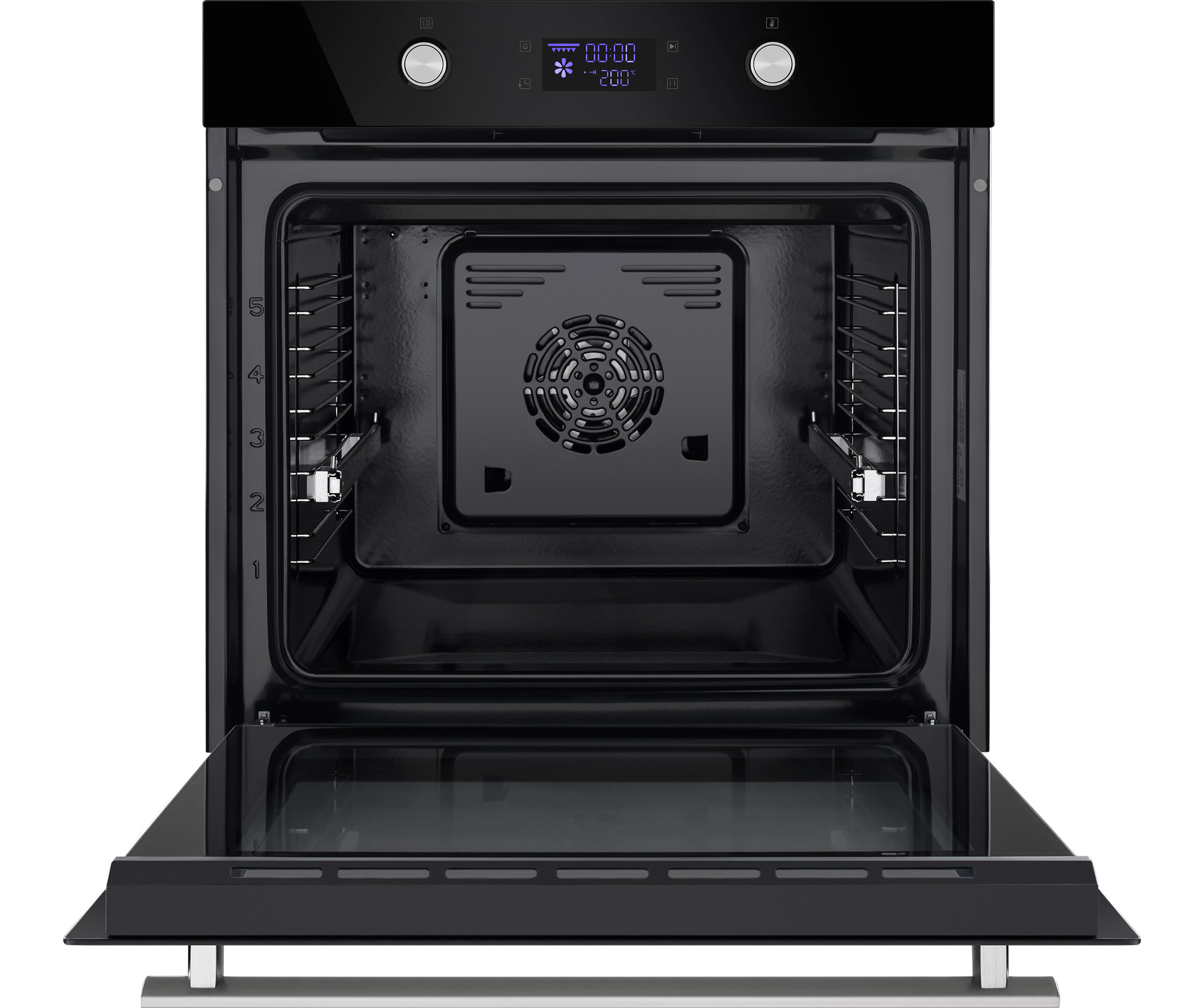 Тангенциальное охлаждение, реализованное в данной модели, минимизирует передачу тепла от духовки предметам, находящимся рядом, например мебели. Дверца состоит из 3-х стекол, что создает холодный фронт и делает процесс приготовления безопасным, исключая возможность ожога при касании.
