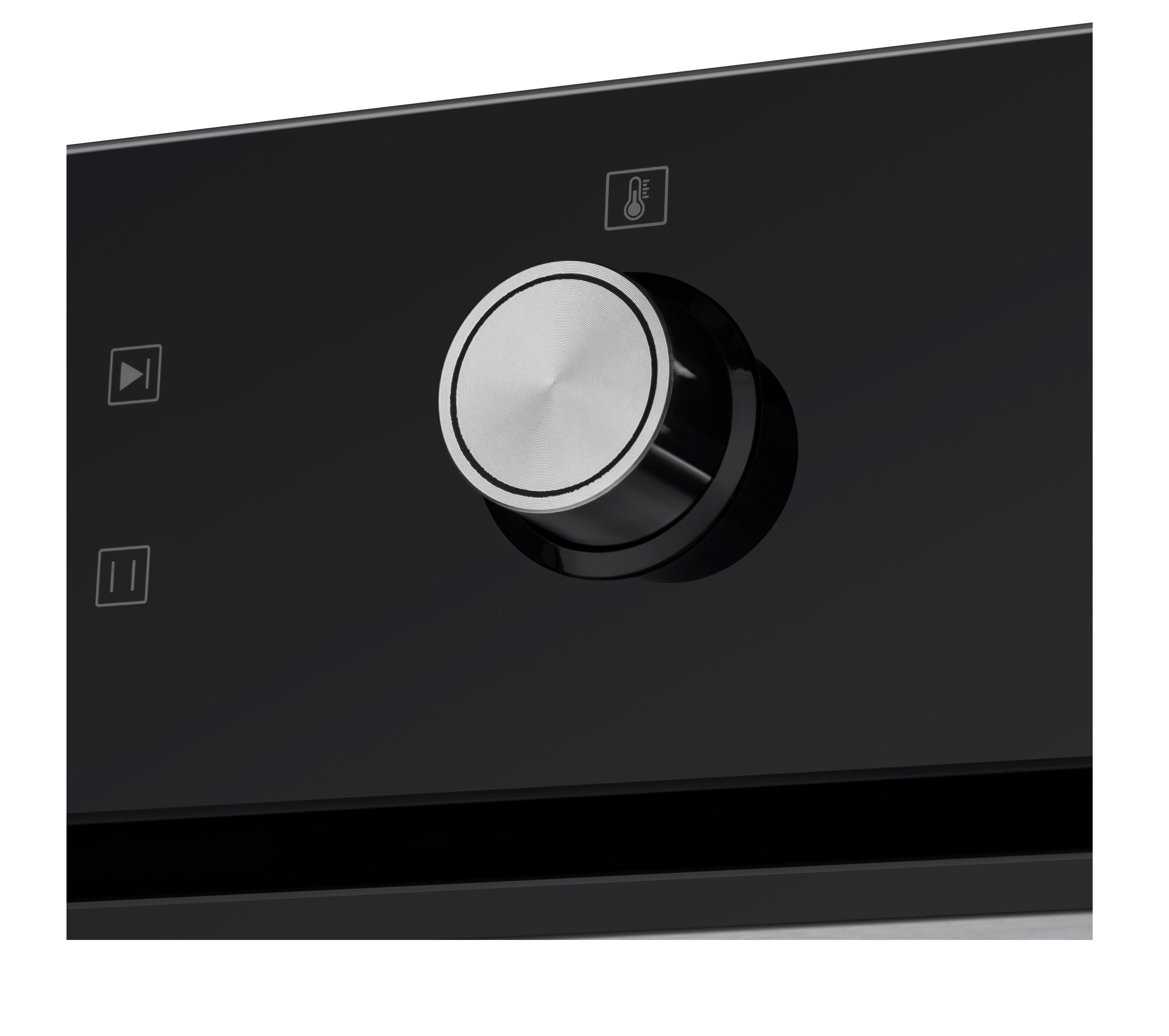 Комбинированное управление реализовано в виде сенсорного дисплея с подсветкой и поворотных ручек PUSH PULL, которые легким нажатием убираются внутрь корпуса. Можно выбрать режим работы, температуру (50°-250°C), установить таймер и блокировку от детей. В данной модели есть 9 режимов работы: традиционный нагрев, конвекционный нагрев, полный гриль, ЕСО, нижний нагрев, половинный гриль, разморозка, конвекция с грилем, освещение.