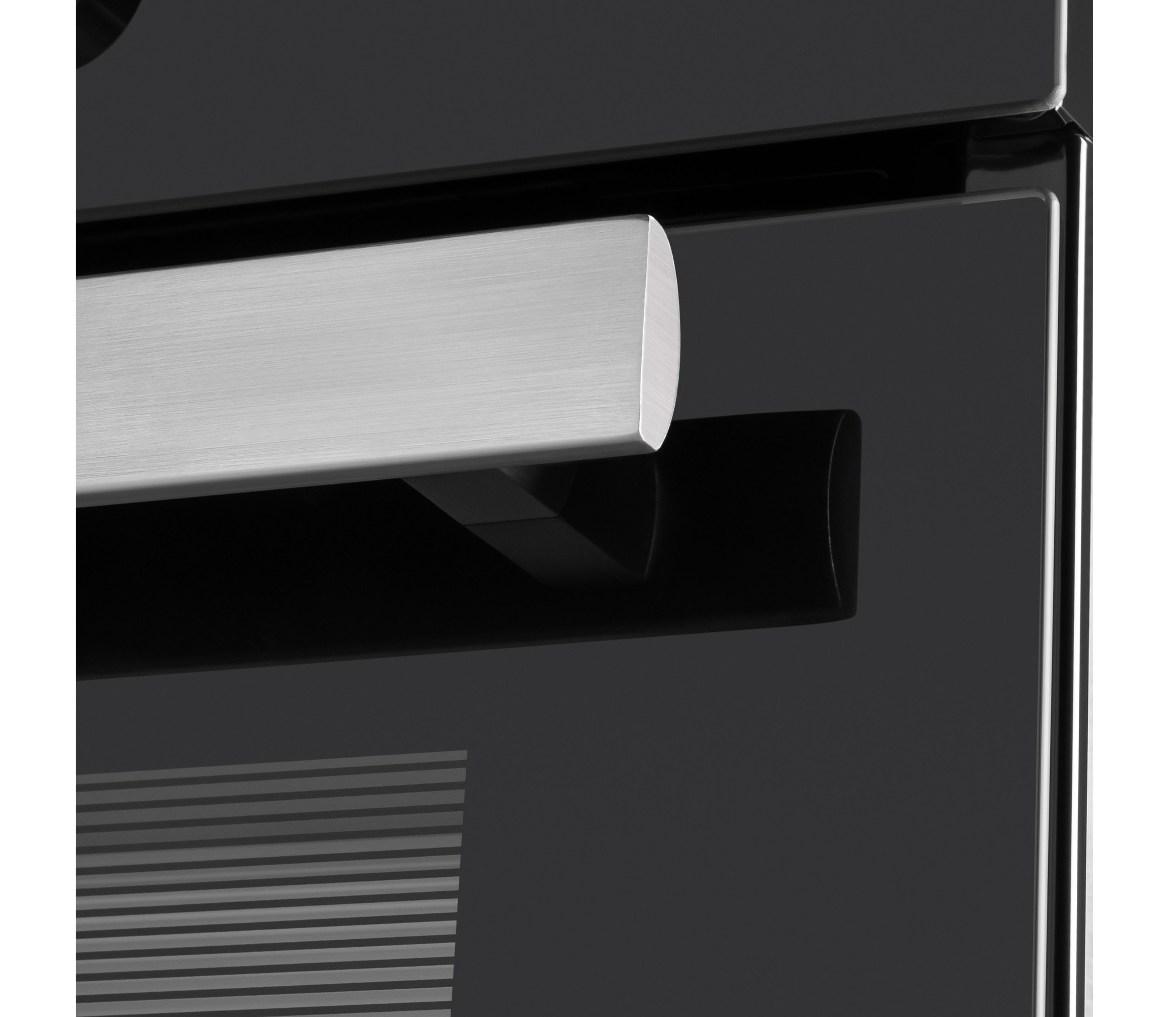 Фронтальная панель духовки выполнена из высококачественного жаропрочного тонированного стекла черного цвета. Ручка дверцы и ручки управления, сделанные из матированной нержавеющей стали, не нагреваются в процессе готовки. <br>