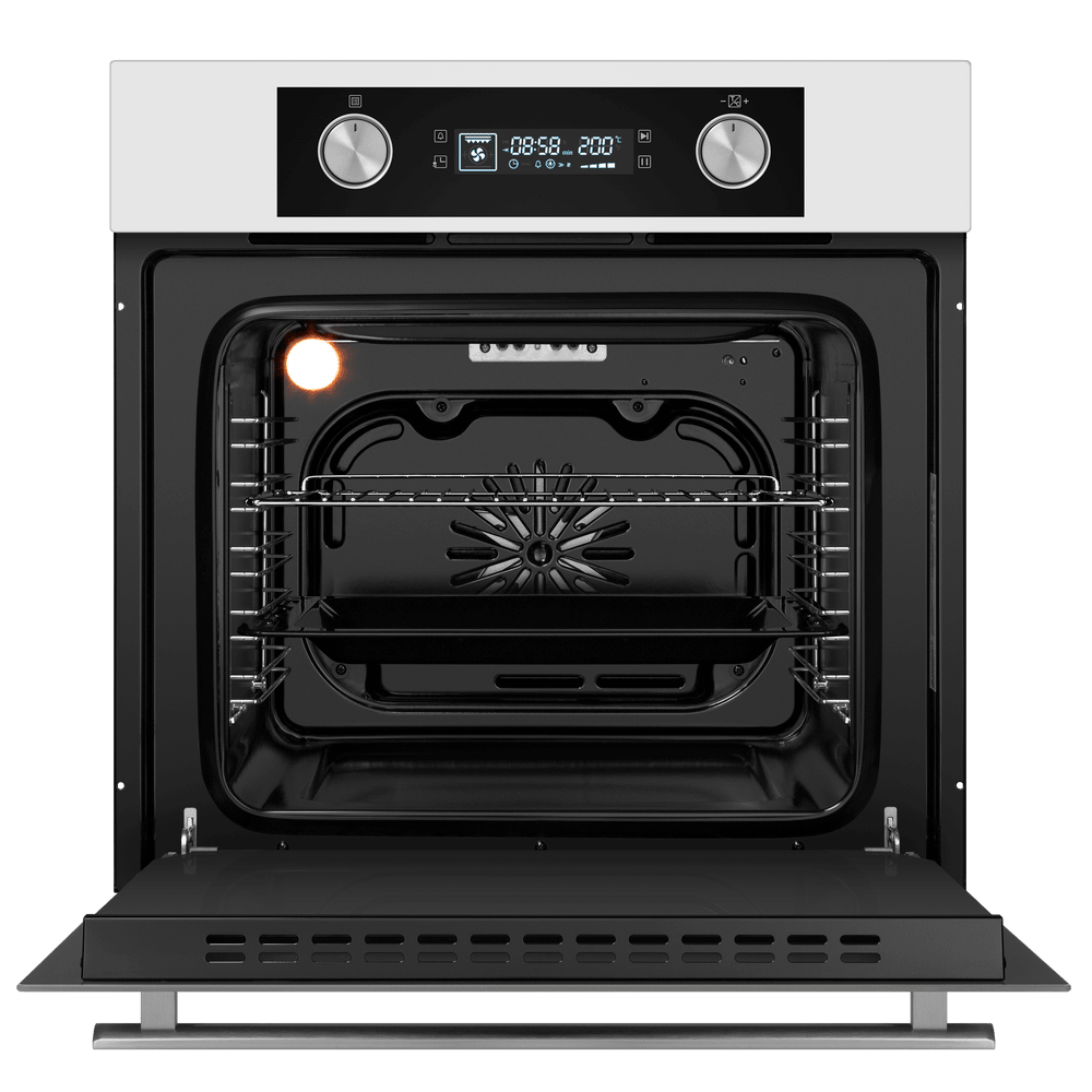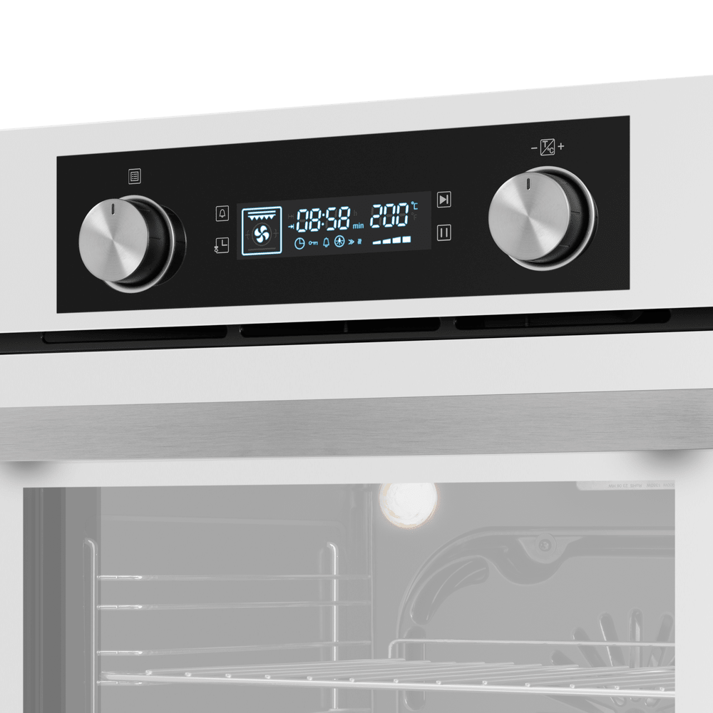 Поворотные ручки PUSH PULL в сочетании с современным сенсорным управлением обеспечивают комфортное и наиболее точную регулировку параметров приготовления. Большой цифровой дисплей духового шкафа отображает всю необходимую информацию. Класс энергопотребления А - это гарантия эффективности устройства при минимальном расходе электроэнергии. Вы можете больше не думать о счетах за электроэнергию, а только наслаждаться приготовлением вкуснейших блюд в нашем духовом шкафу. Шесть режимов духового шкафа ещё раз подчёркивают высокую функциональность данной модели. Вы можете выбрать наиболее оптимальный режим для приготовления любого блюда, а также экспериментировать, меняя режимы. Большой объём 60 л. При таком объёме вы можете готовить одновременно несколько блюд, разместив решетку или противень на одном из 5 уровней боковых направляющих. Установите таймер на время, необходимое для приготовления блюда и занимайтесь своими делами. В нужное время таймер оповестит вас о готовности. Благодаря конвекции вы можете установить противень на любом уровне и получить равномерное пропекание, хрустящую корочку. Тепло распределяется по всему объёму духового шкафа, обеспечивая равномерное приготовление блюд.