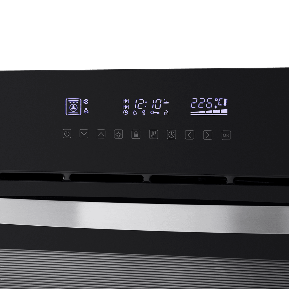 Сенсорный программатор с дисплеем COLD WHITE интуитивно понятен и удобен в использовании. Позволяет выбирать режимы нагрева, температуру, длительность готовки, устанавливать таймер, блокировать панель управления и выводить код ошибки при появлении проблем в работе духового шкафа. В данной модели поддерживается 11 функций работы: нижний и верхний нагрев, нижний нагрев, гриль, гриль с конвекцией, гриль с верхним нагревом, конвекция с нижним нагревом, полная конвекция с нижним нагревом, нижний и верхний нагрев с конвекцией, полная конвекция/равномерная выпечка, размораживание, освещение.
