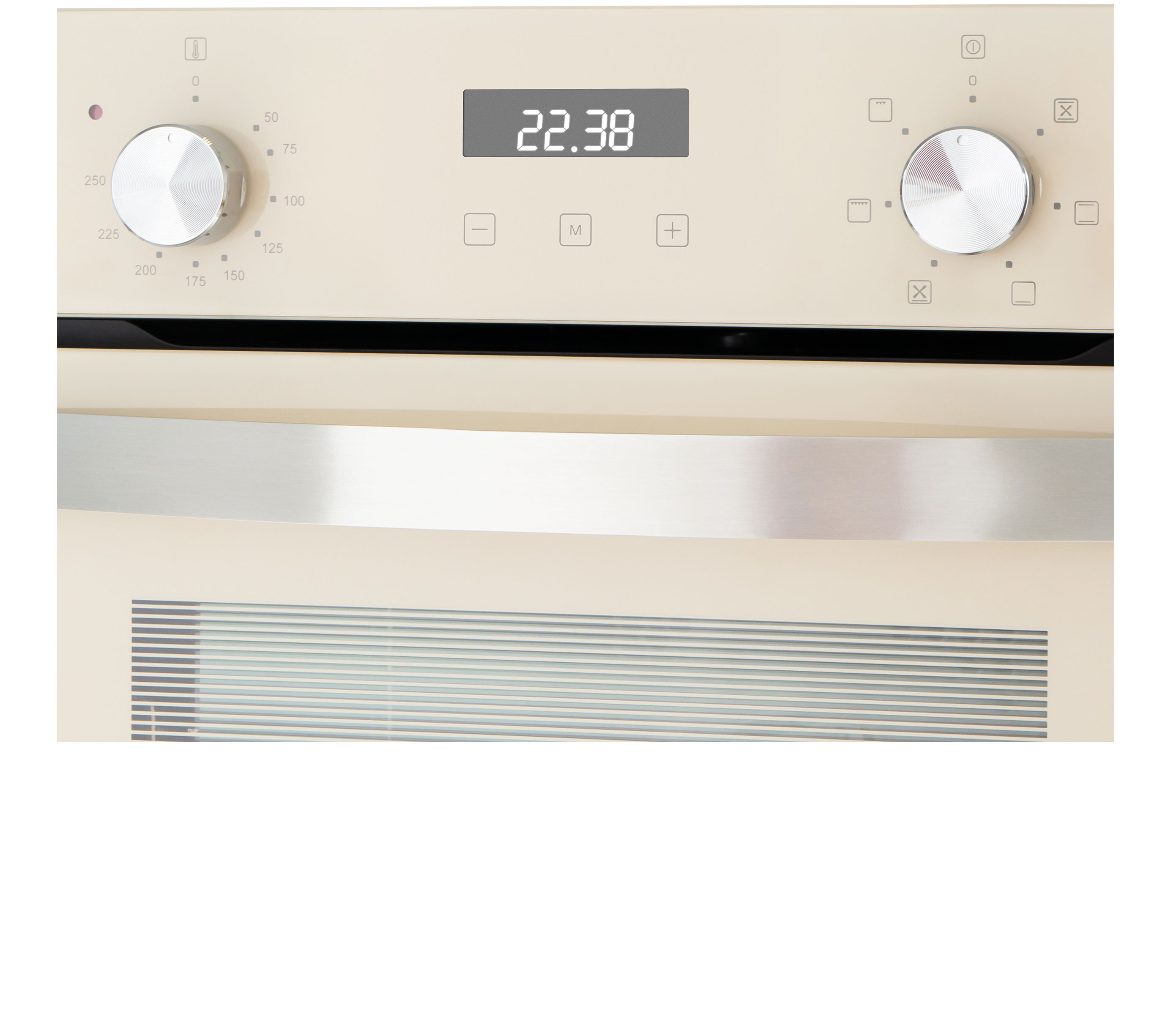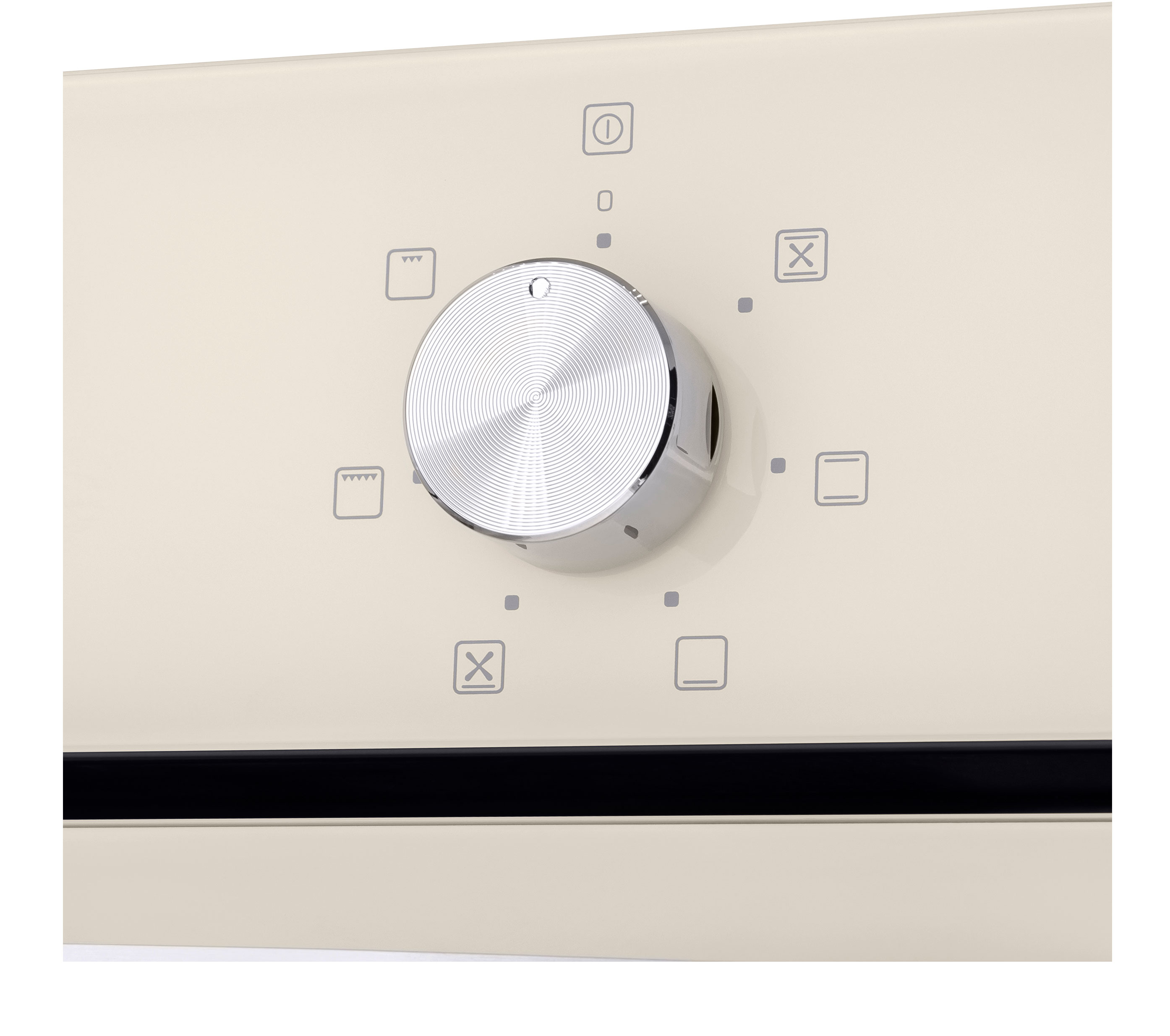 Комбинированное управление реализовано с помощью сенсорного дисплея и цельнометаллических поворотных ручек. Можно установить таймер, выбрать температуру (50°-250°C) и один из 7-ми режимов работы: внутреннее освещение, традиционный нагрев, большой гриль, конвекция с нижним нагревом, нижний нагрев, конвекционный нагрев, малый гриль.