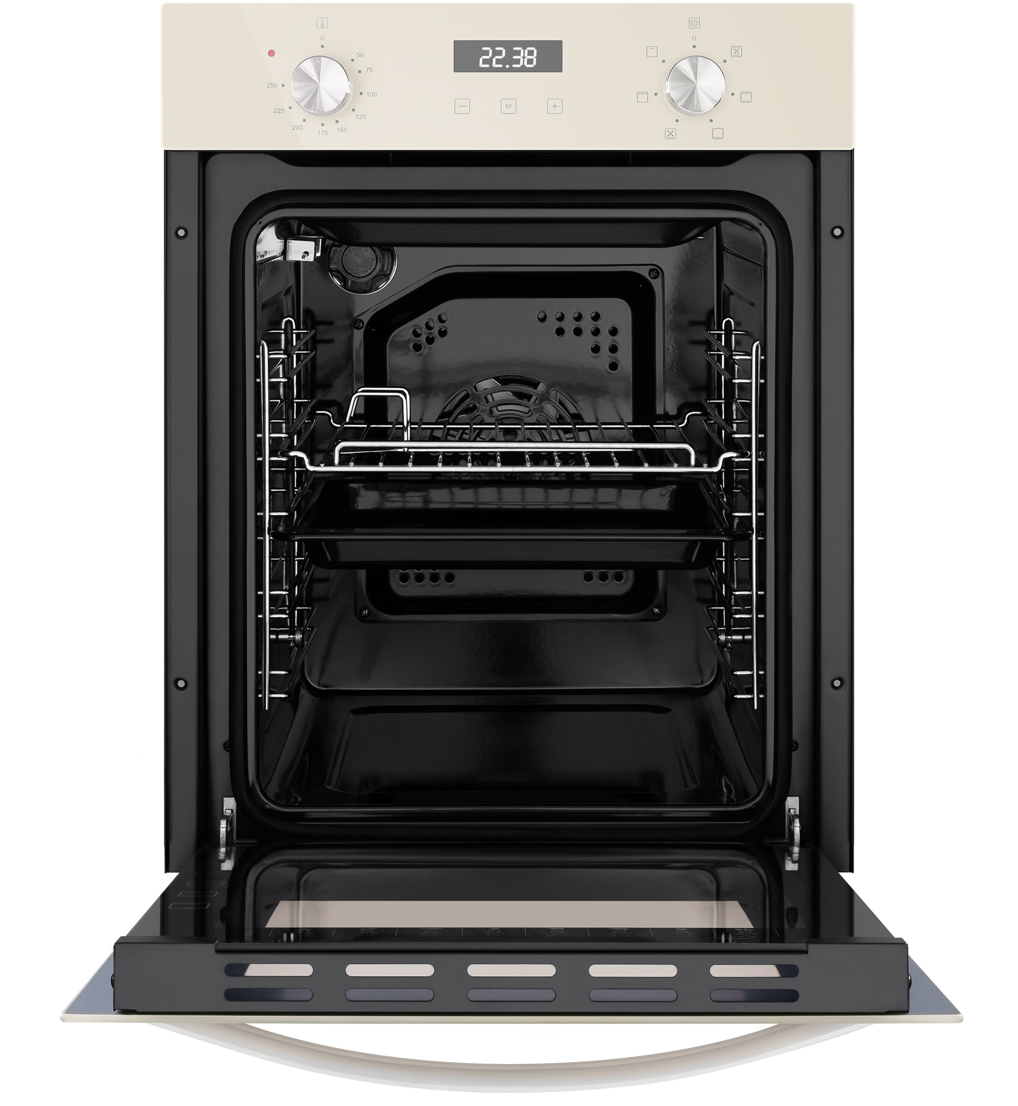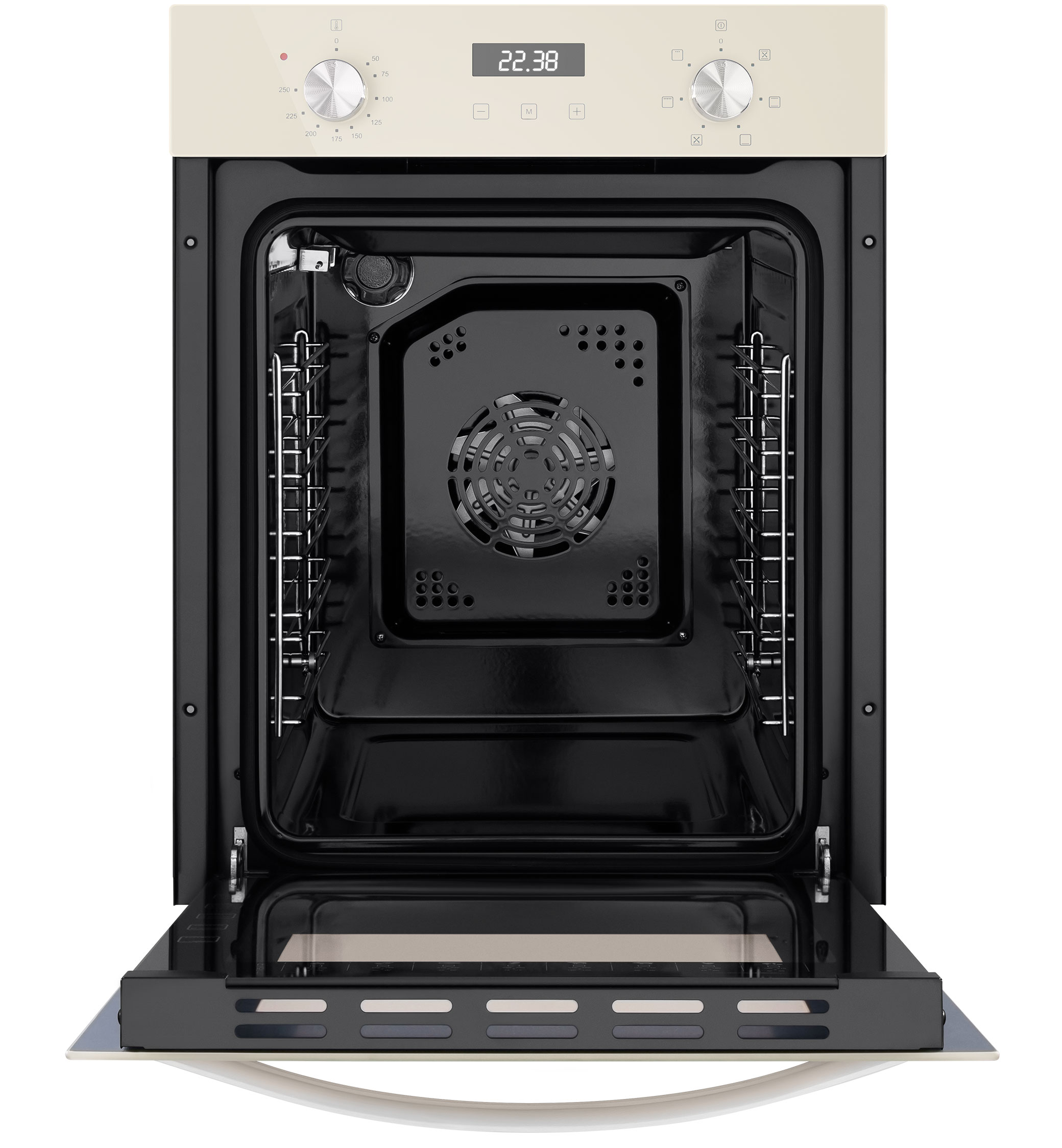 Компактный электрический встраиваемый духовой шкаф объемом 49 л и шириной всего 45 см позволяет готовить ваши любимые блюда, разместив решетку или противень на одном из 5 уровней боковых направляющих. Внутреннее покрытие камеры выполнено из специальной легкоочищающейся эмали черного цвета.