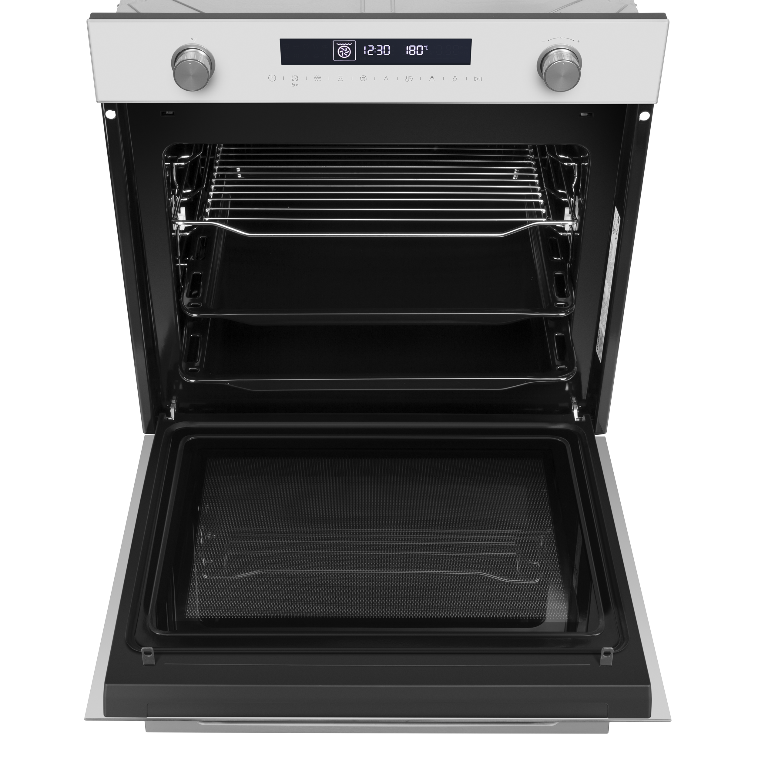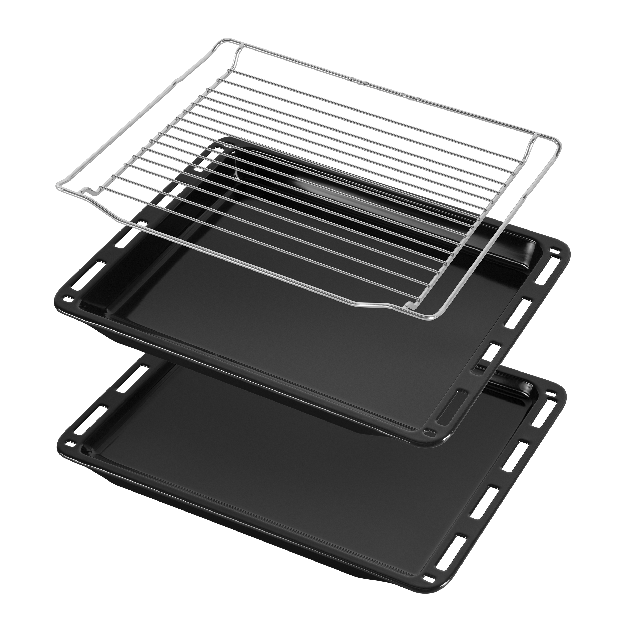 В комплекте: противень глубокий, противень стандартный, решетка, хромированные направляющие для противней