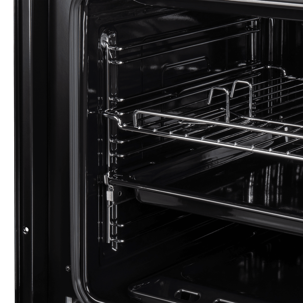 Объем 60 л при стандартной ширине 60 см позволяет готовить одновременно несколько блюд, разместив решетку или противень на одном из 5-ти уровней боковых направляющих. Один уровень оснащен удобными телескопическими направляющими. Внутреннее покрытие камеры выполнено из специальной легкоочищающейся эмали черного цвета.