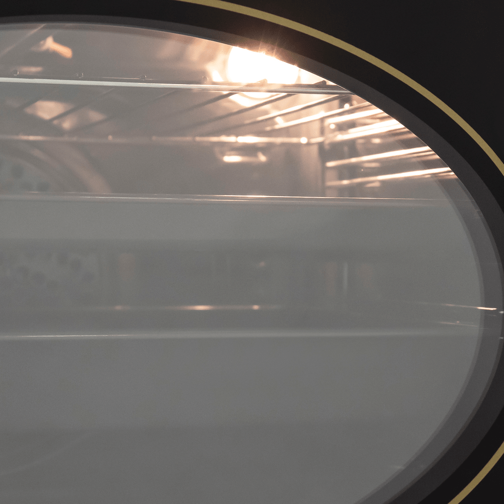 Тангенциальное охлаждение, реализованное в данной модели, минимизирует передачу тепла от духовки предметам, находящимся рядом, например мебели. Дверца состоит из 3-х стекол немецкого производителя SCHOTT. Благодаря этому создается холодный фронт, что делает процесс приготовления безопасным, исключая возможность ожога при касании.