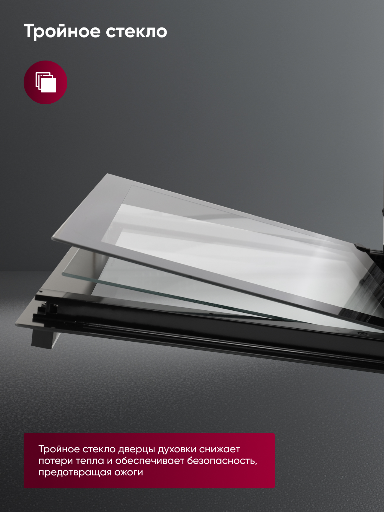 Дверца: тройное стекло снижает риск ожогов, минимизирует потери тепла и улучшает шумоизоляцию.